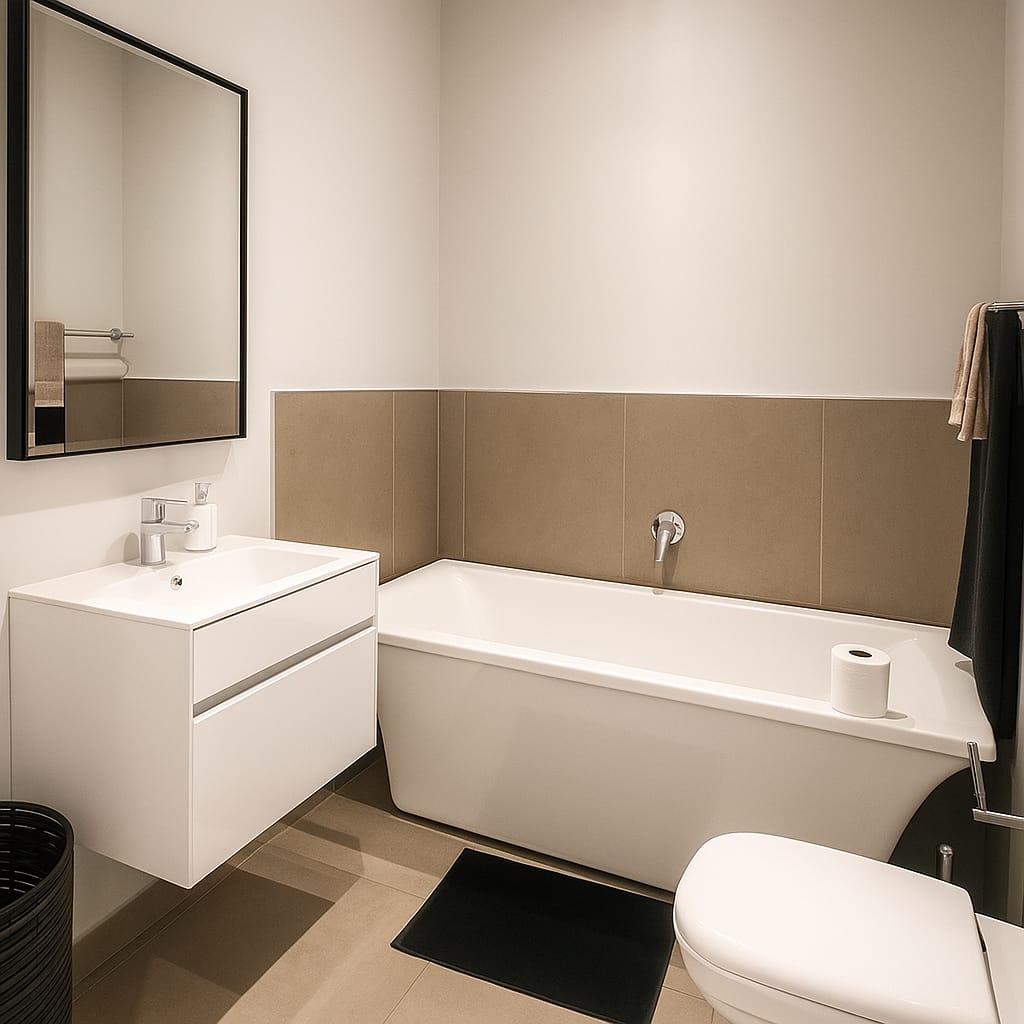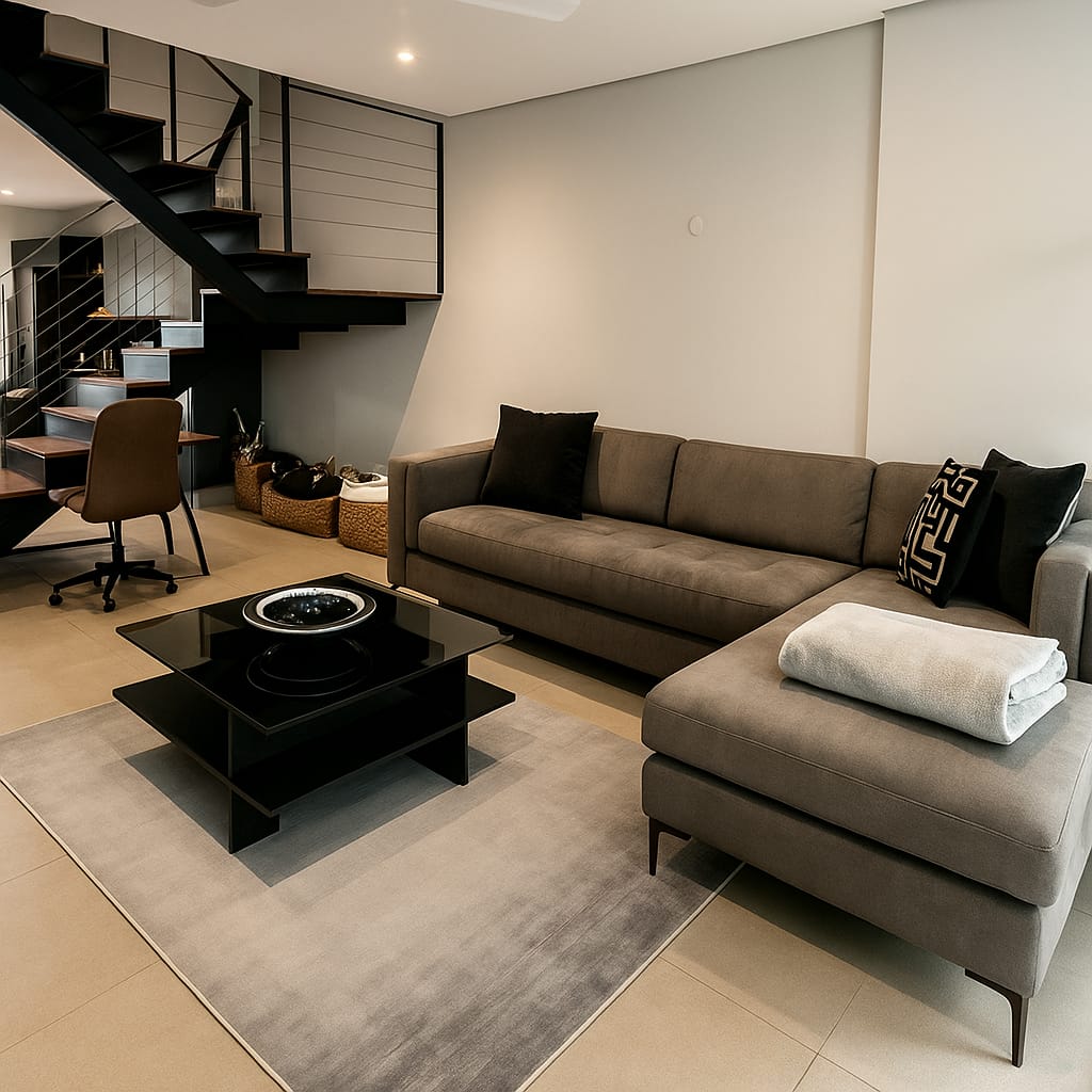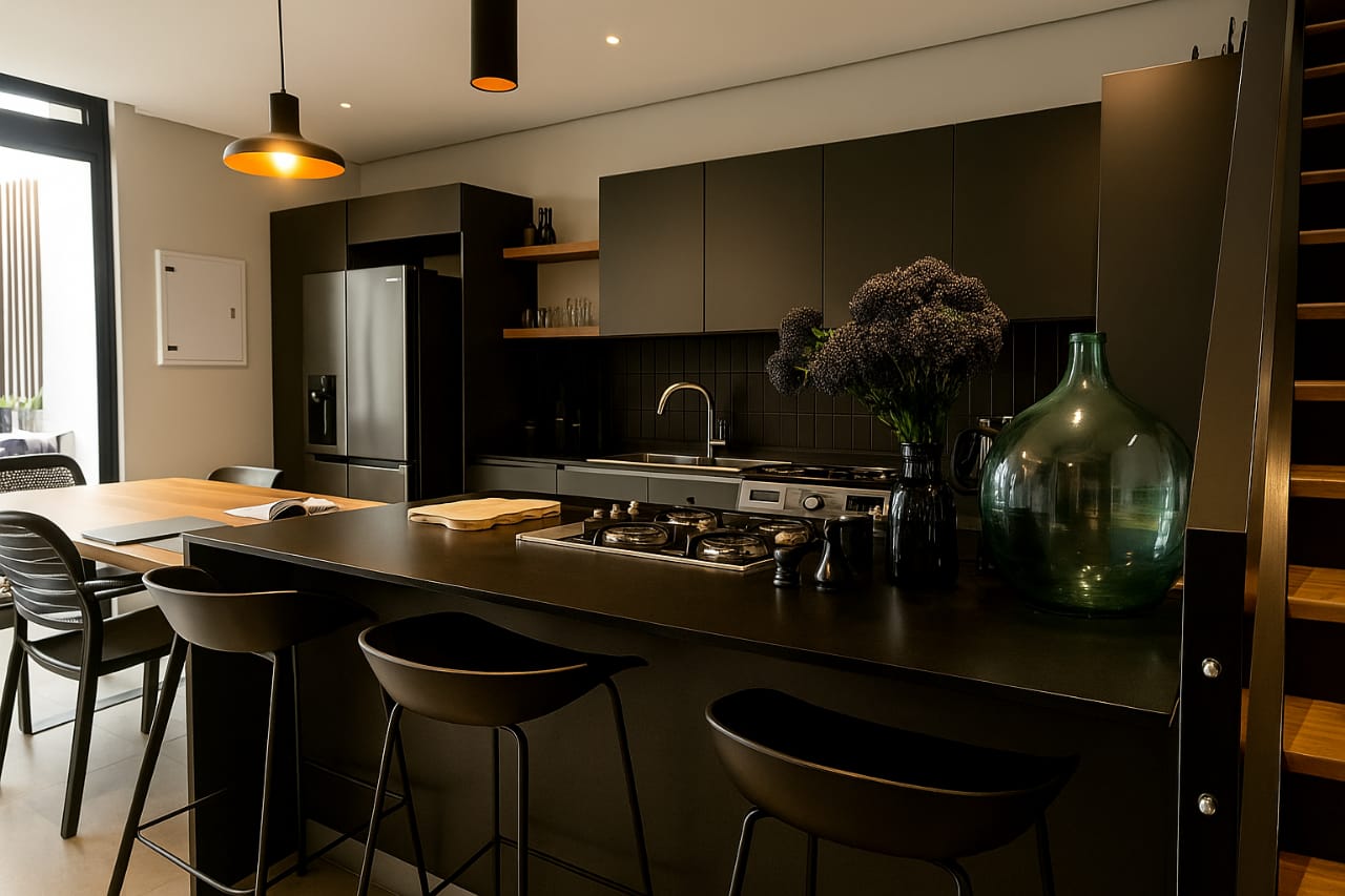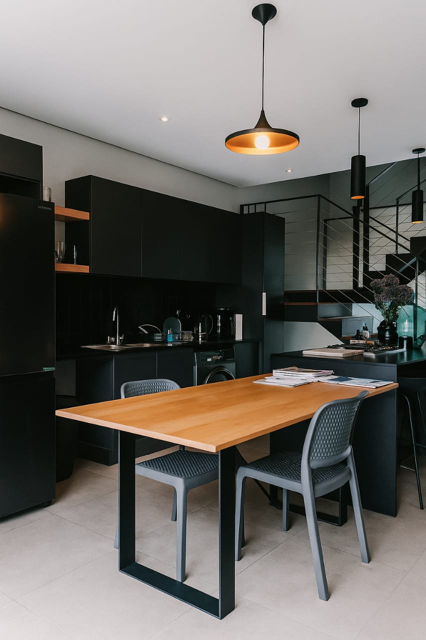 This stylish home welcomes you with an elegant black modern kitchen, seamlessly flowing into the open-plan living area that opens onto a spacious balcony overlooking lush greenery, the perfect place to relax and enjoy the peaceful natural surroundings. Upstairs, you’ll find two beautifully finished bedrooms and sleek, modern bathrooms designed for both comfort and sophistication.