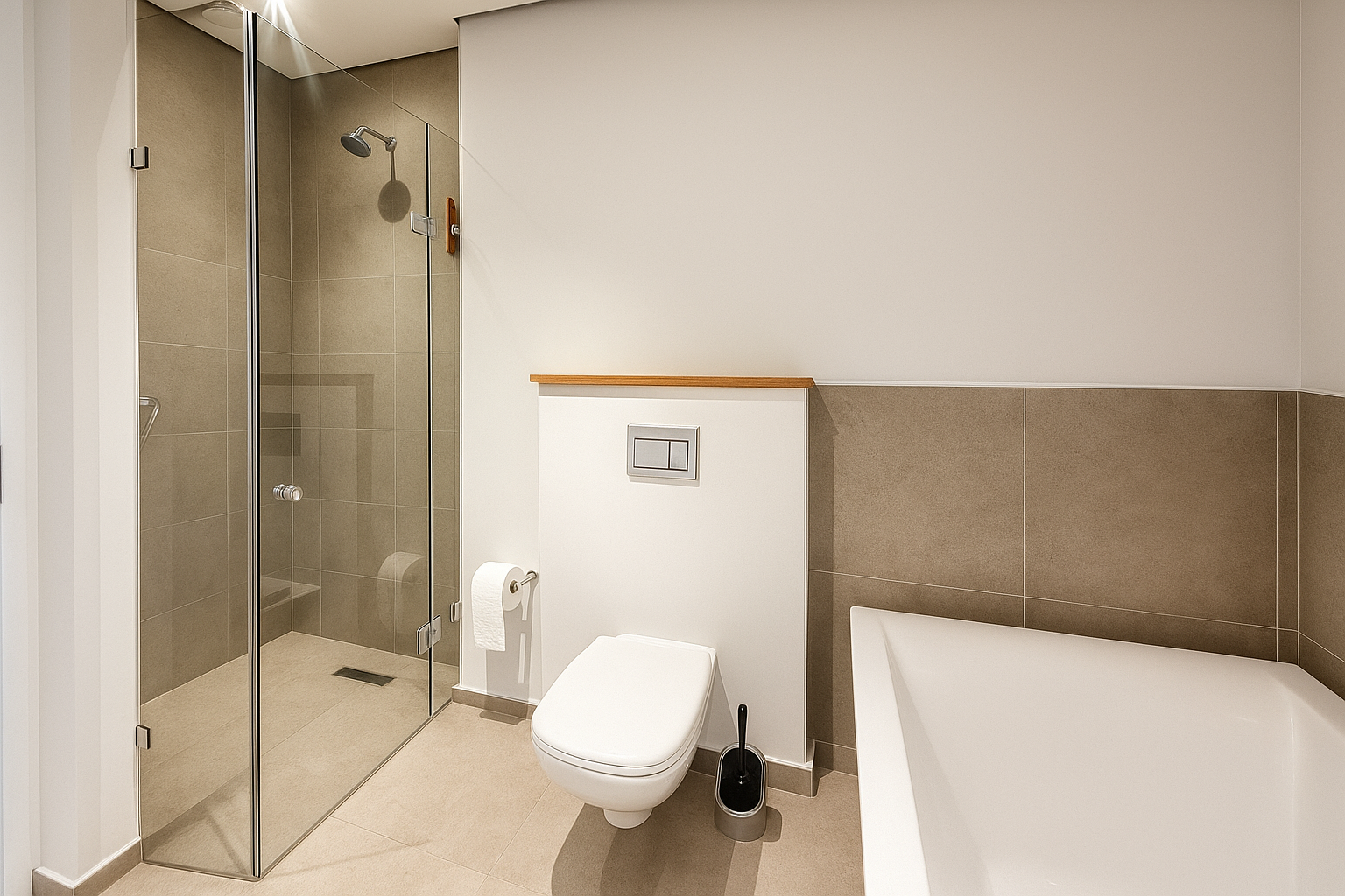 The home features a contemporary kitchen with sleek finishes, integrated appliances, and plenty of storage. The spacious living and dining area welcomes natural light through large glass doors, creating a warm and inviting atmosphere. Both bedrooms are comfortably sized, with the main bedroom featuring an en suite bathroom, while the second bathroom includes both a bath and shower for added convenience.
