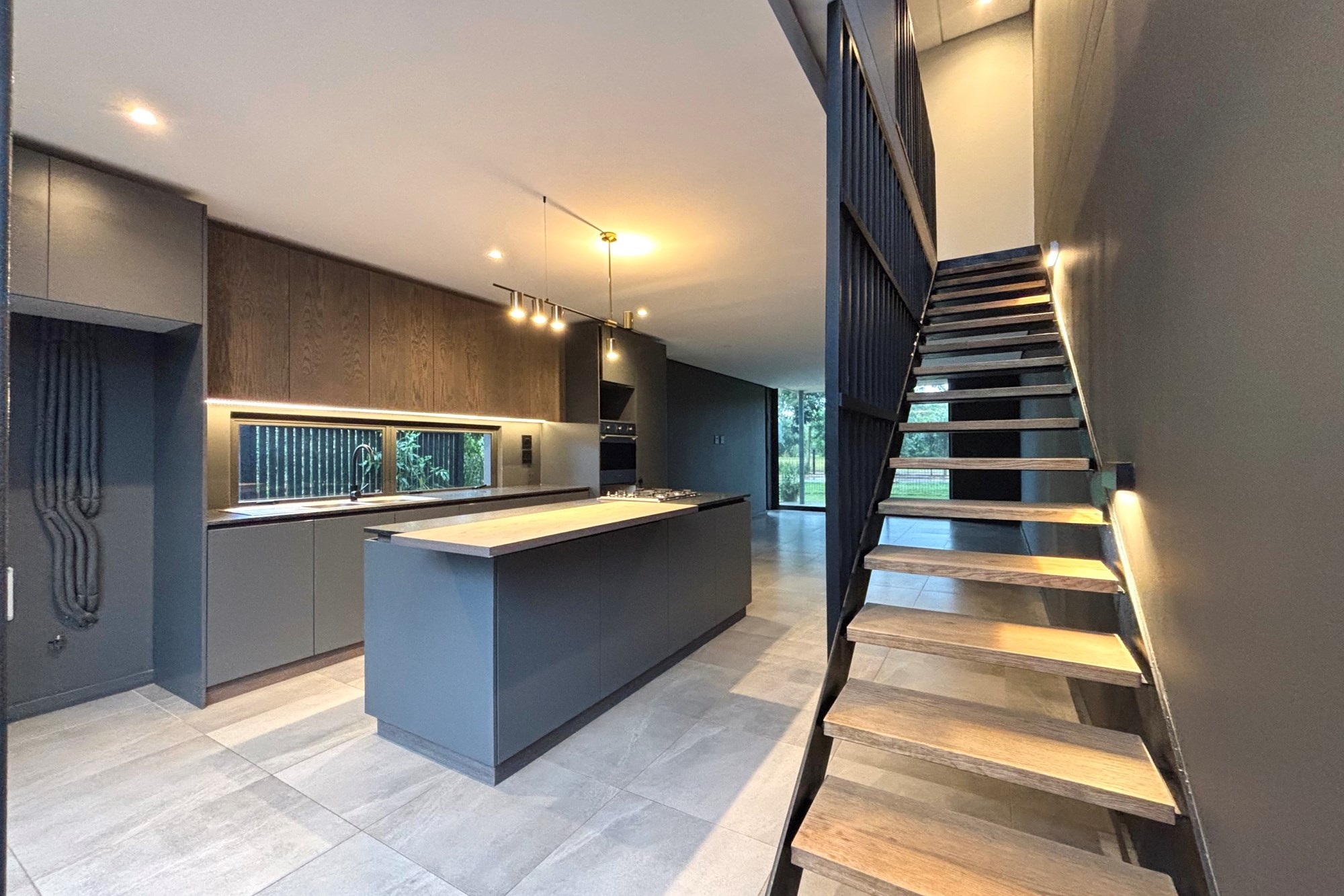 With open-plan living, a chef-style kitchen, aircons, and a covered patio overlooking the forest, it’s ideal for families or tenants seeking secure, nature-filled living.