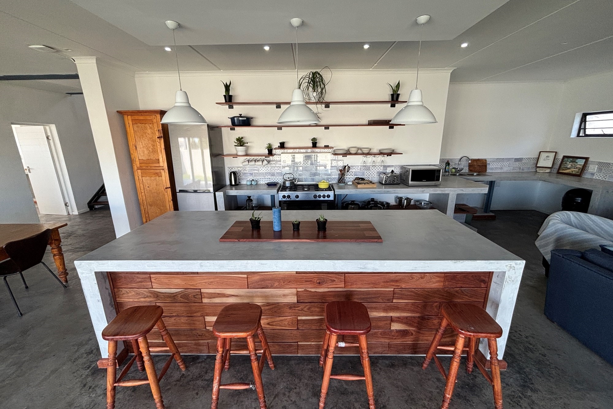 A Curated Coastal Home for Sale - here, a unique home embodies masterful craftsmanship and artisanal details, handcrafted by locals and the dedication of the owner himself, with spaces designed to inspire. Every inch of this residence has been thoughtfully constructed, featuring concrete-framed cupboards, shelving, and integrated indoor heating and braai. The four en-suite bedrooms, spread across two levels, provide comfort and privacy, with spectacular rooftop views awaiting your final touches. Imagine a rooftop garden, sun loungers, and shaded areas to take in the sweeping 360-degree vistas of the West Coast—a height that lets you soar with the gulls.