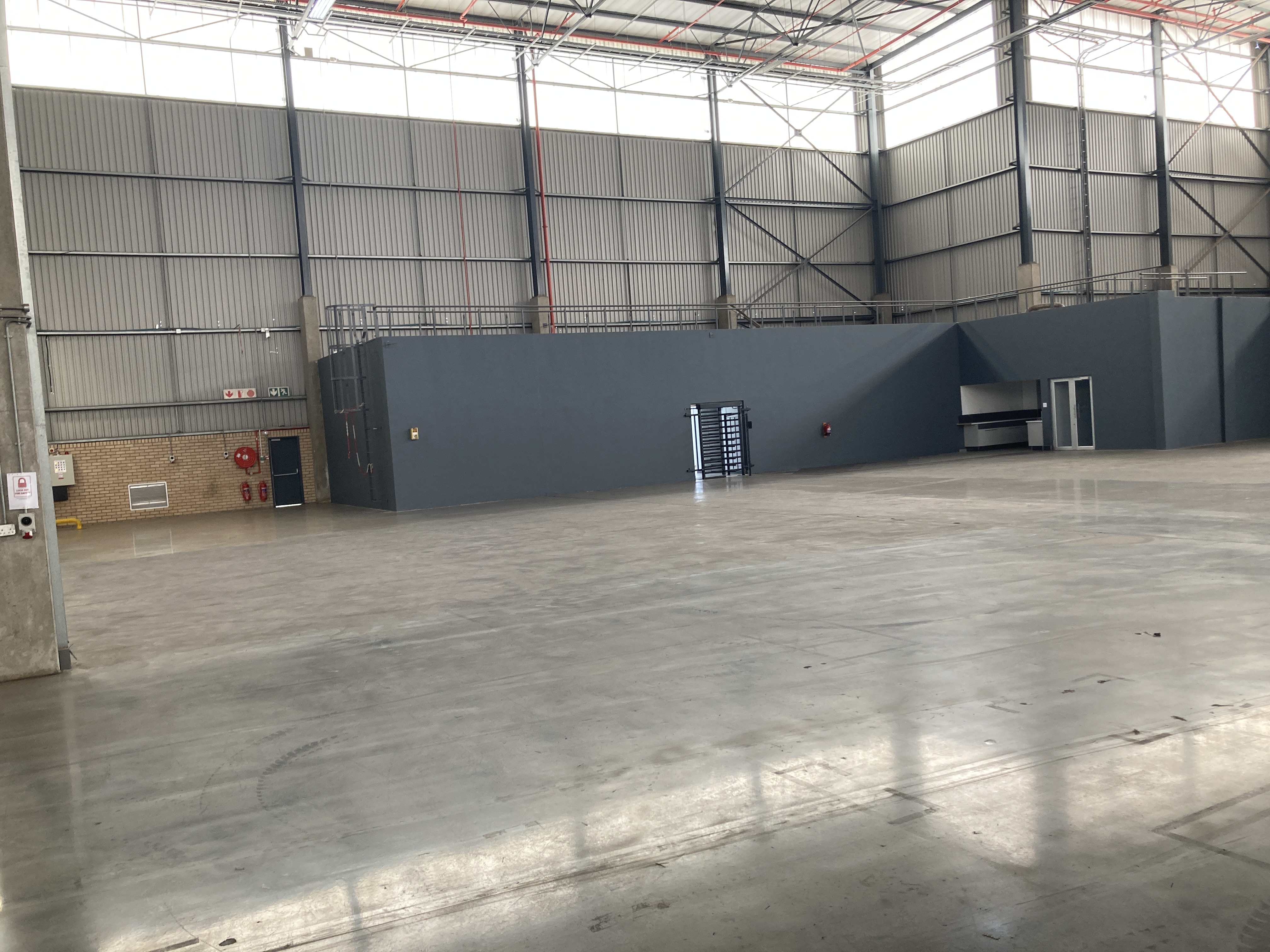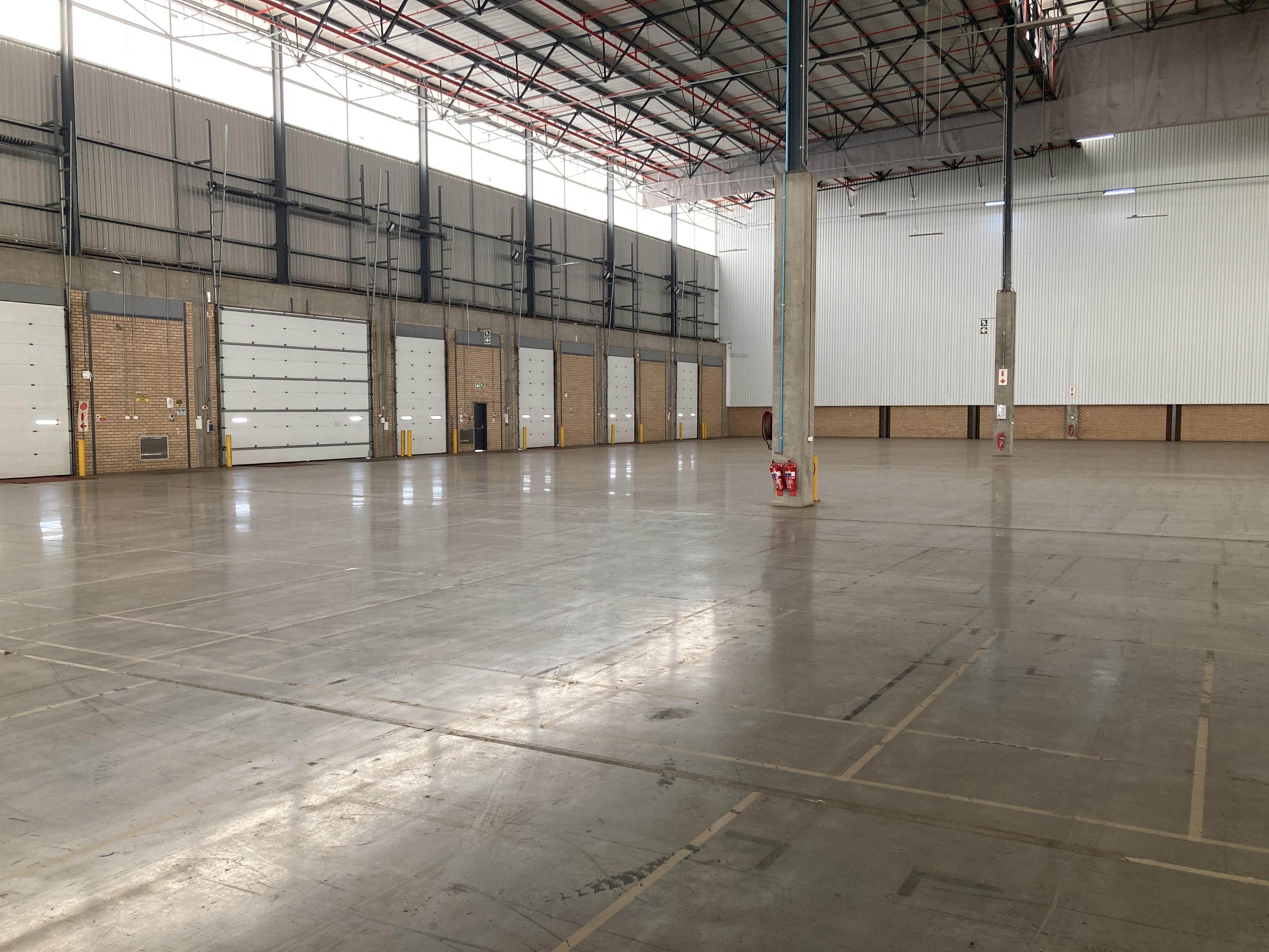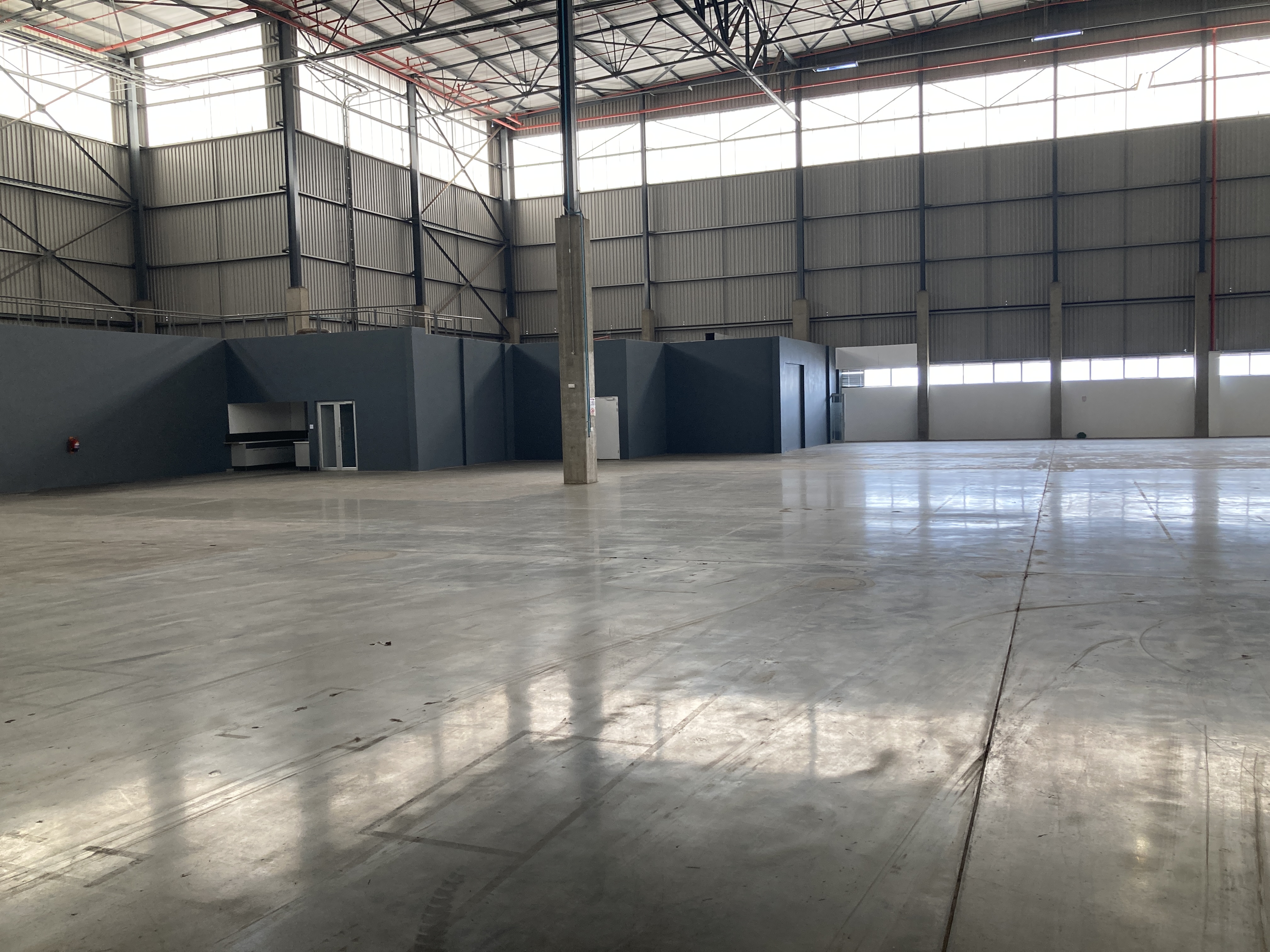 Modern logistics facility available for rental. Well positioned in the heart of Elandsfontein industrial node. Offers ample light industrial warehouse space with a small office component. 24/7 security. Located directly within the N12, R21 and R27 highway network. Close to OR Tambo International Airport and several industrial and business areas. Good roof height. Reticulation sprinkler system for fire, back-up generator, dedicated water tanks, manned gatehouse, shade-net parking bays. Large yard space. Great truck reticulation. On and off-grade roller-shutter doors.