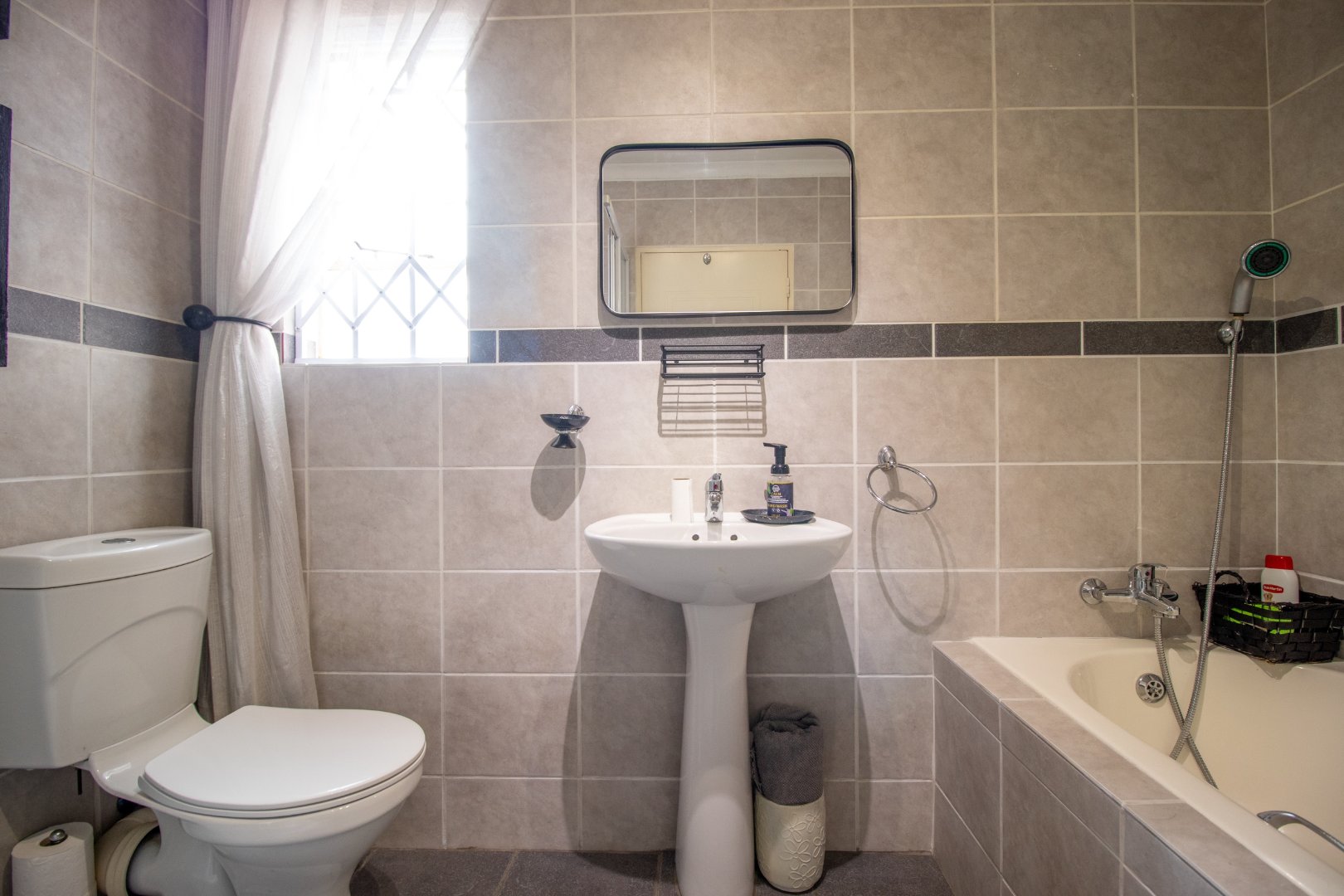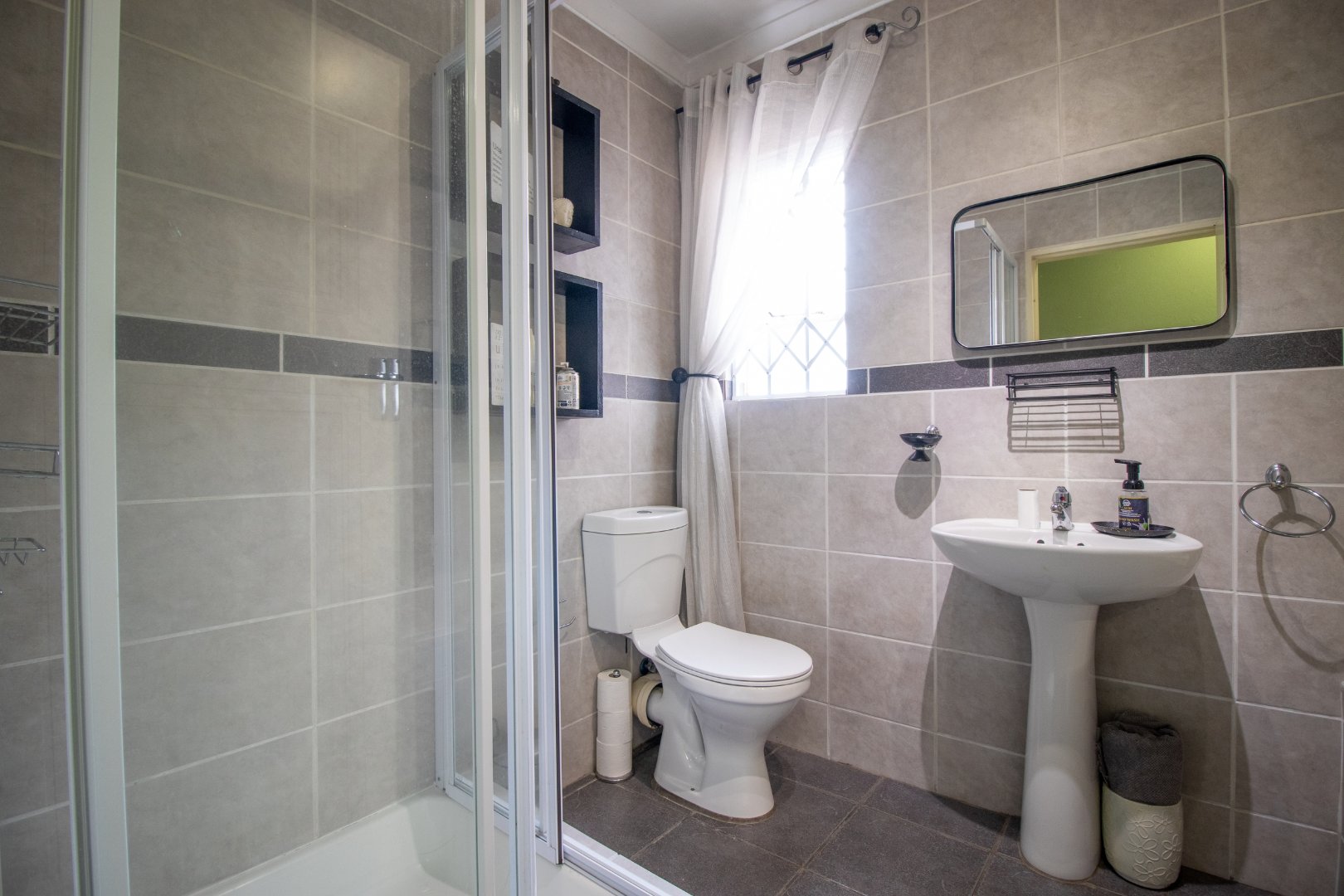 A sleek and modern second bathroom.