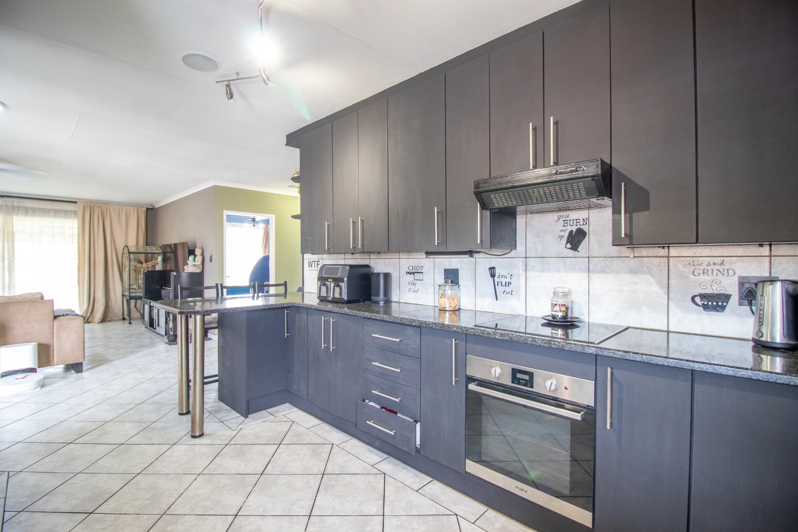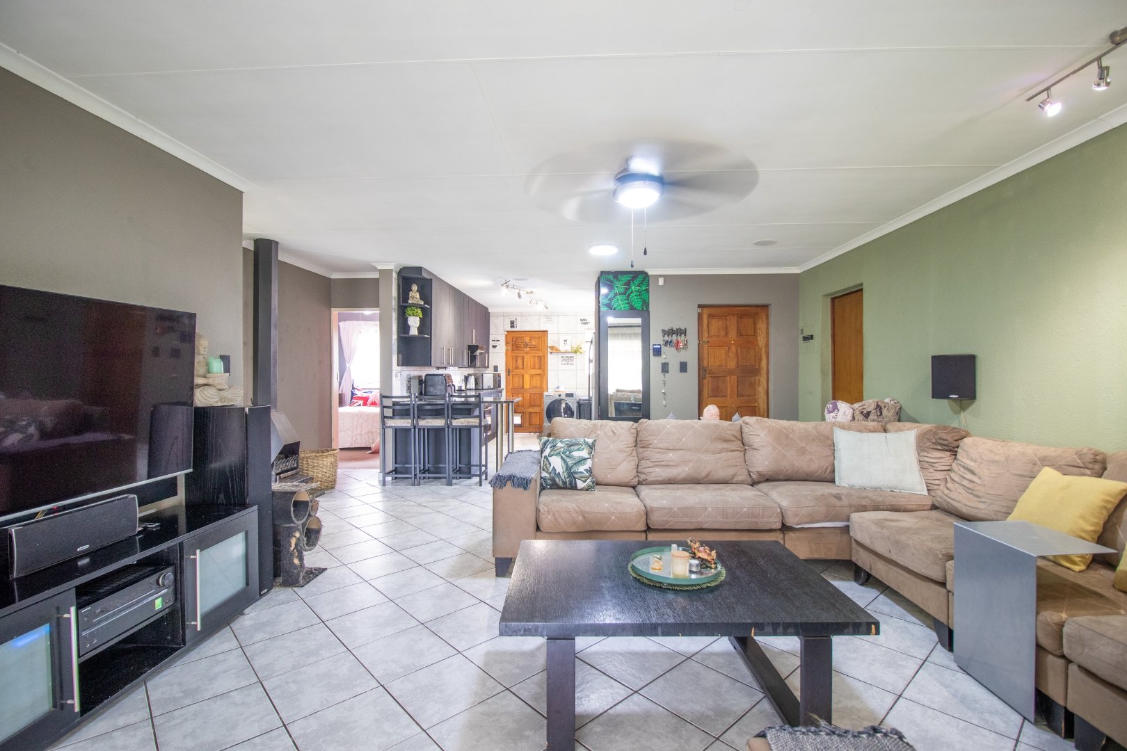 Open-plan layout seamlessly connects the lounge, kitchen, and dining areas, creating a functional and inviting space.
