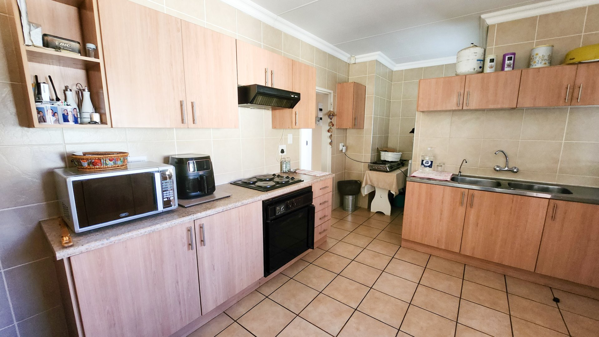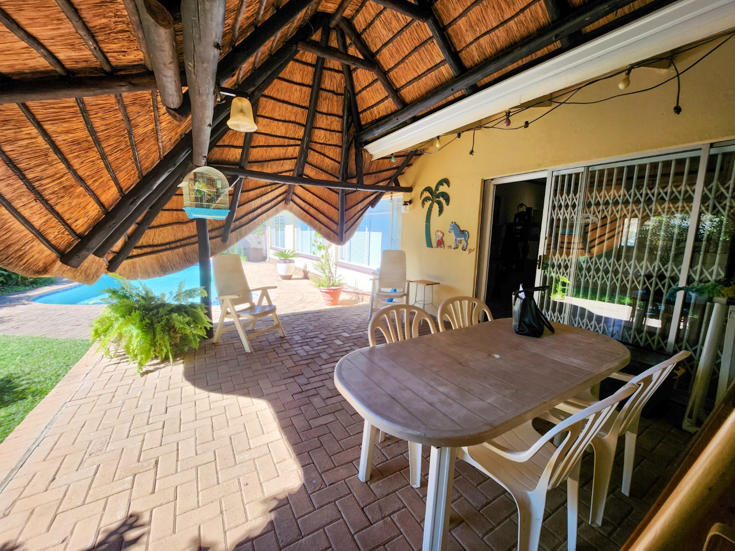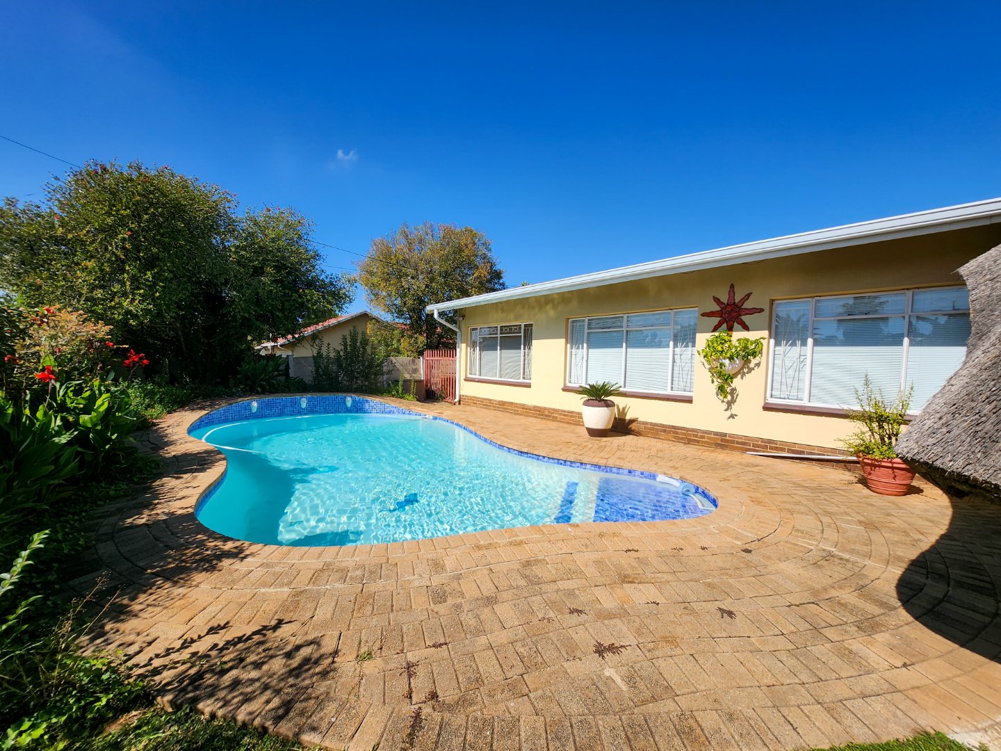 Step outside and you’ll find a sparkling swimming pool that’s great for cooling off on warm days or just enjoying some time in the sun. Next to it is a lapa, ideal for weekend braais, outdoor meals, or simply unwinding at the end of the day. The yard is easy to maintain and gives just the right amount of space without too much work.