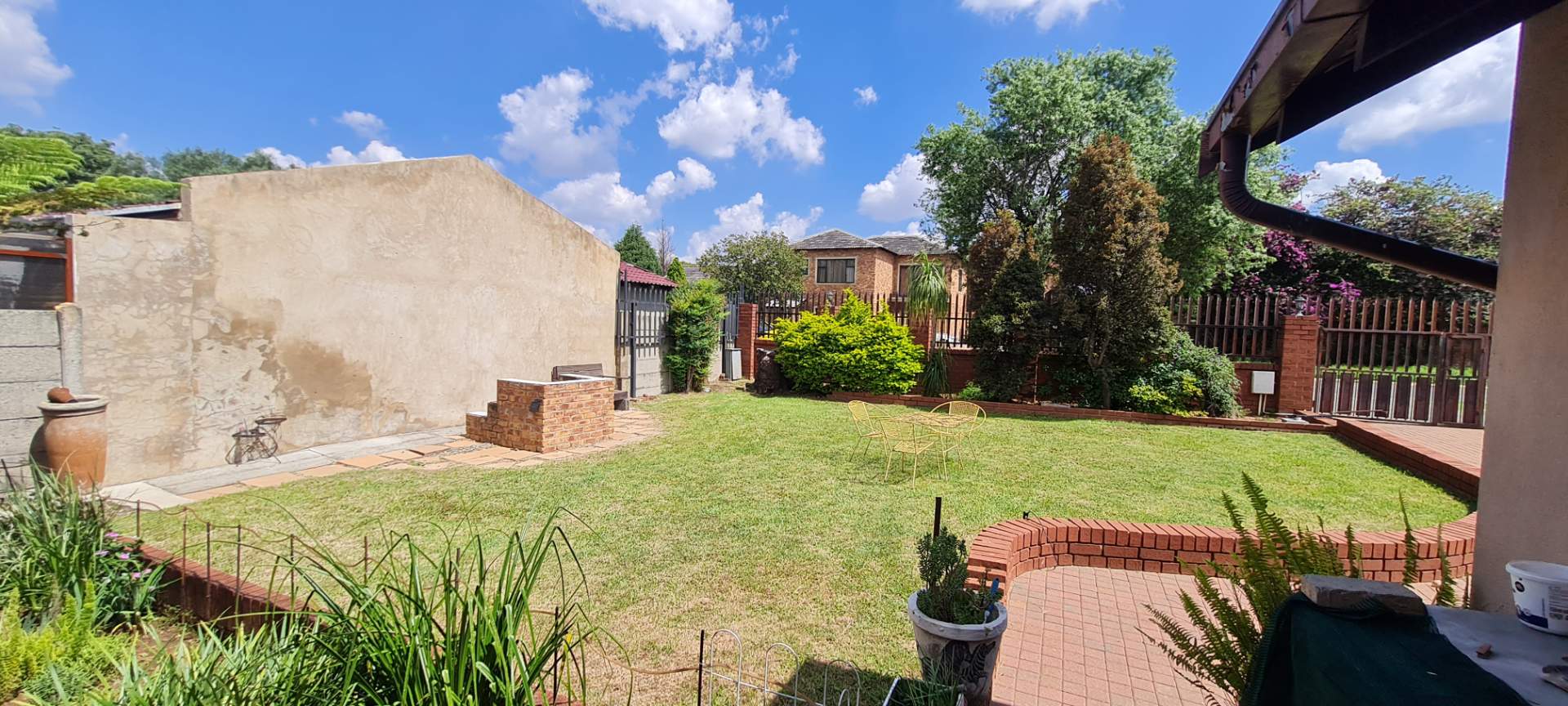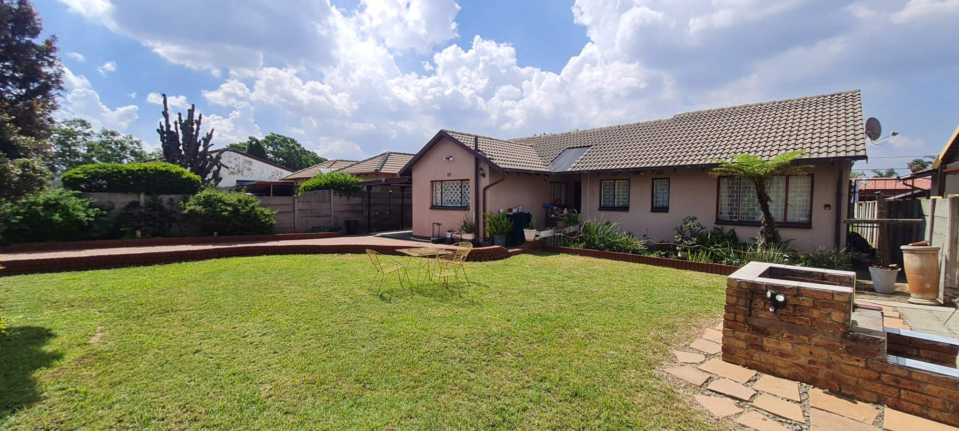 Step outside to enjoy the expansive front garden, a true highlight of this property. It features an open braai area, perfect for entertaining friends and family or enjoying a quiet evening outdoors. The large garden provides ample space for children to play or for gardening enthusiasts to cultivate their passion.