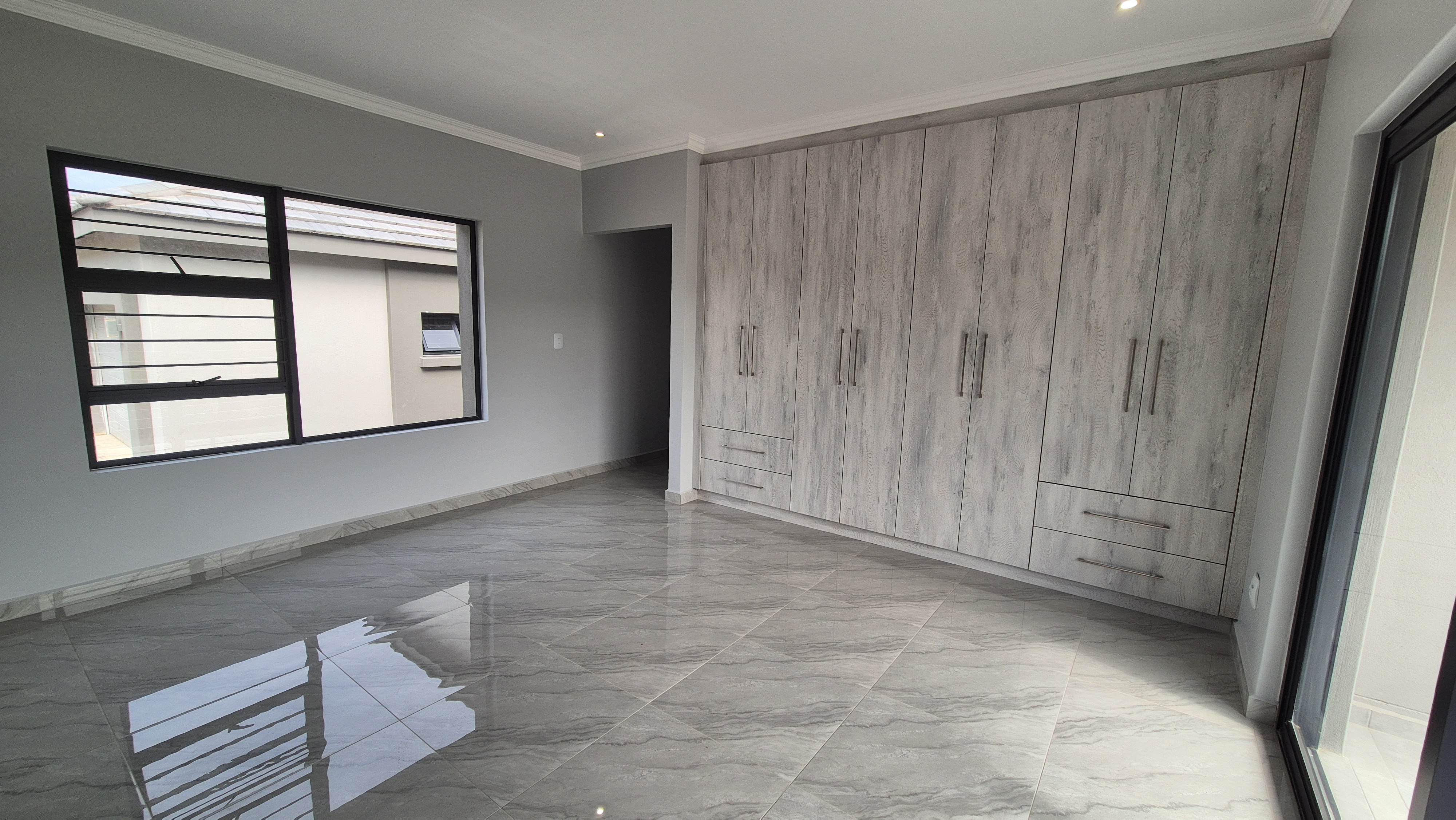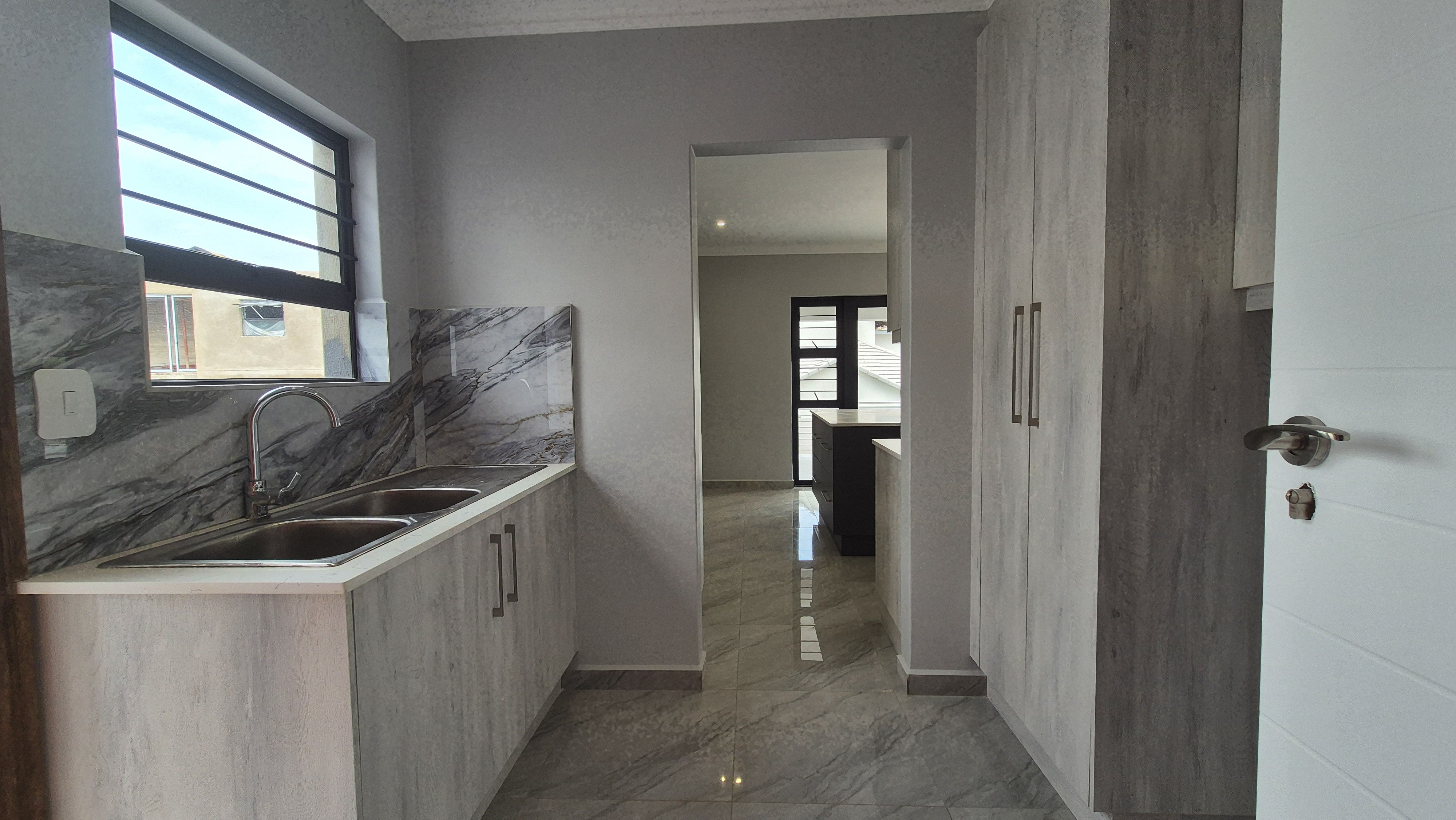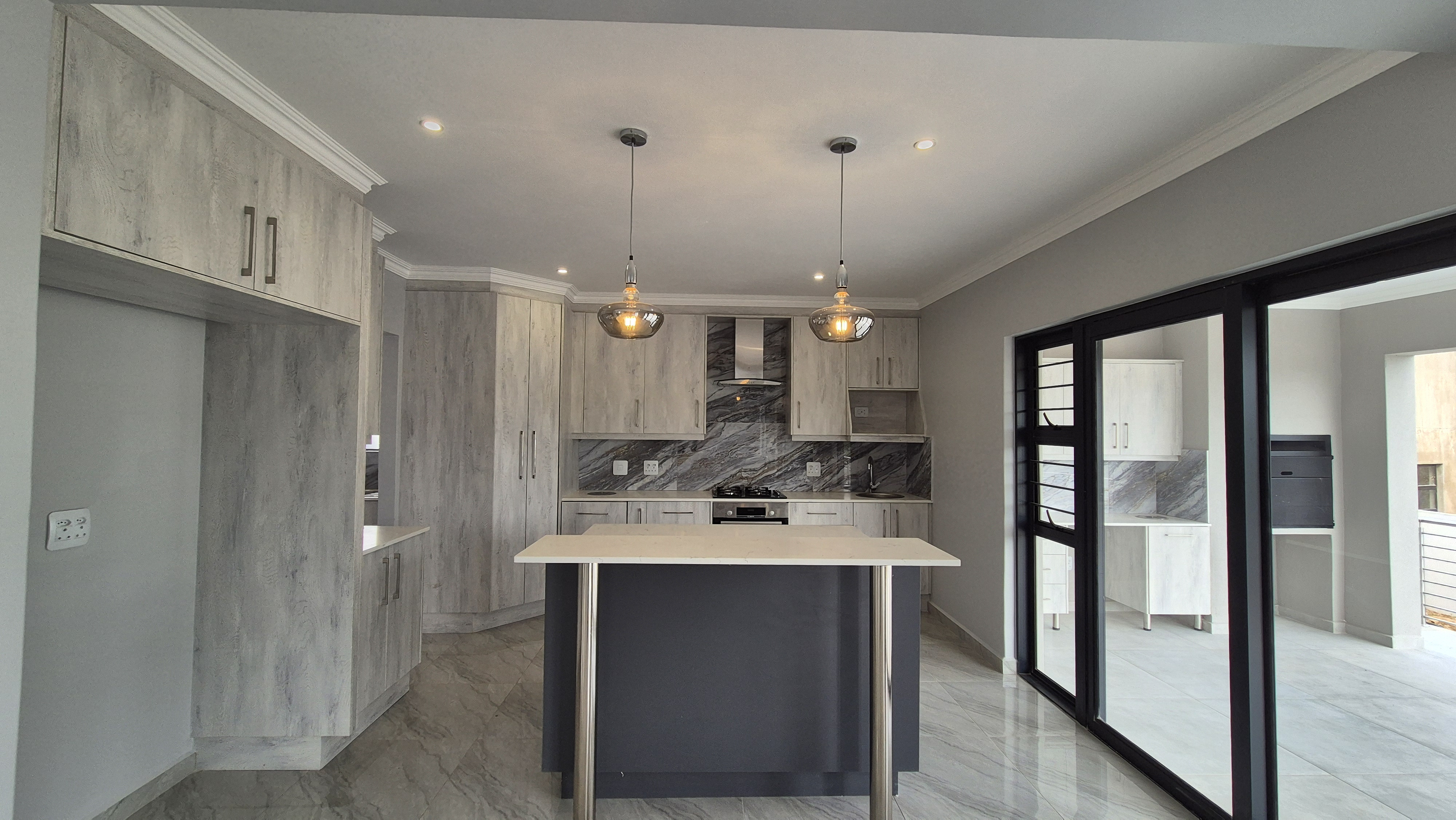 Newly Built 4-Bedroom Home with All-En Suite Bedrooms – Elawini Estate, a home designed for family living” Discover modern estate living in this brand-new 4-bedroom home situated in Elawini Lifestyle Estate. Thoughtfully designed for comfort, convenience, and stylish living, this property offers premium finishes and an effortless flow throughout. The home features an elegant open-plan layout that seamlessly connects the kitchen, lounge, and dining area—perfect for family living and entertaining. The modern kitchen includes a separate scullery, providing ample storage and keeping the main area beautifully uncluttered. Each of the four spacious bedrooms comes with its own en-suite bathroom, offering privacy and luxury for every family member or guest. The master suite stands out with its generous space and quality finishes. A sliding door opens from the living area onto a covered patio with a built-in braai, creating an ideal indoor–outdoor entertainment space. The home also boasts a spacious garden, offering plenty of room for children to play or for future landscaping. Additional features include a double garage with direct access into the home and the safety and convenience of living within a secure, well-maintained estate. A perfect blend of modern design, comfort, and lifestyle—this home is ready to welcome its new owners.