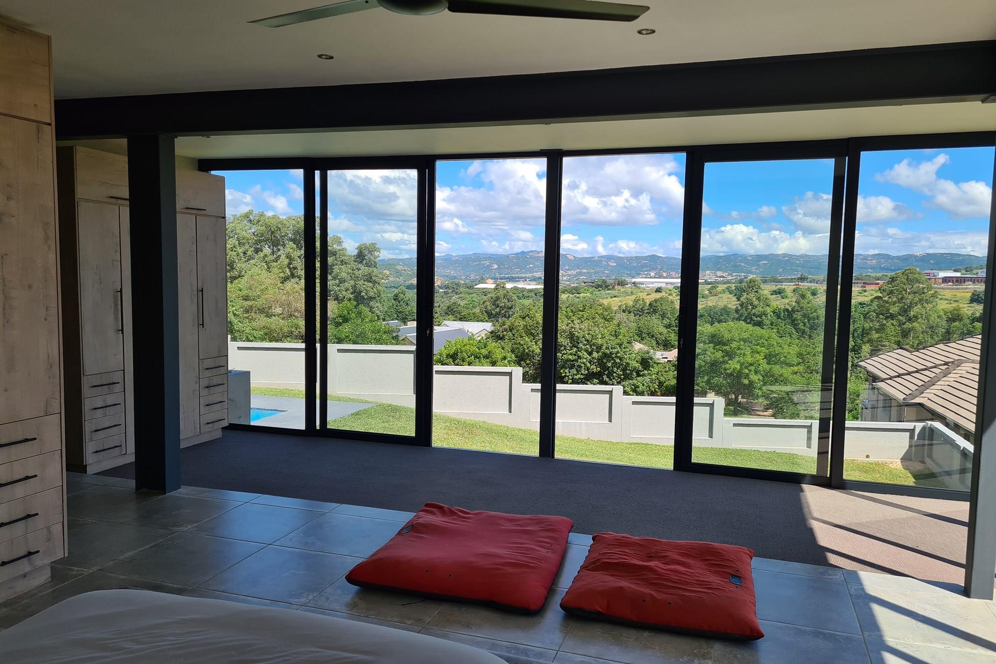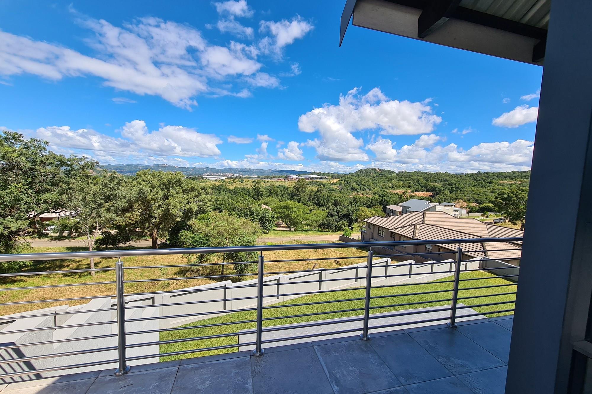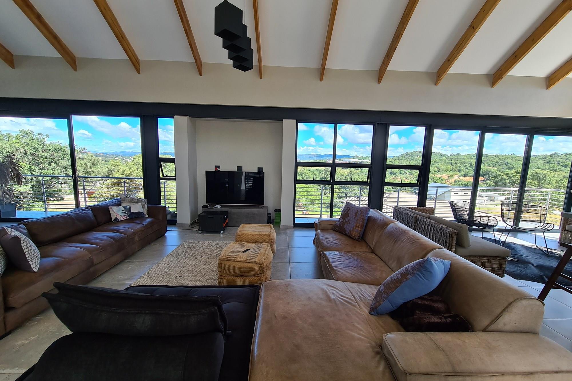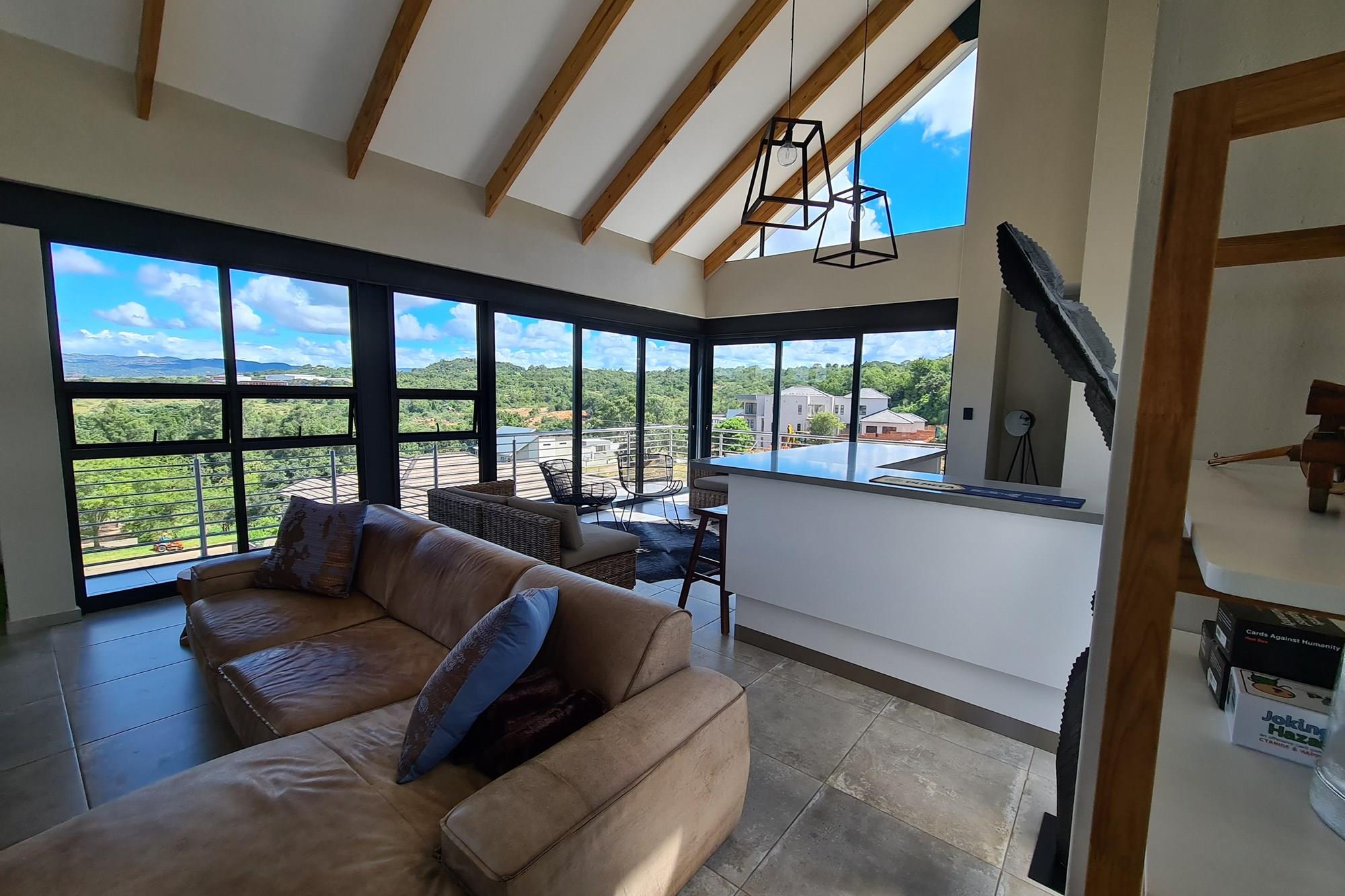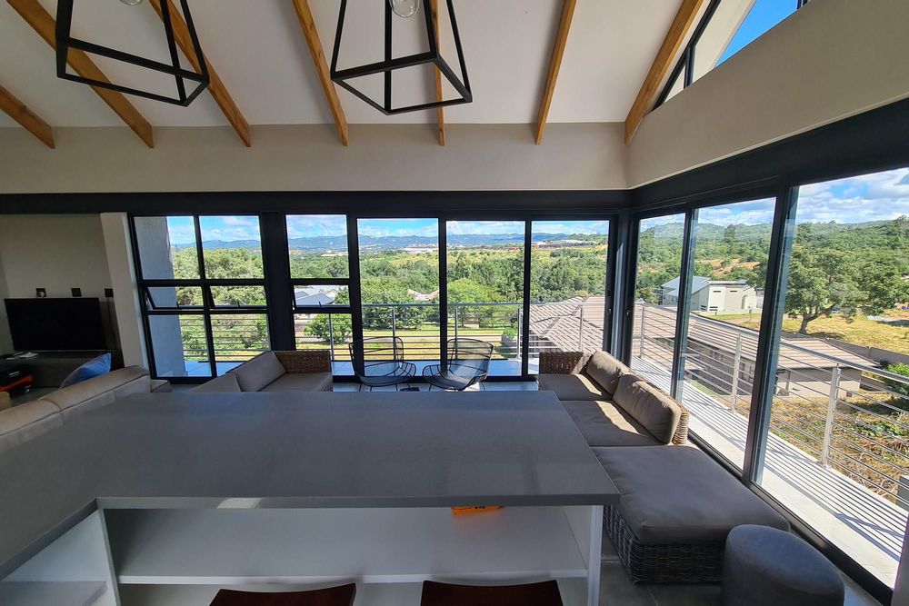 The living space seamlessly flows out to balconies, providing panoramic views of Nelspruit.