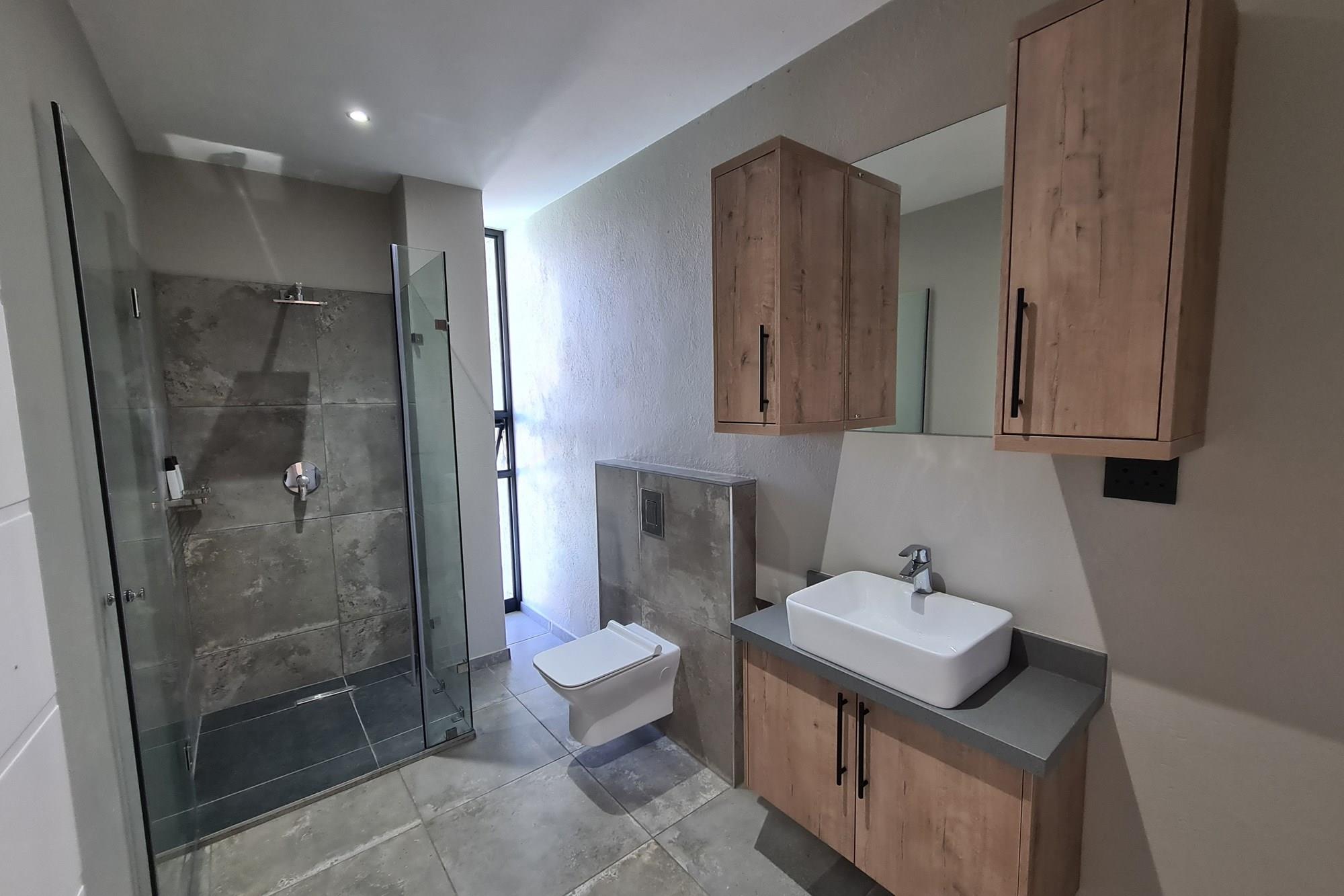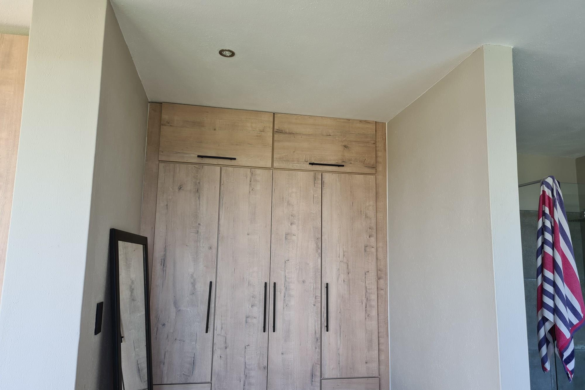 The ground floor features a luxurious main bedroom with built-in cupboards and a full bathroom.
