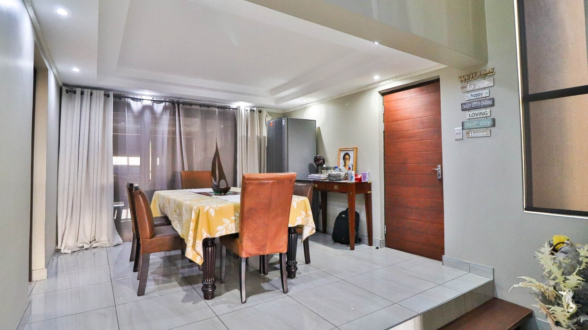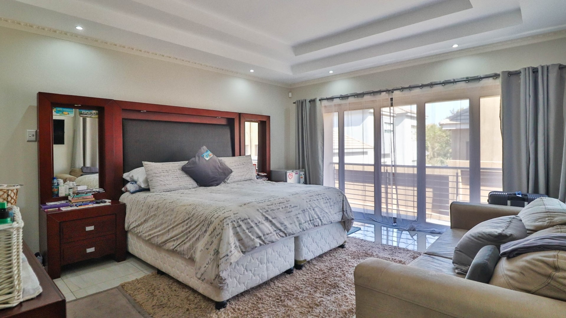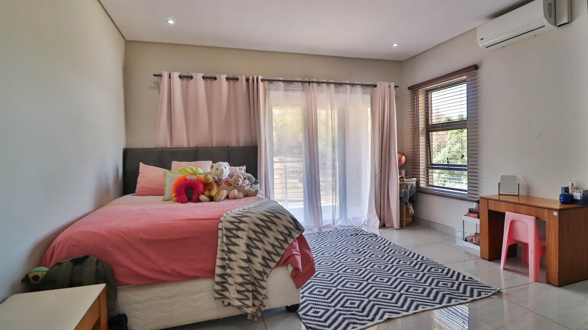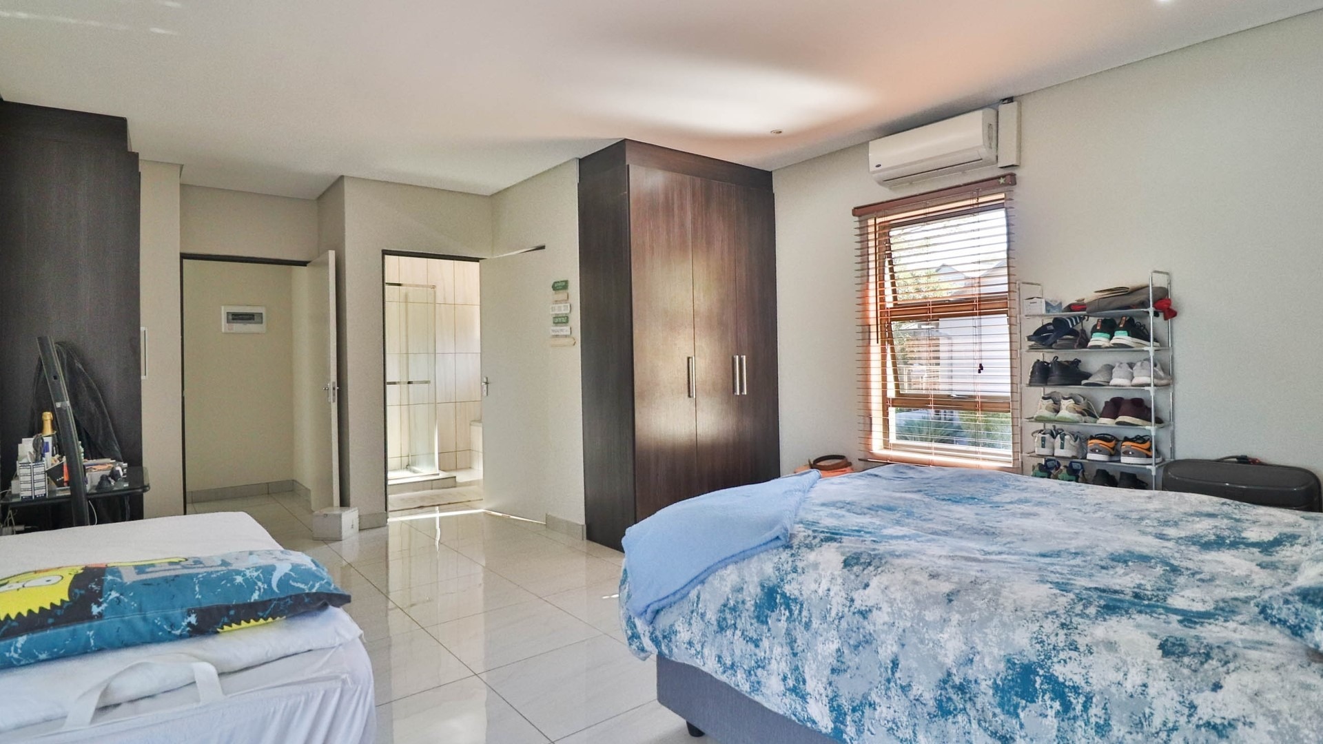 This magnificent residence in a gated Security Estate in Mbombela, boasts an array of features that cater for comfort and luxury. There are five bedrooms, each one equipped with built in cupboards and en-suite bathrooms, ensuring privacy and convenience. It has a functional kitchen which is a chef's delight, with ample working space, abundant storage with lots of cupboards and both an electric and gas stove for versatile cooking options. The living spaces includes two lounges and two dining rooms, perfect for entertaining guests or enjoying family time. Tiled floors throughout the house for easy maintenance and three air conditioners keeps the environment comfortable year -round,
