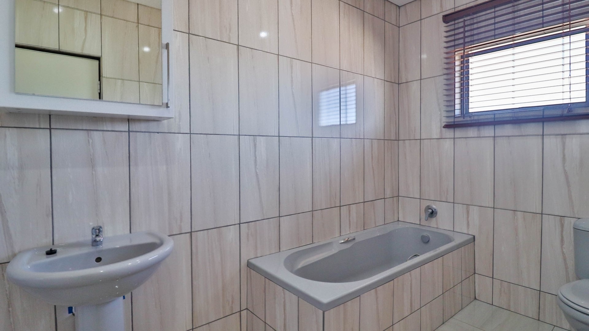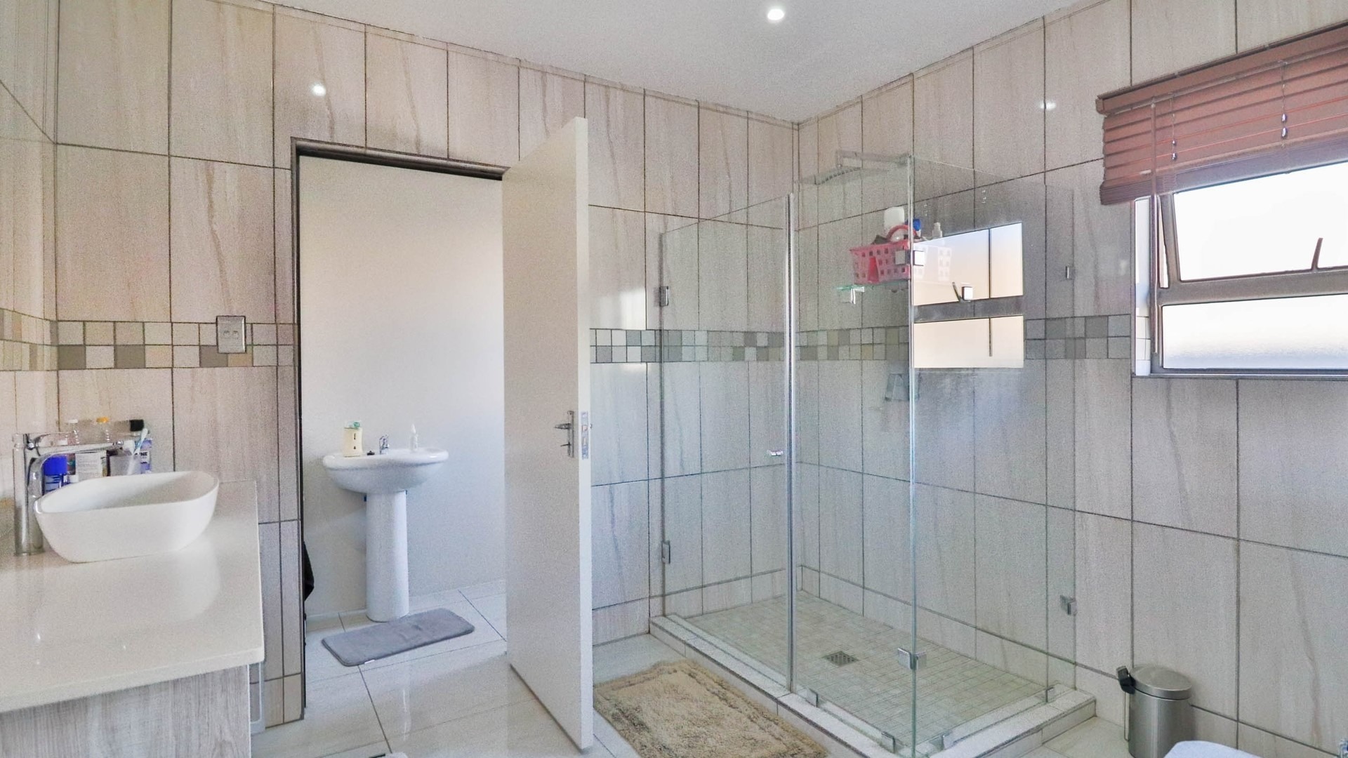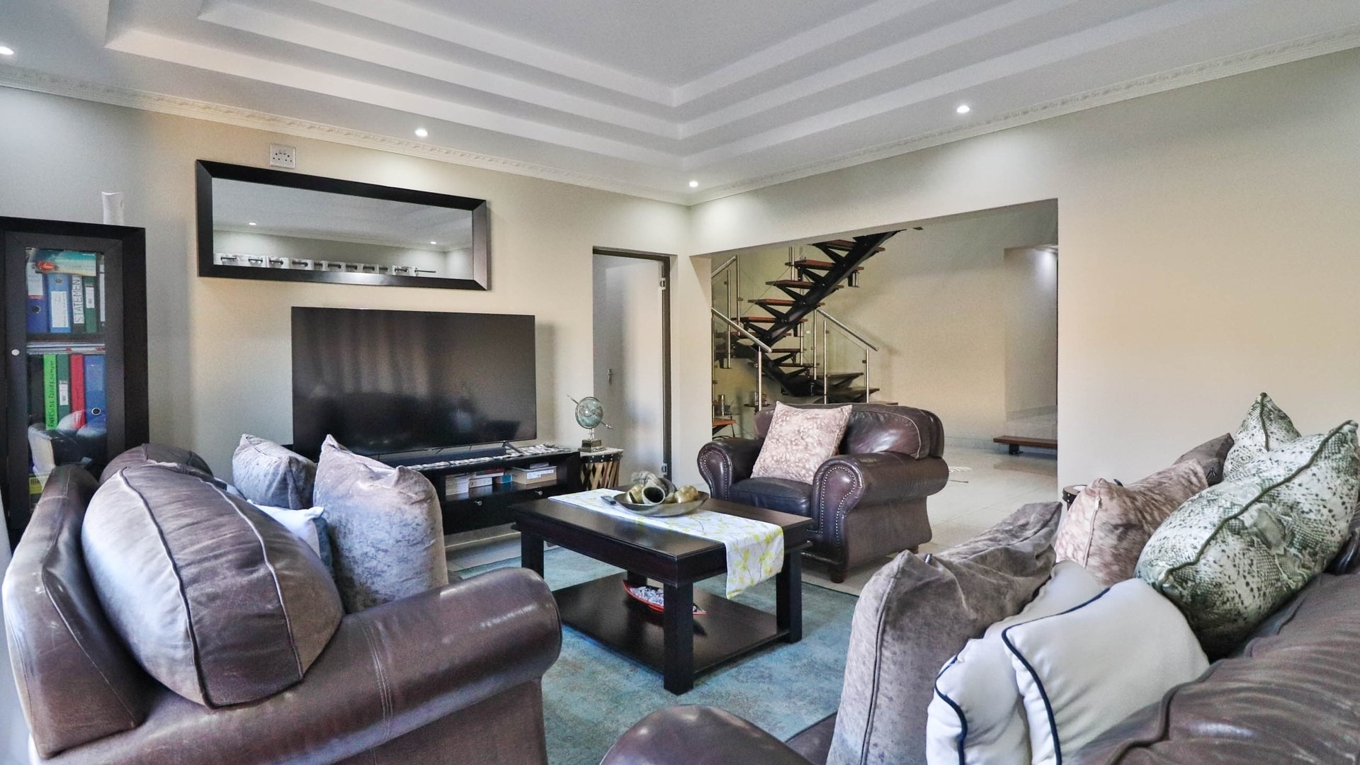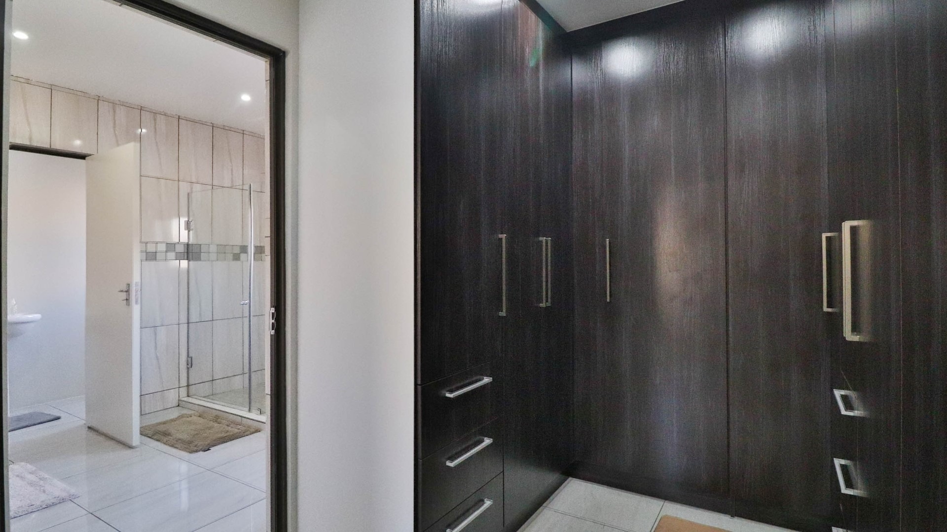 This magnificent residence in a gated Security Estate in Mbombela, boasts an array of features that cater for comfort and luxury. There are five bedrooms, each one equipped with built in cupboards and en-suite bathrooms, ensuring privacy and convenience. It has a functional kitchen which is a chef's delight, with ample working space, abundant storage with lots of cupboards and both an electric and gas stove for versatile cooking options. The living spaces includes two lounges and two dining rooms, perfect for entertaining guests or enjoying family time. Tiled floors throughout the house for easy maintenance and three air conditioners keeps the environment comfortable year -round,