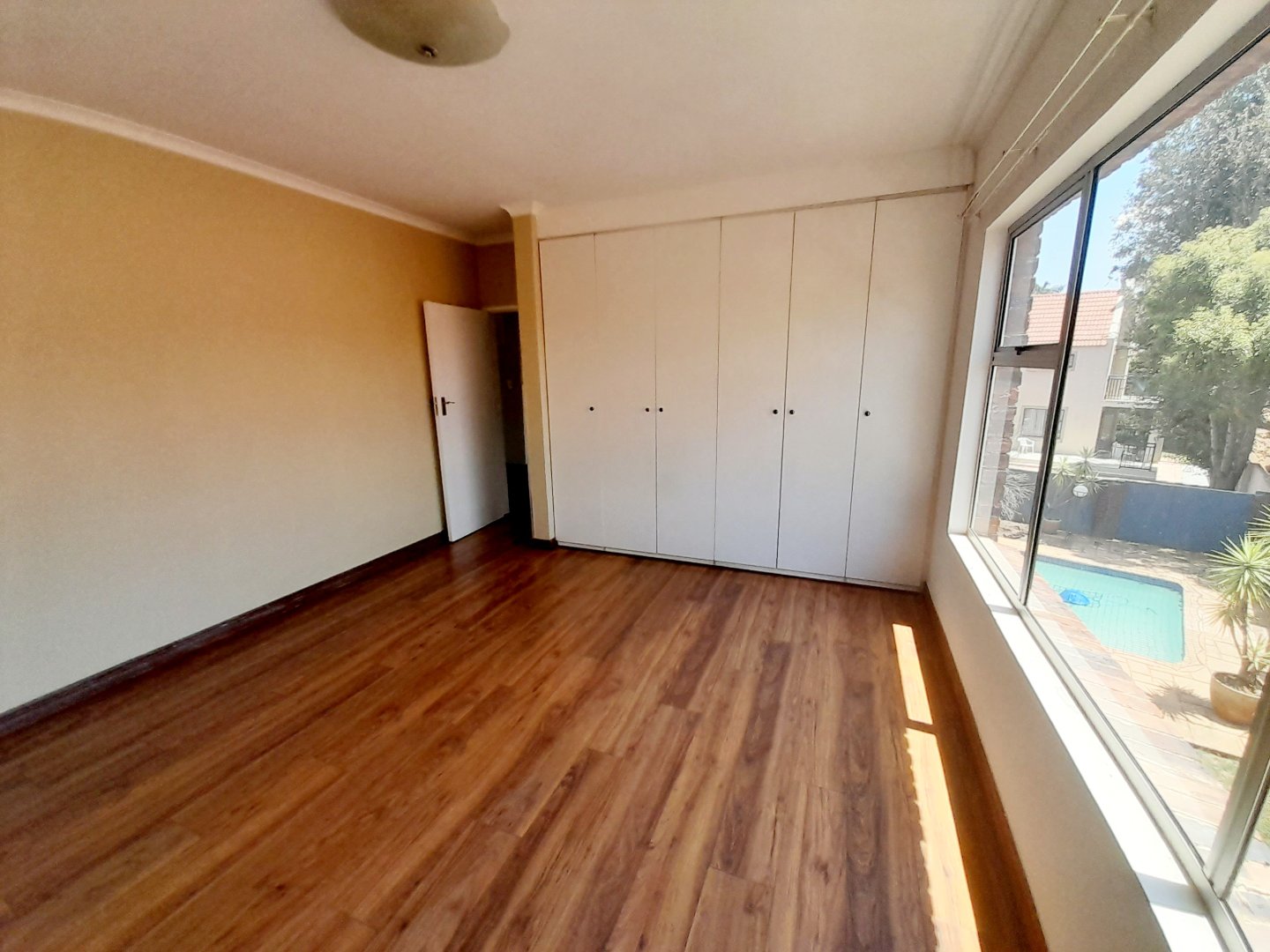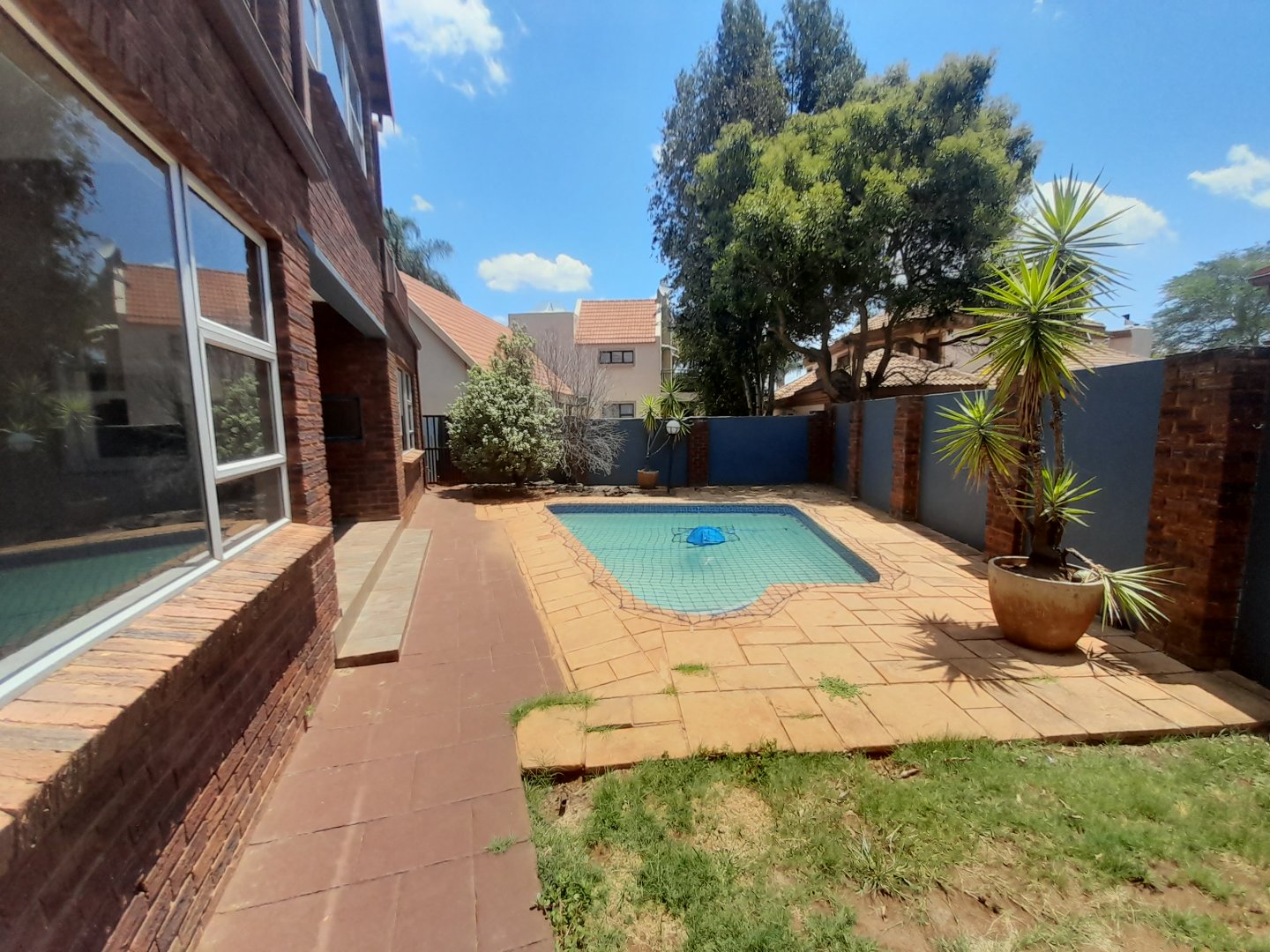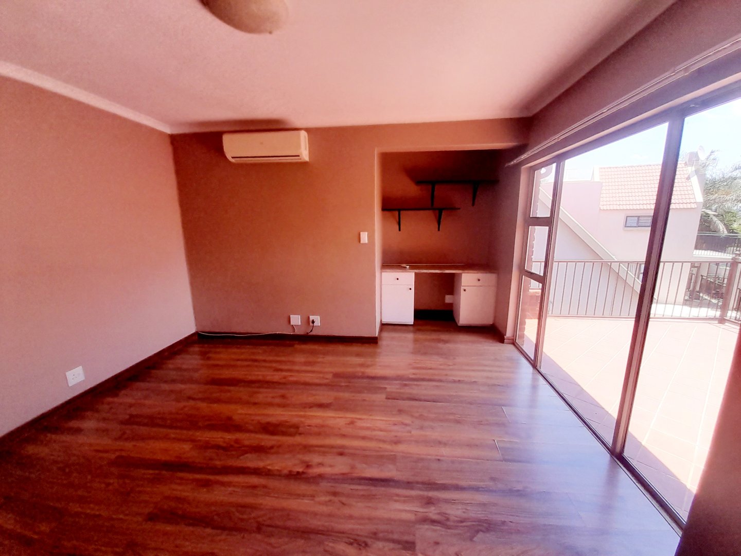 Downstairs welcomes you with a spacious open-plan dining area and lounge that flow seamlessly onto an undercover patio with a built-in braai, overlooking a sparkling swimming pool — perfect for entertaining family and friends. There is also a separate TV room and a guest loo for added convenience.