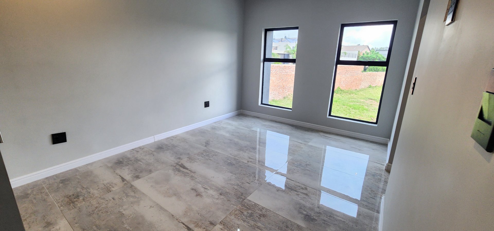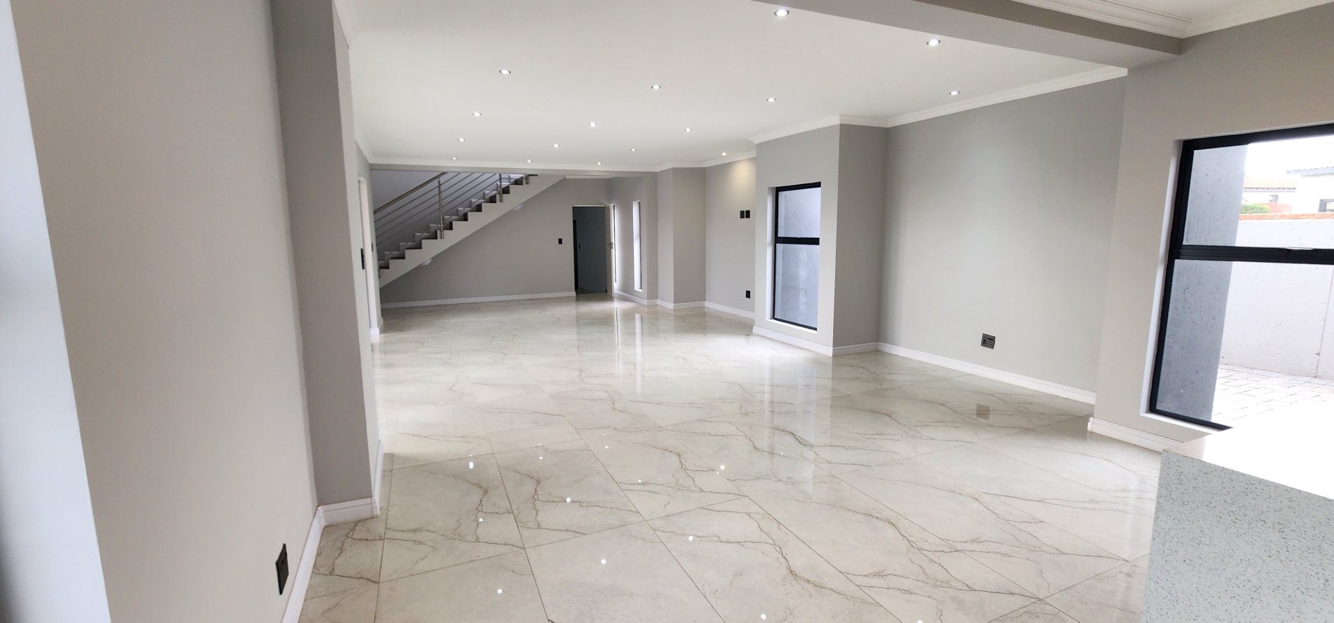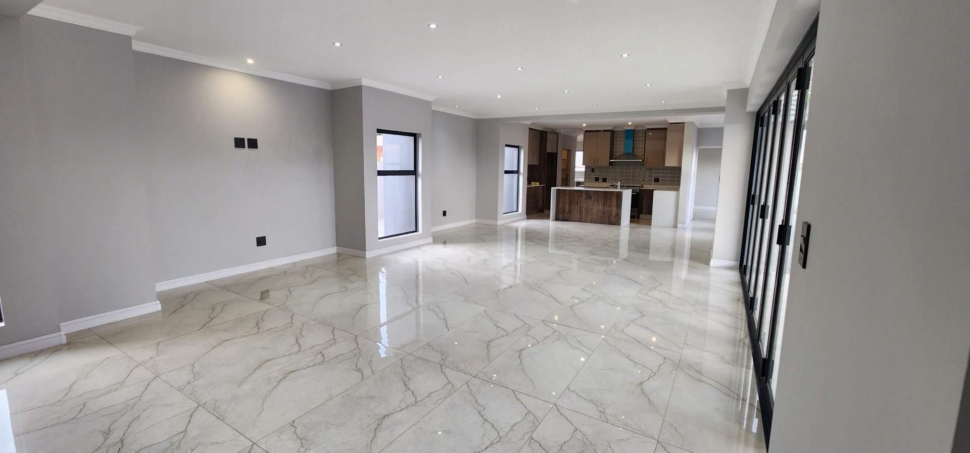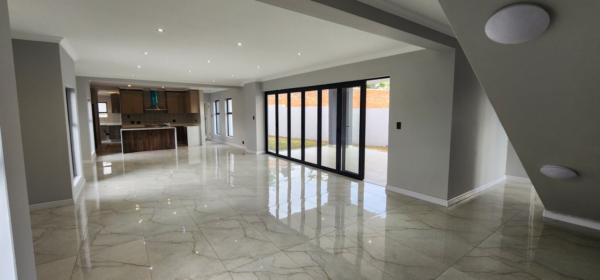 The open-plan living areas are bathed in natural light, creating a bright and airy ambiance. High ceilings enhance the sense of space, while stackable doors seamlessly connect the indoors to the entertainment patio, complete with a built-in braai—ideal for hosting unforgettable gatherings.