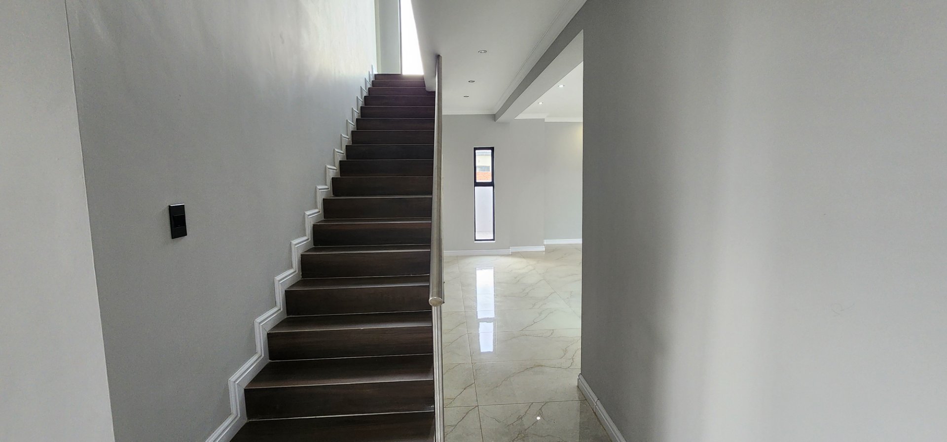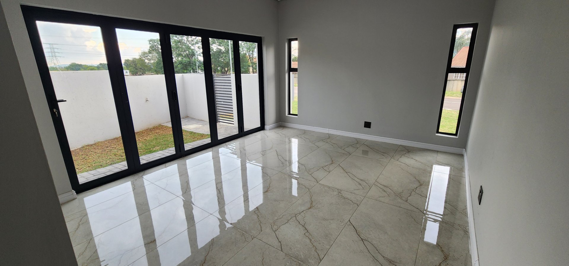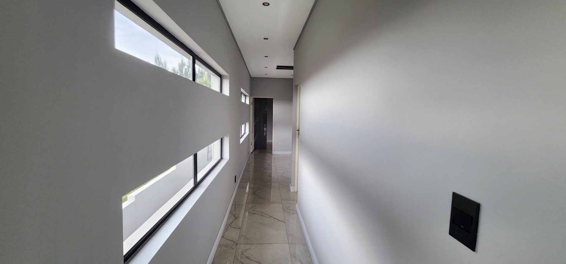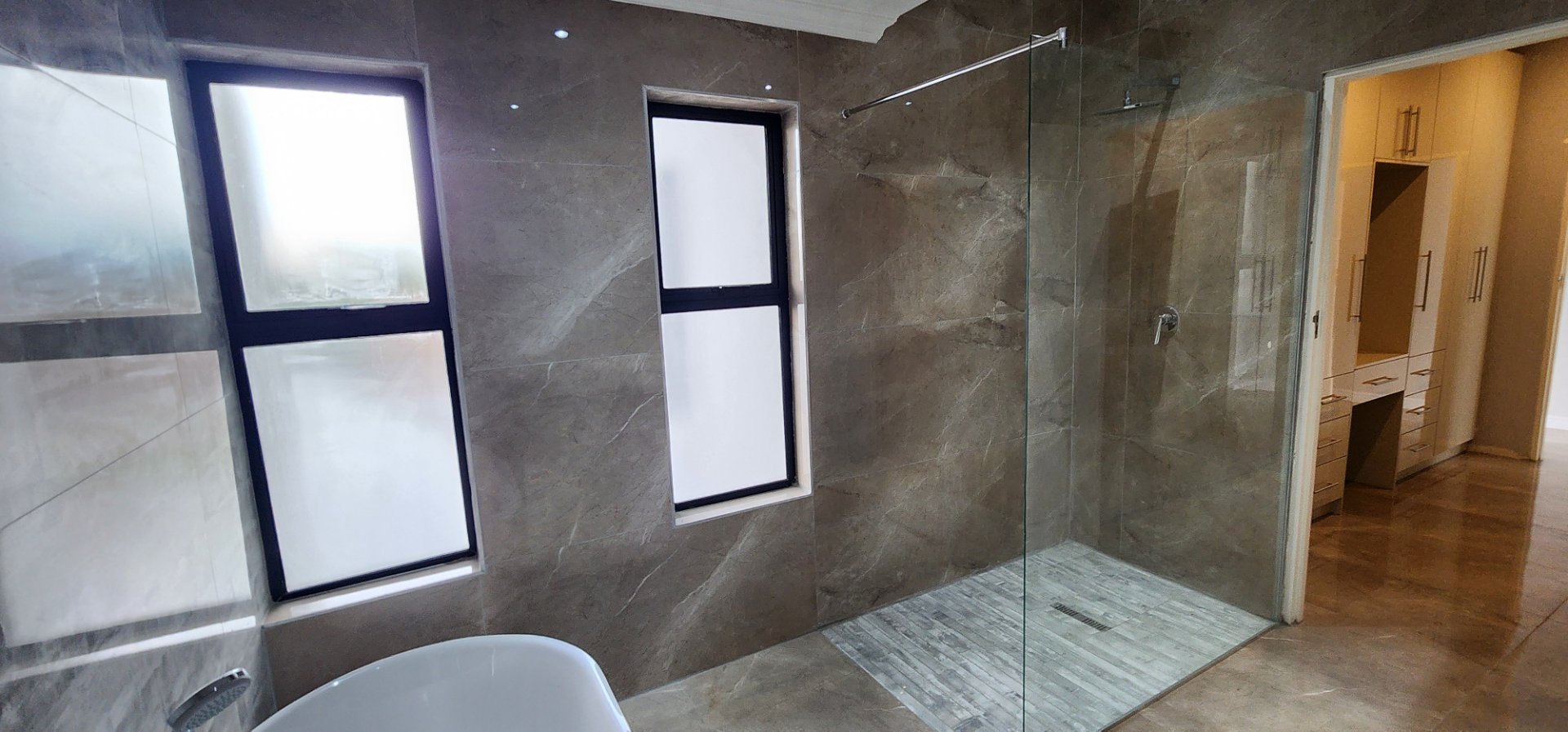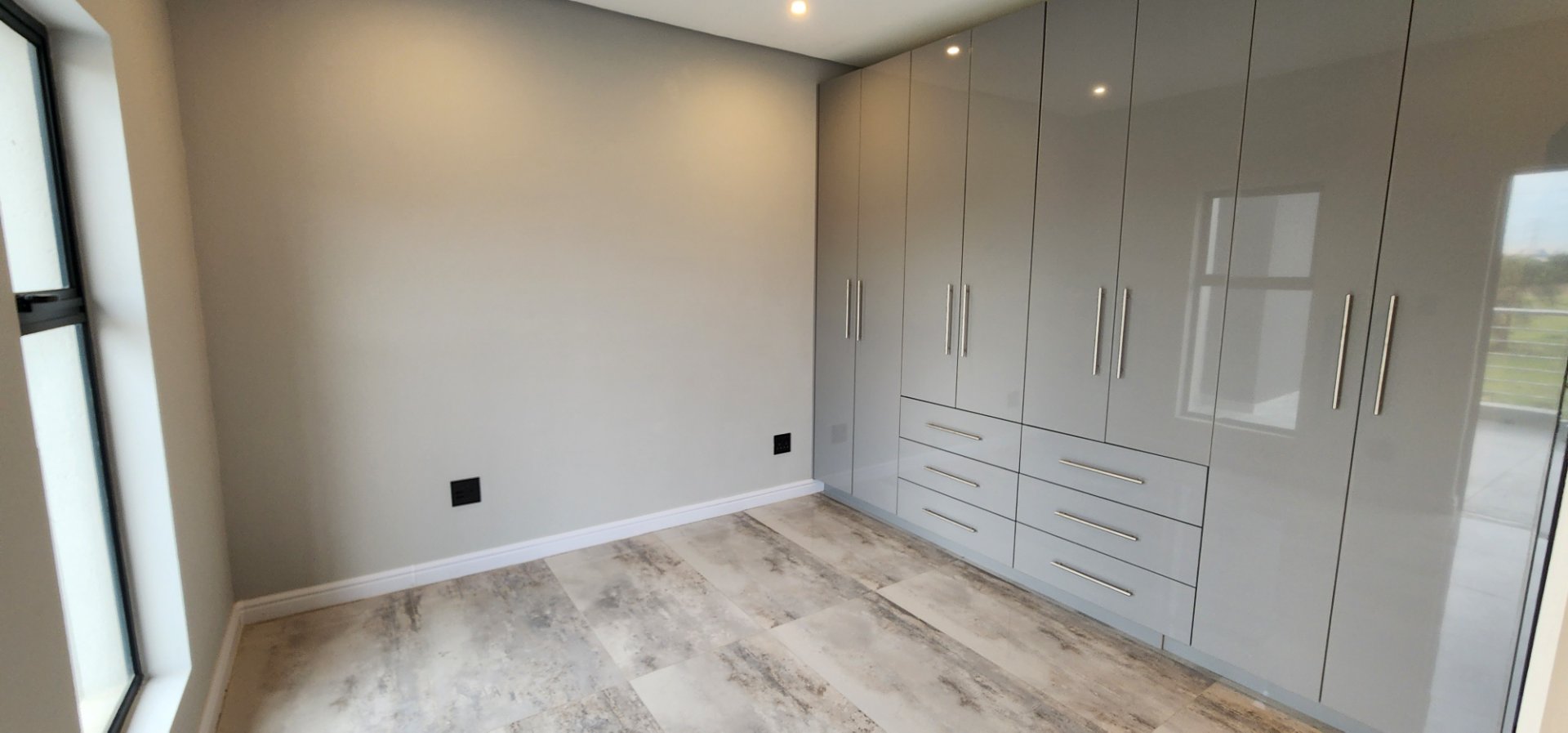 The open-plan living areas are bathed in natural light, creating a bright and airy ambiance. High ceilings enhance the sense of space, while stackable doors seamlessly connect the indoors to the entertainment patio, complete with a built-in braai—ideal for hosting unforgettable gatherings.