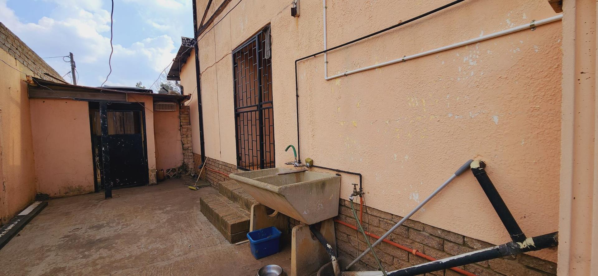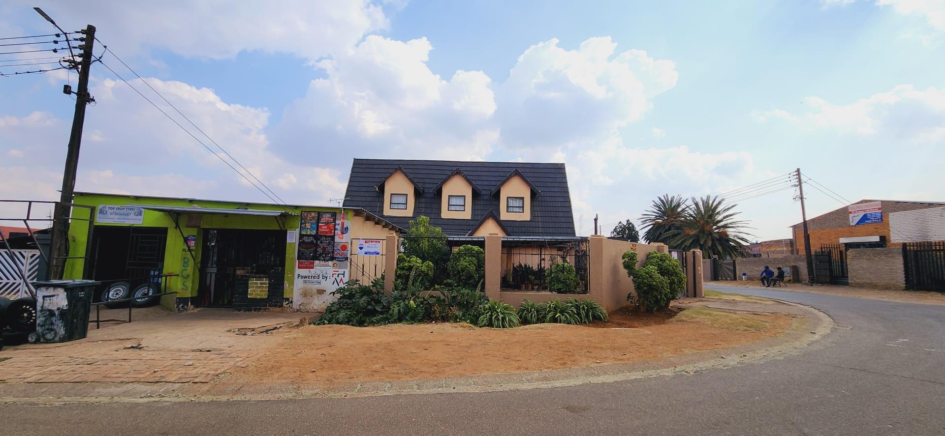 Outside, you’ll find a double carport, a single garage, and a front garden with paved walkways. The home comes with two operating spaza shops generating income, plus two unfinished backrooms, providing a unique opportunity for rental income or future development.