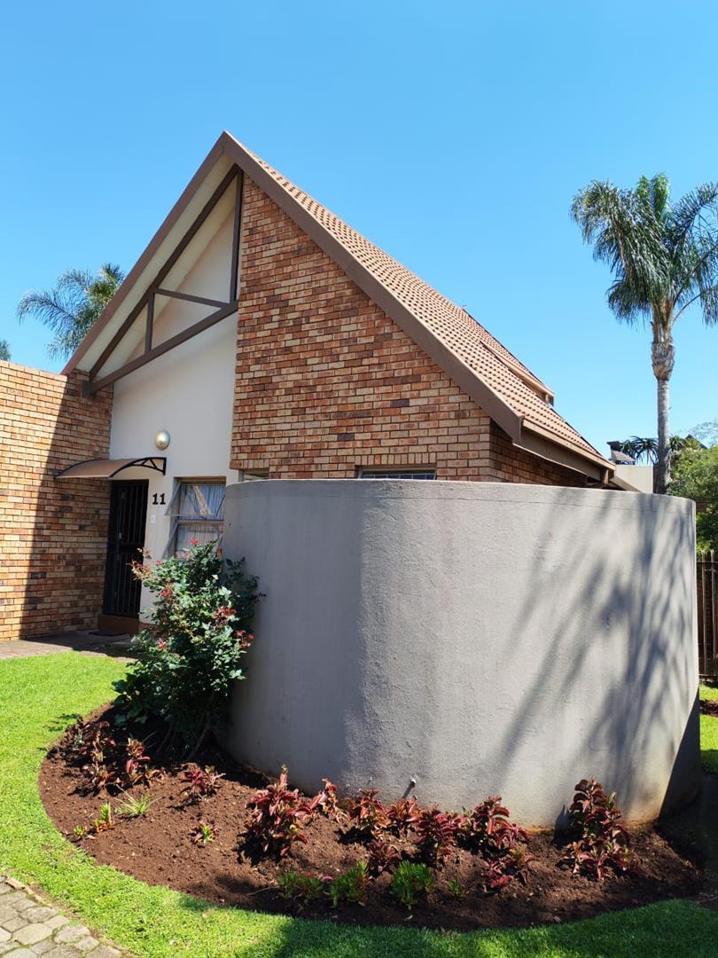 The lounge leads out to a covered entertainment area with a built-in braai overlooking the lovely garden area.