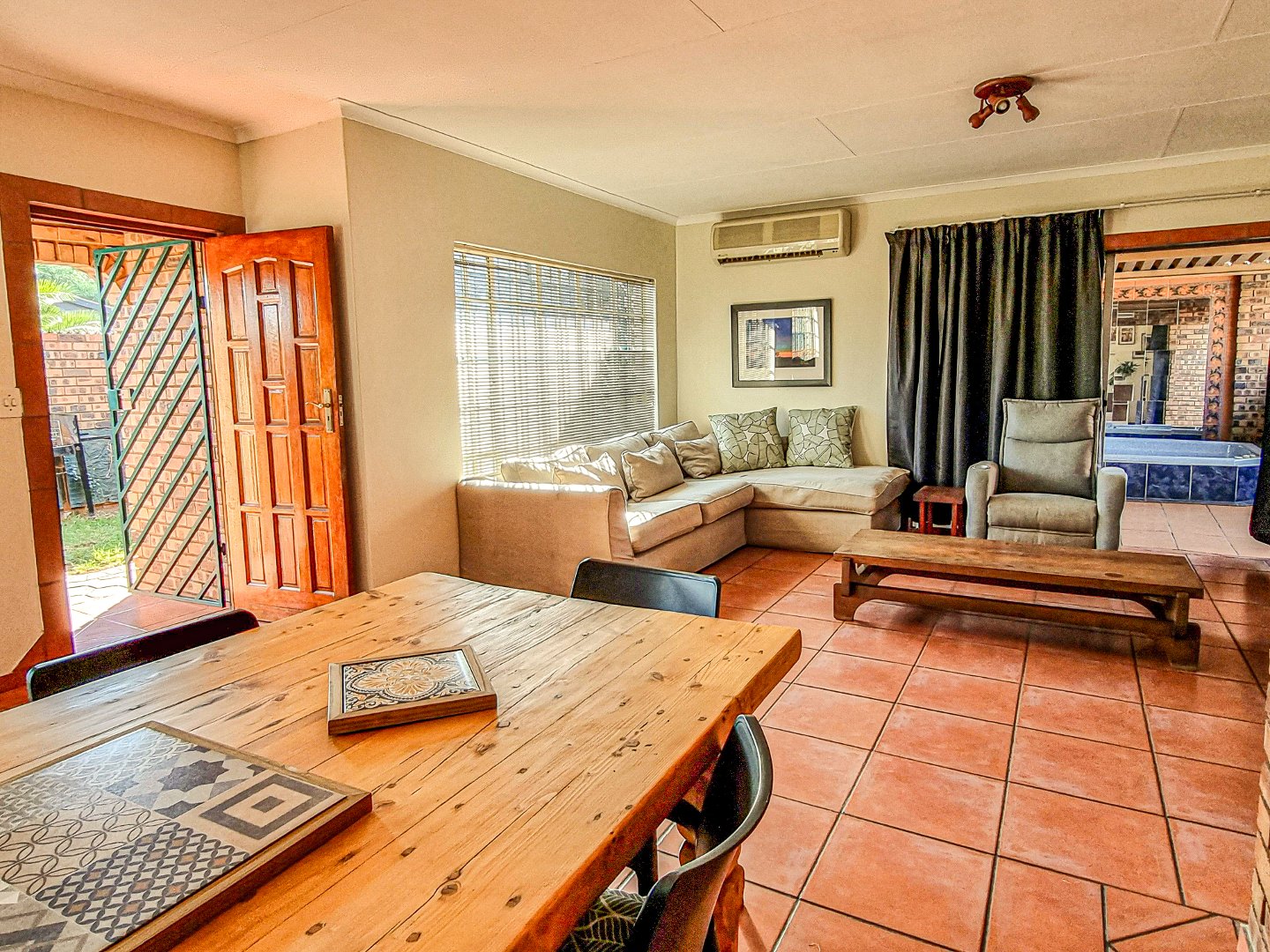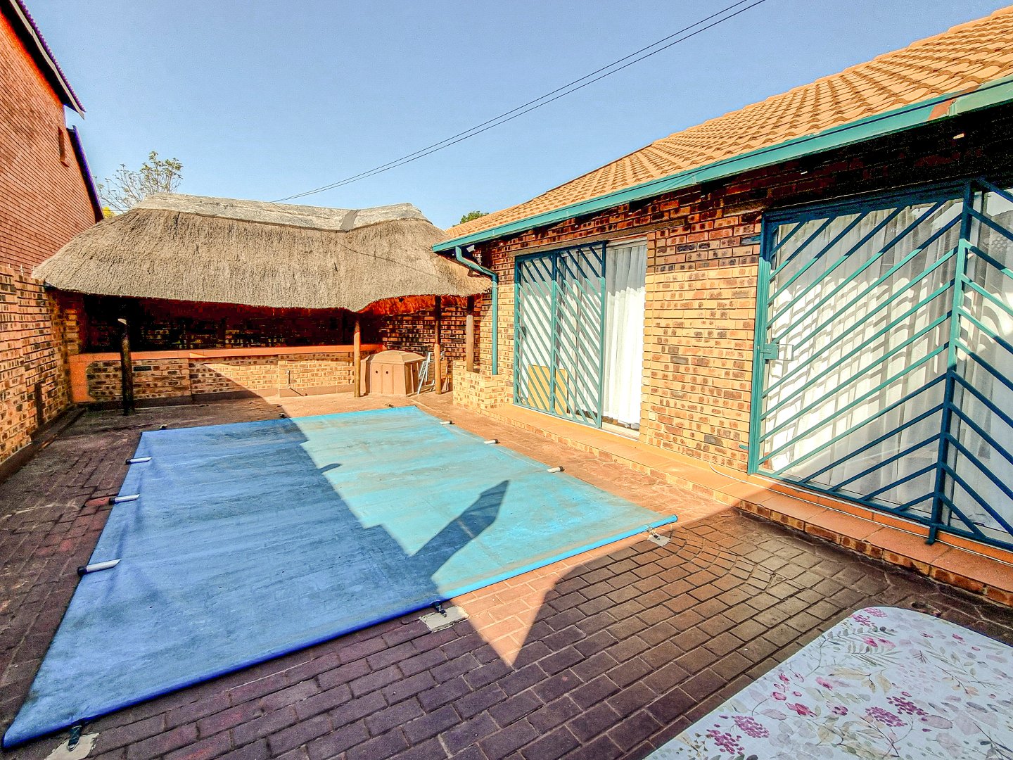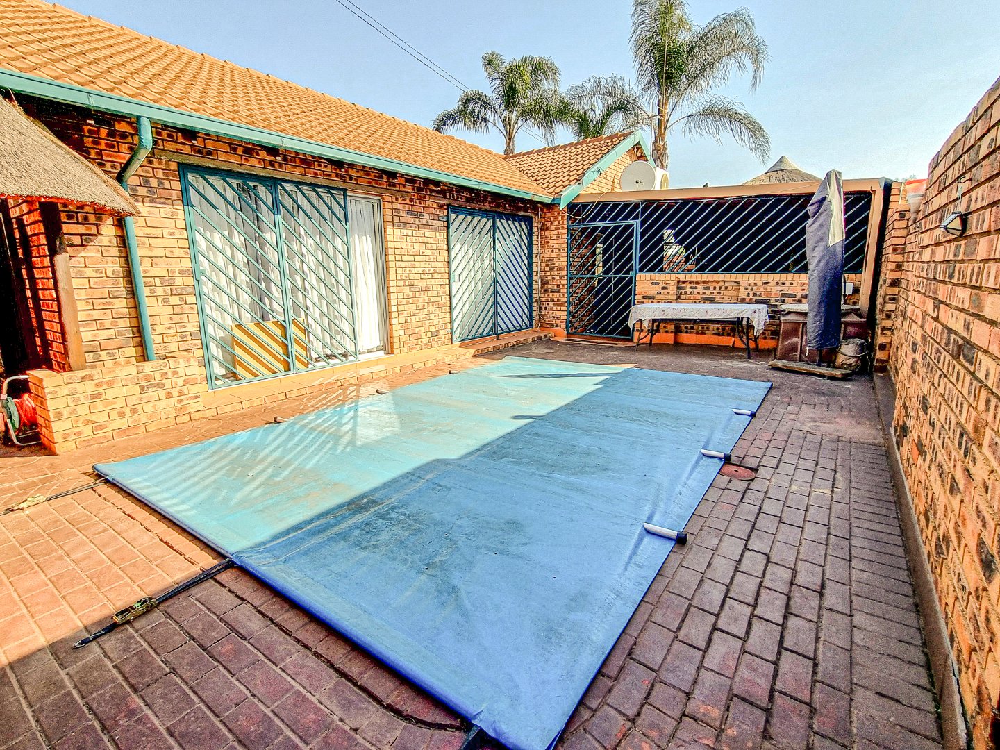 Single level, low maintenance - the ideal home for people who are downsizing or buying their first house. This Duet-home is a streetfront property in a great location. It is a well-maintained, neat property featuring 3 spacious bedrooms, 2 bathrooms, an open-plan kitchen (with scullery & pantry) that flows into the lounge and dining room. The lounge opens up to a wonderful outside covered patio and entertainment area boasting a built-in bar, built-in braai, Jacuzzi, and swimming pool. Call me- don't wait!