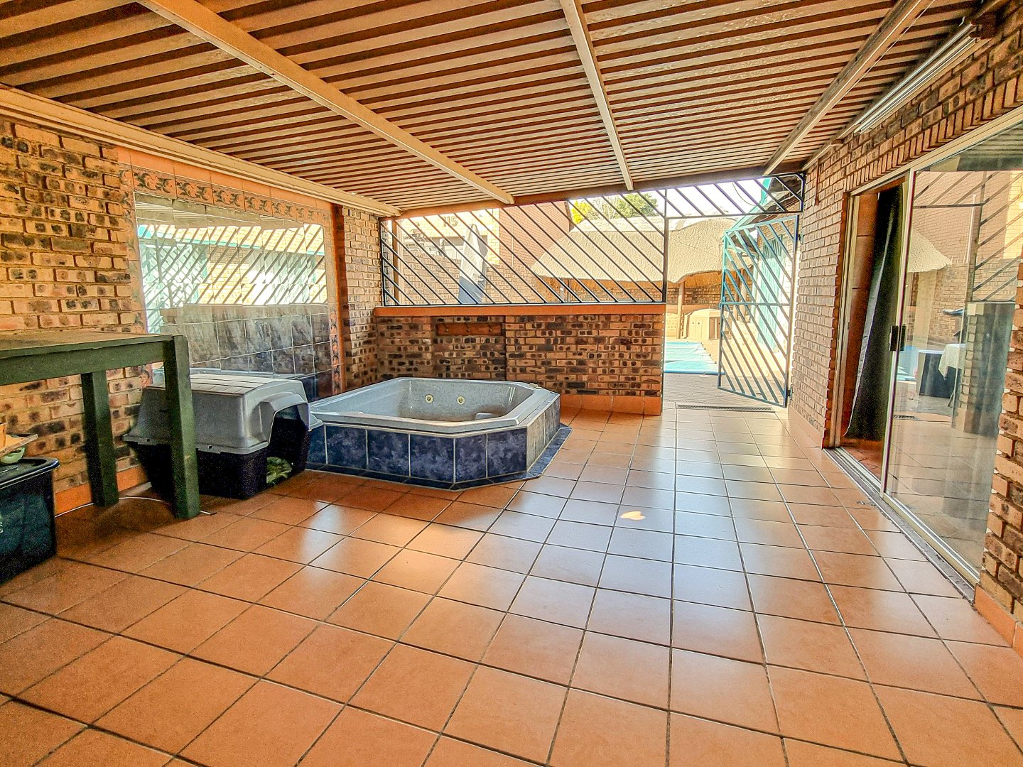 - Covered patio and entertainment area, Built-in braai, Built-in bar, Jacuzzi, and pool.
