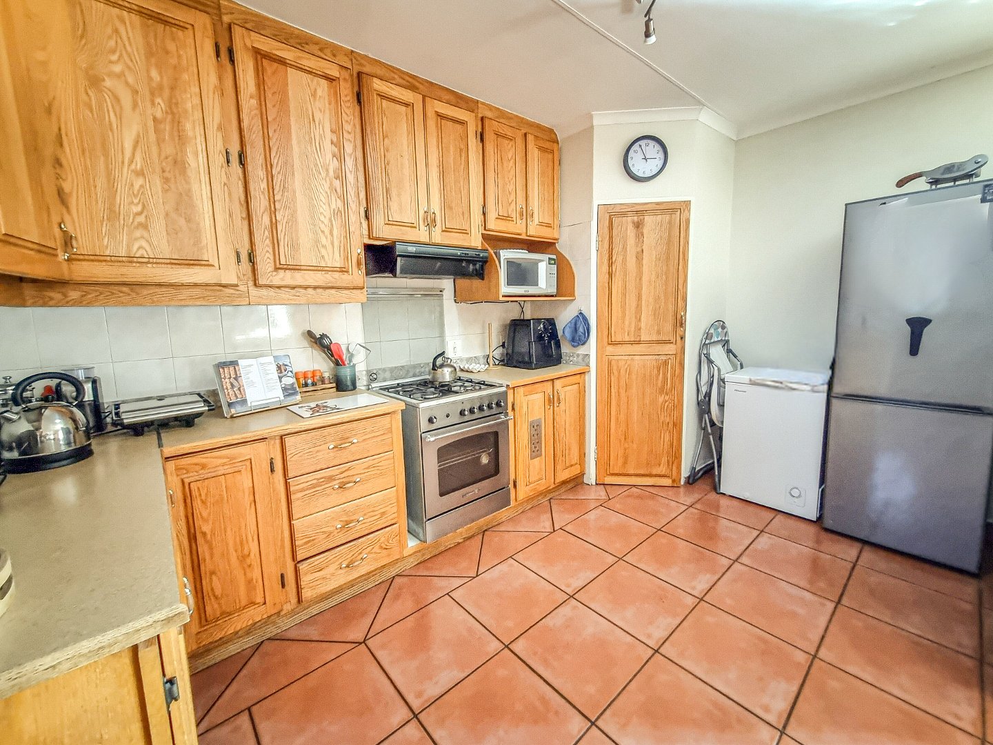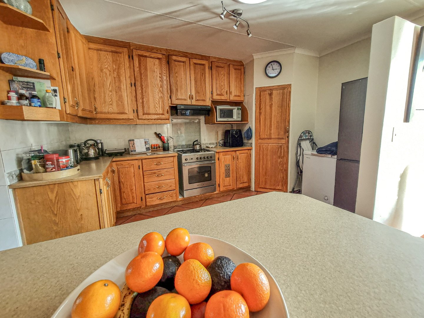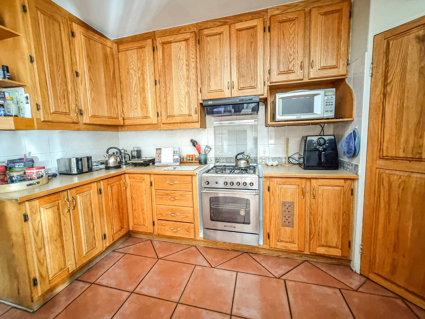 - Kitchen with solid wood cupboards, Pantry, Gas stove, Extractor fan, and space for double fridge.