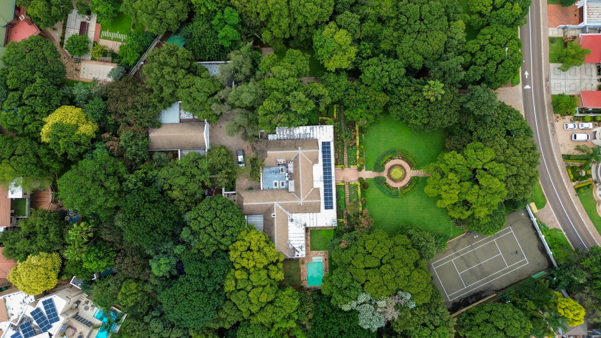 This exquisite property is situated in park like surroundings with verdant gardens, sprawling lawns under a canopy of trees, some of which are a hundred years or older.