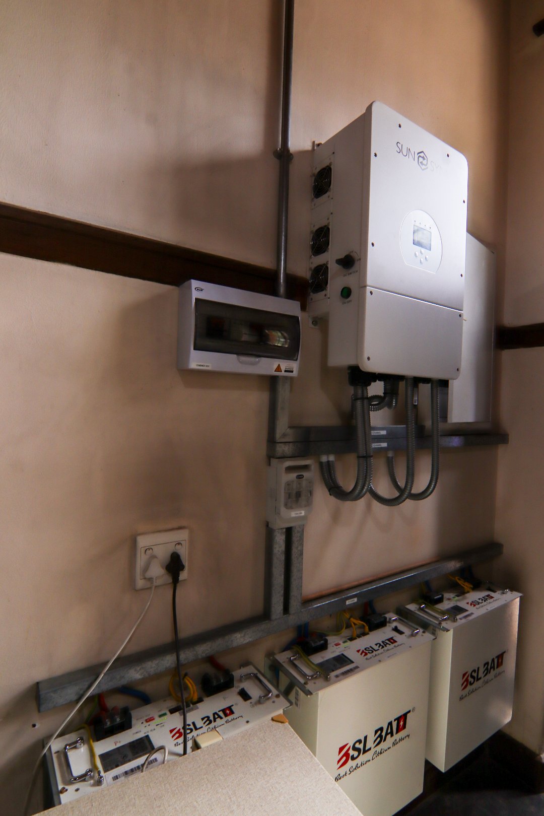 16 solar panels, an 8kW inverter and 3 Lithium Batteries.