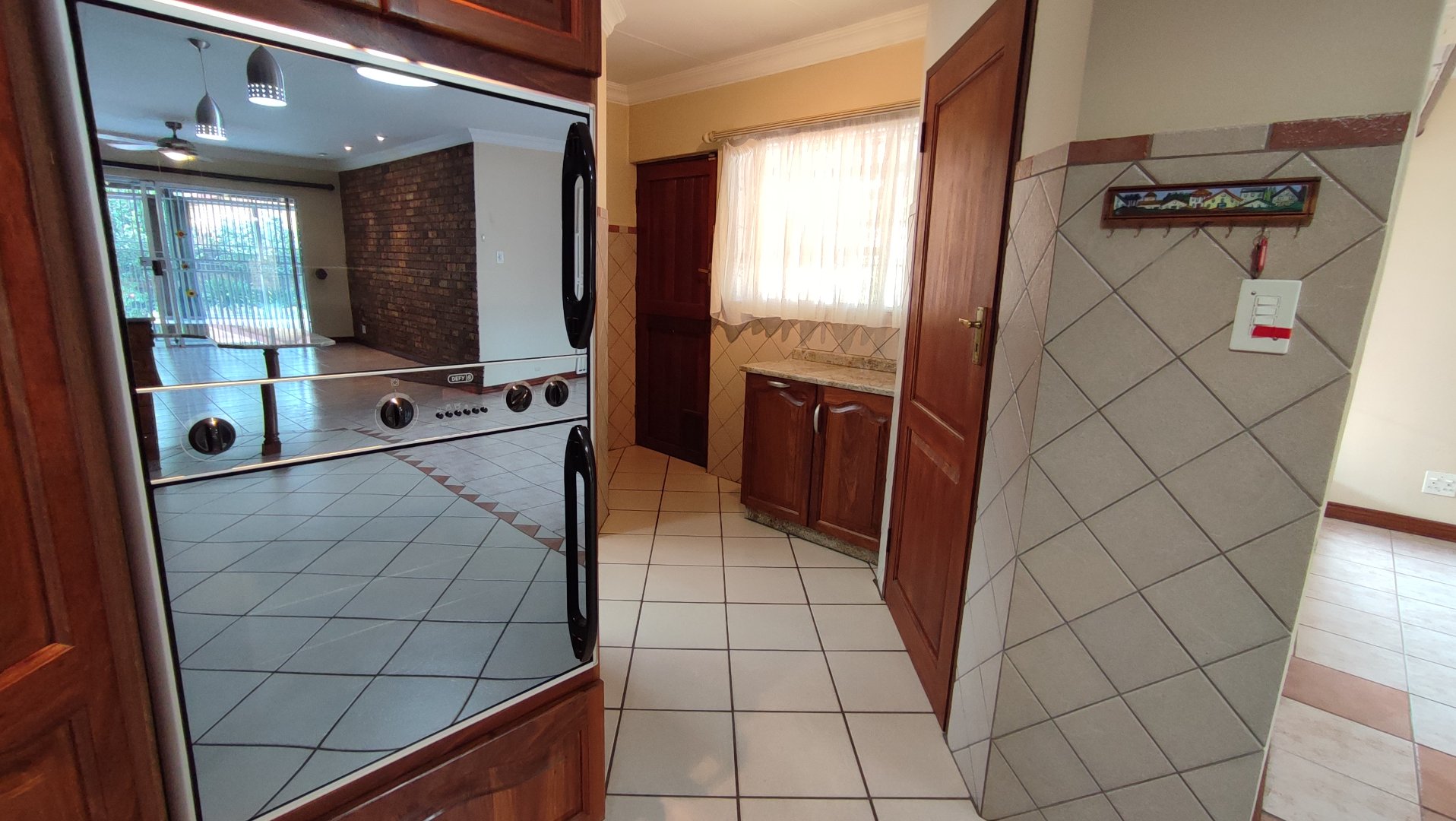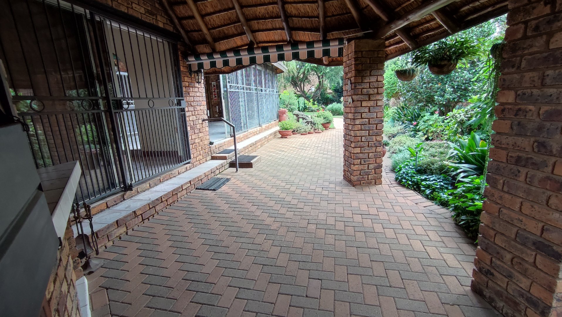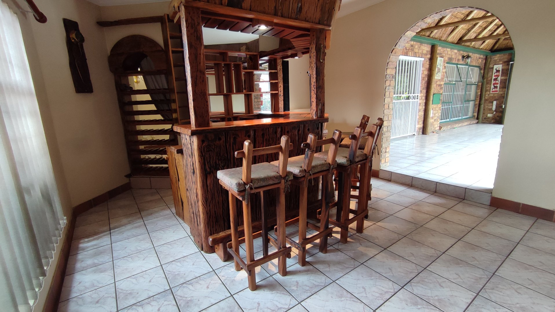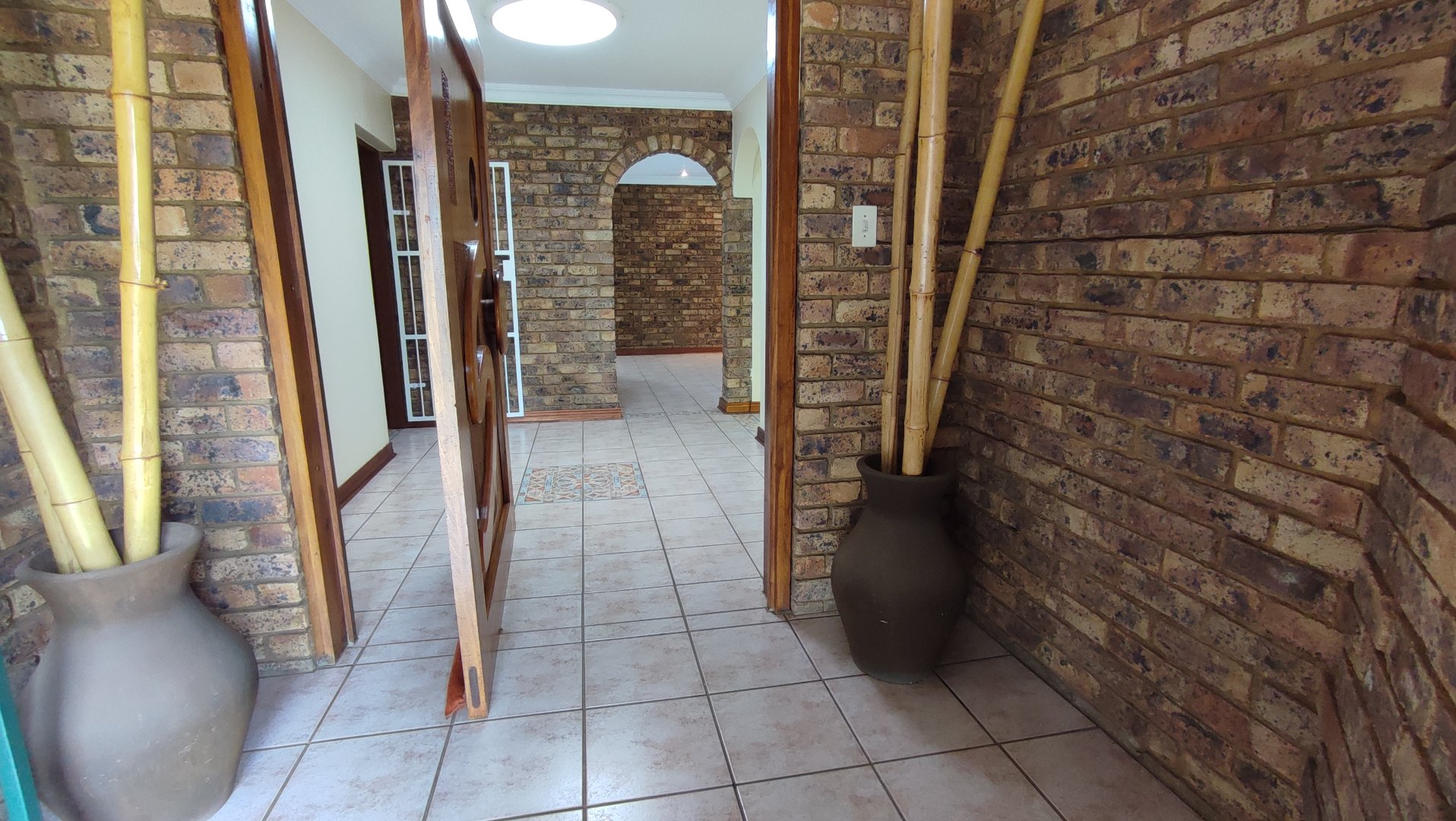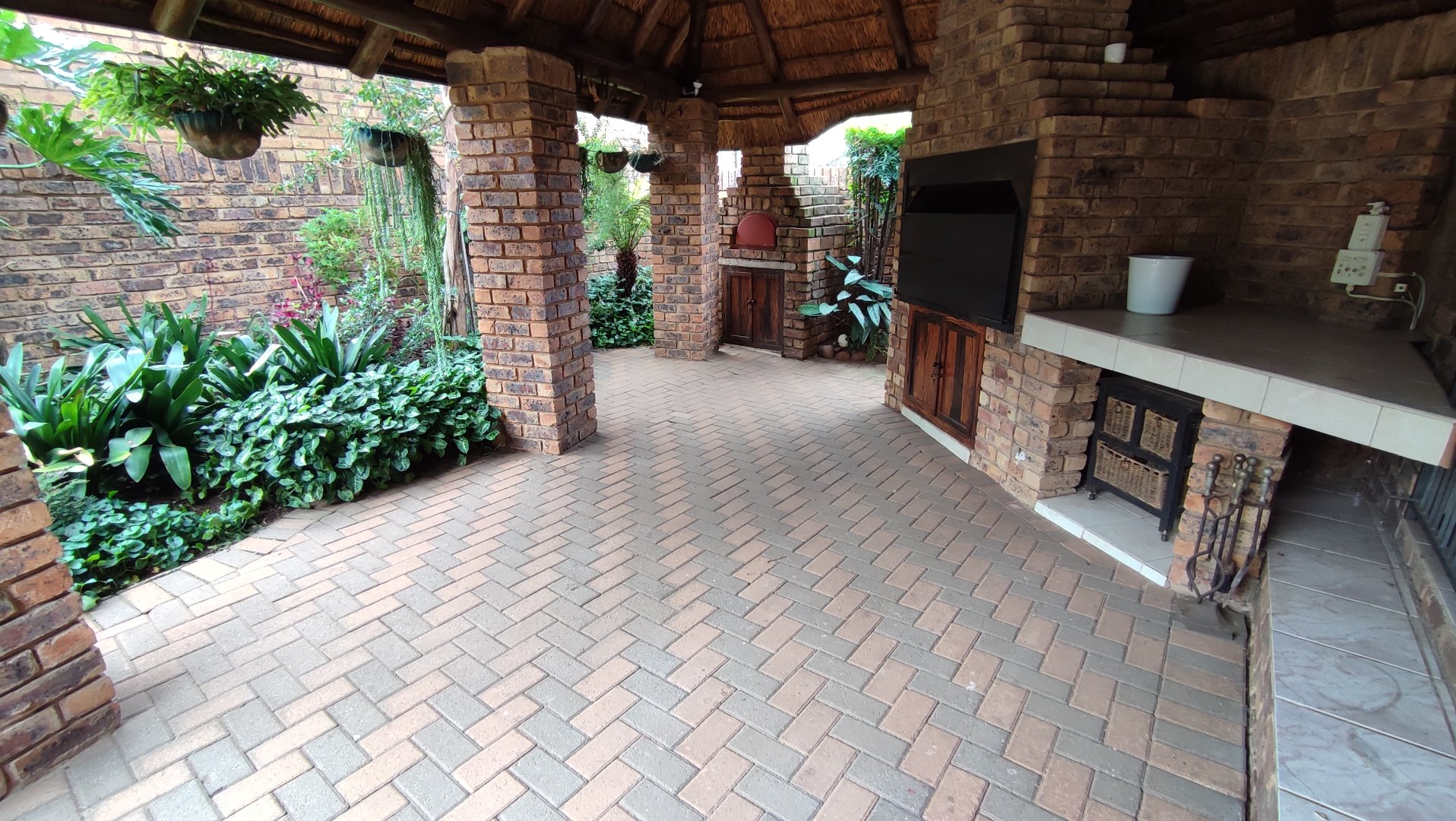 Additional features include a neatly appointed outside toilet and shower, a Wendy House, a storage room, a double garage with automated doors and direct access to the main house, a double carport, burglar proofing, safety gates, alarm system, electrified fence, fiber optic network points, alarm system, ample visitor parking, and the added security of a boomed-off neighborhood with approved building plans.