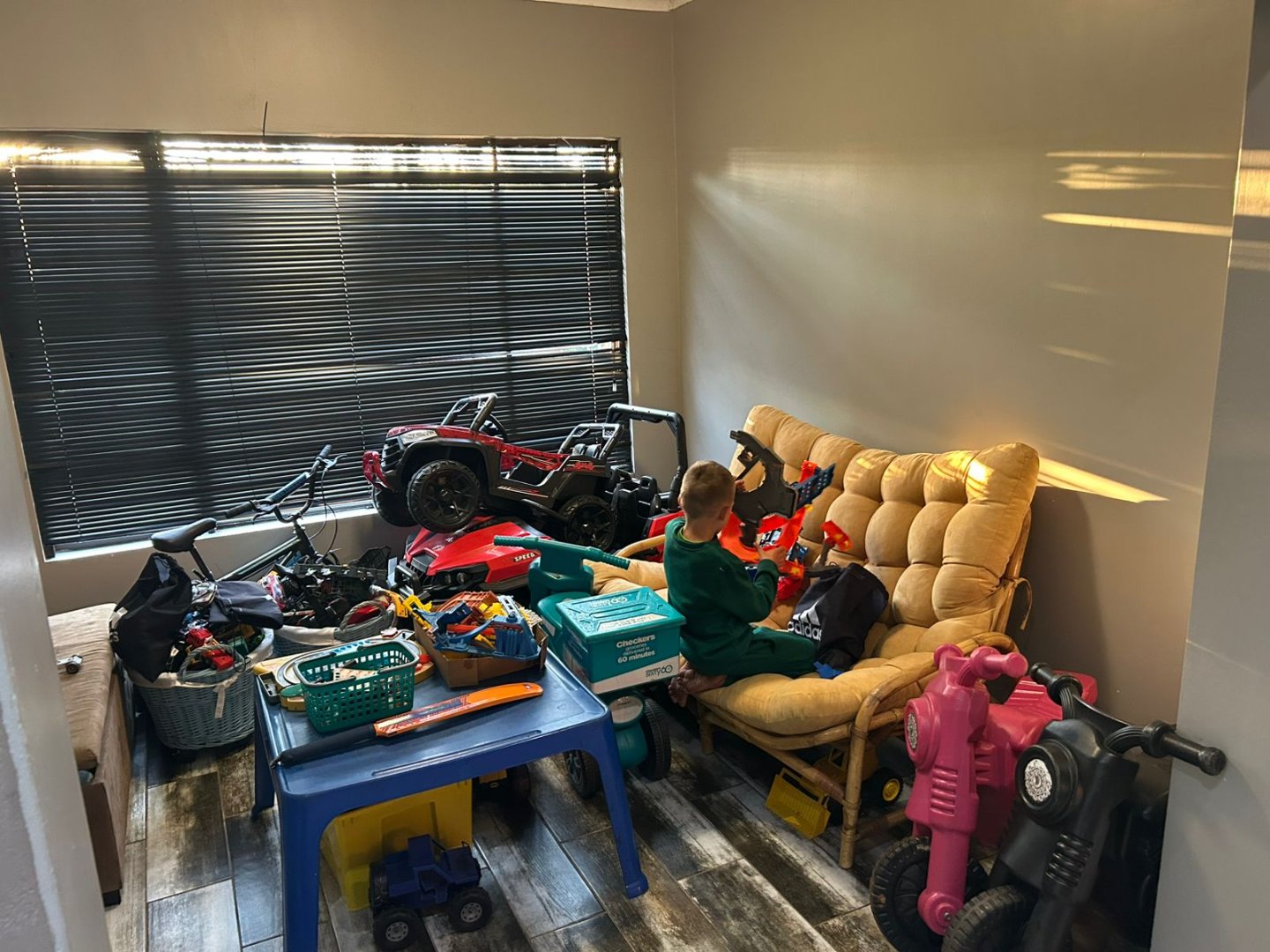 Three generously sized bedrooms share a modern, well-proportioned family bathroom. A central open space currently serves as a child’s playroom, easily adaptable into a study or reading corner. The main bedroom is a private retreat — tucked away from the rest of the home, it features space for a lounge area, lovely garden and pool views, and a luxurious en-suite bathroom.