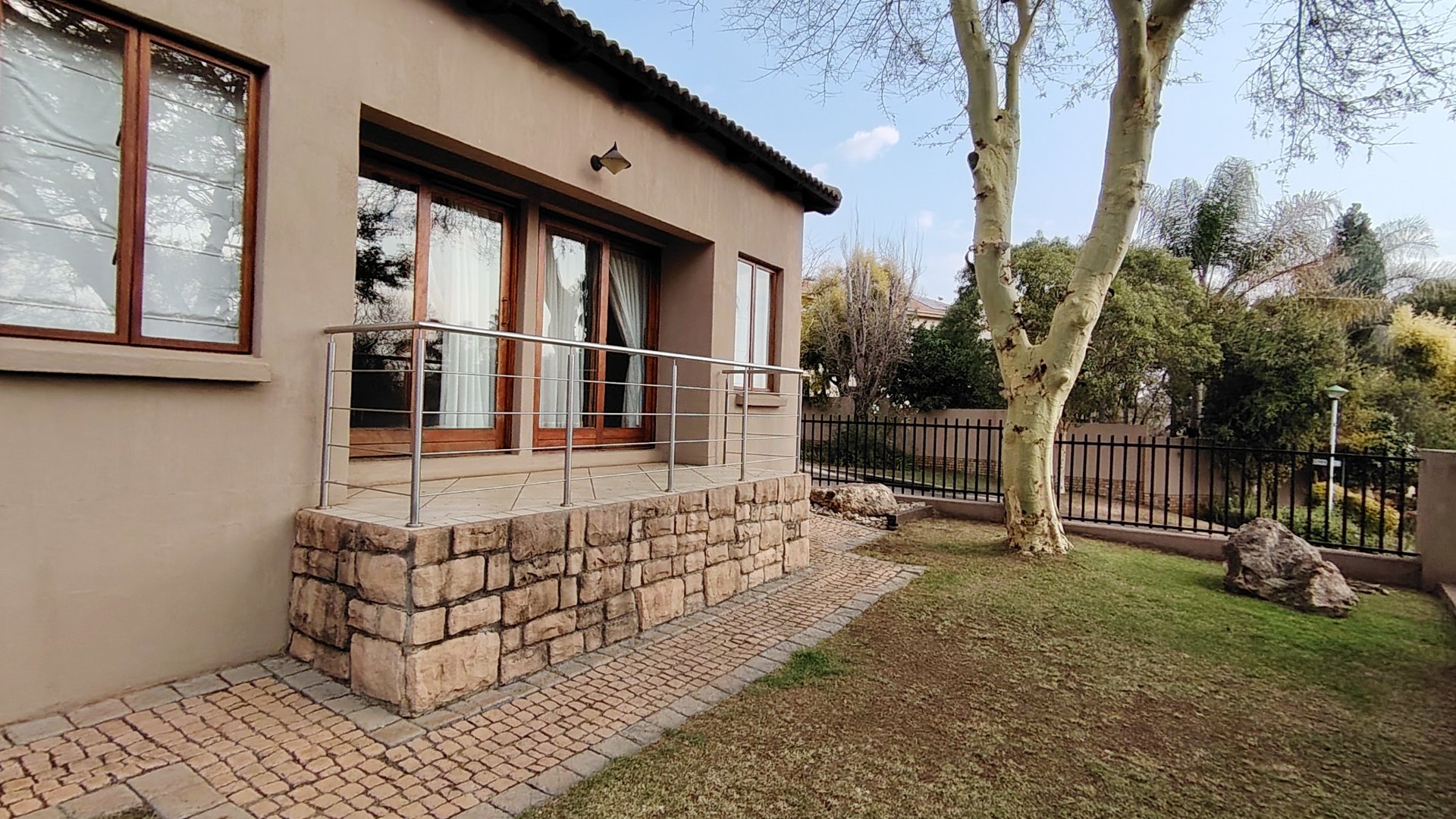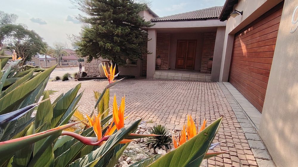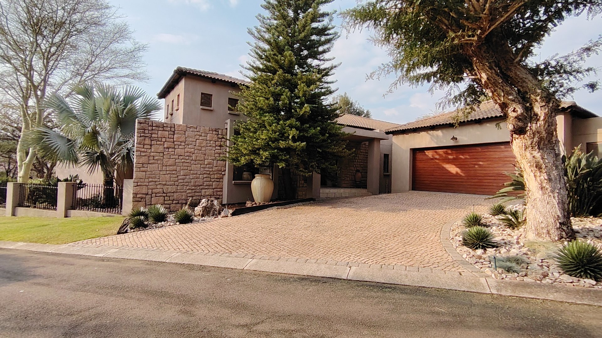 From its cobble-stone driveway, indigenous landscaping, and cladded front wall, to the warm stucco finishes and high-volume ceilings, this home is both inviting and grand. Solid wooden architraves, stone-clad feature walls, and a tasteful combination of wood and tile flooring infuse every space with character and timeless elegance.