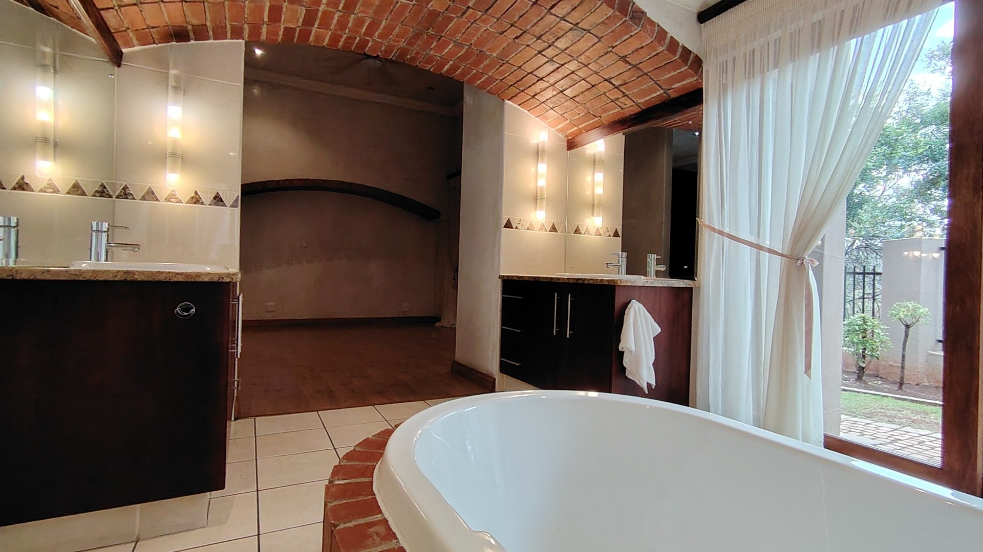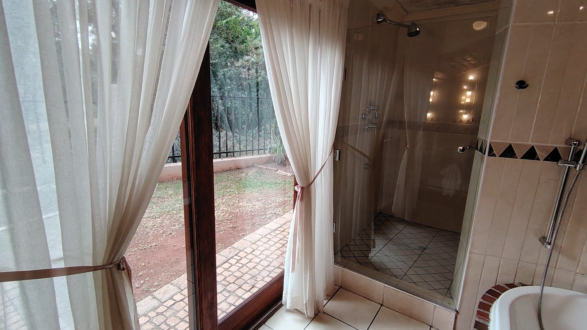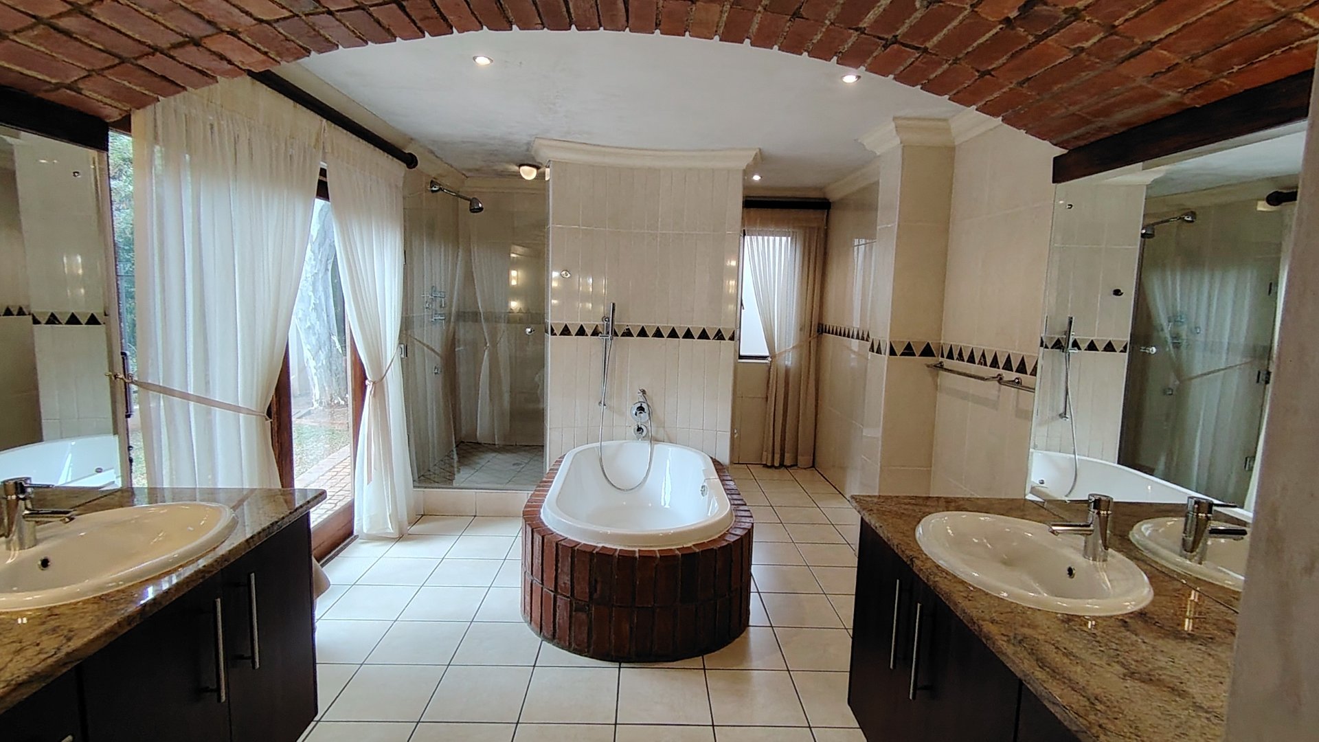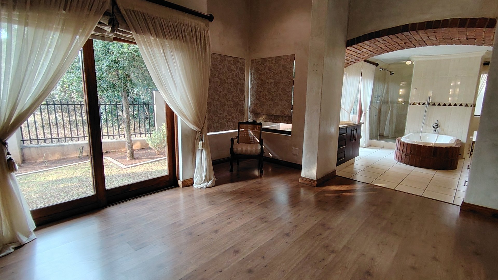 Each of the three generously proportioned bedrooms offers its own ensuite bathroom, providing privacy and convenience for every occupant. Two bedrooms have direct access to a verandah overlooking the pool and garden. The master suite is a sanctuary unto itself—complete with a walk-in dressing room, a spa-style open-plan bathroom, private garden access, and an enchanting outdoor twin-shower courtyard.