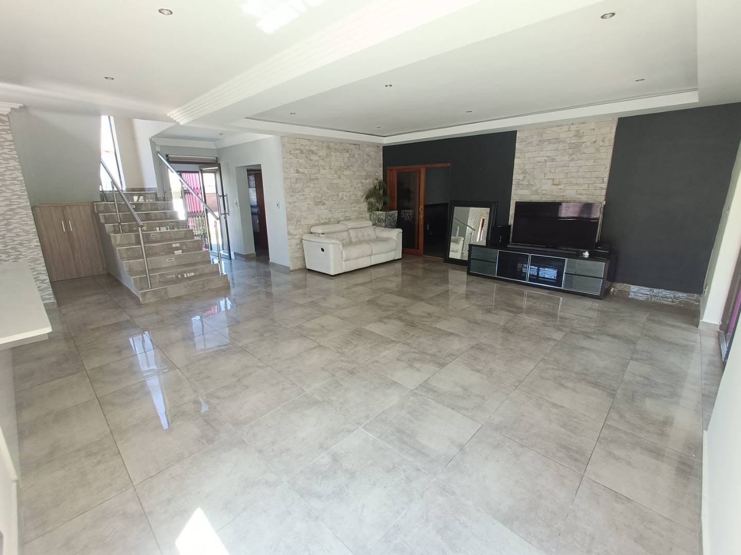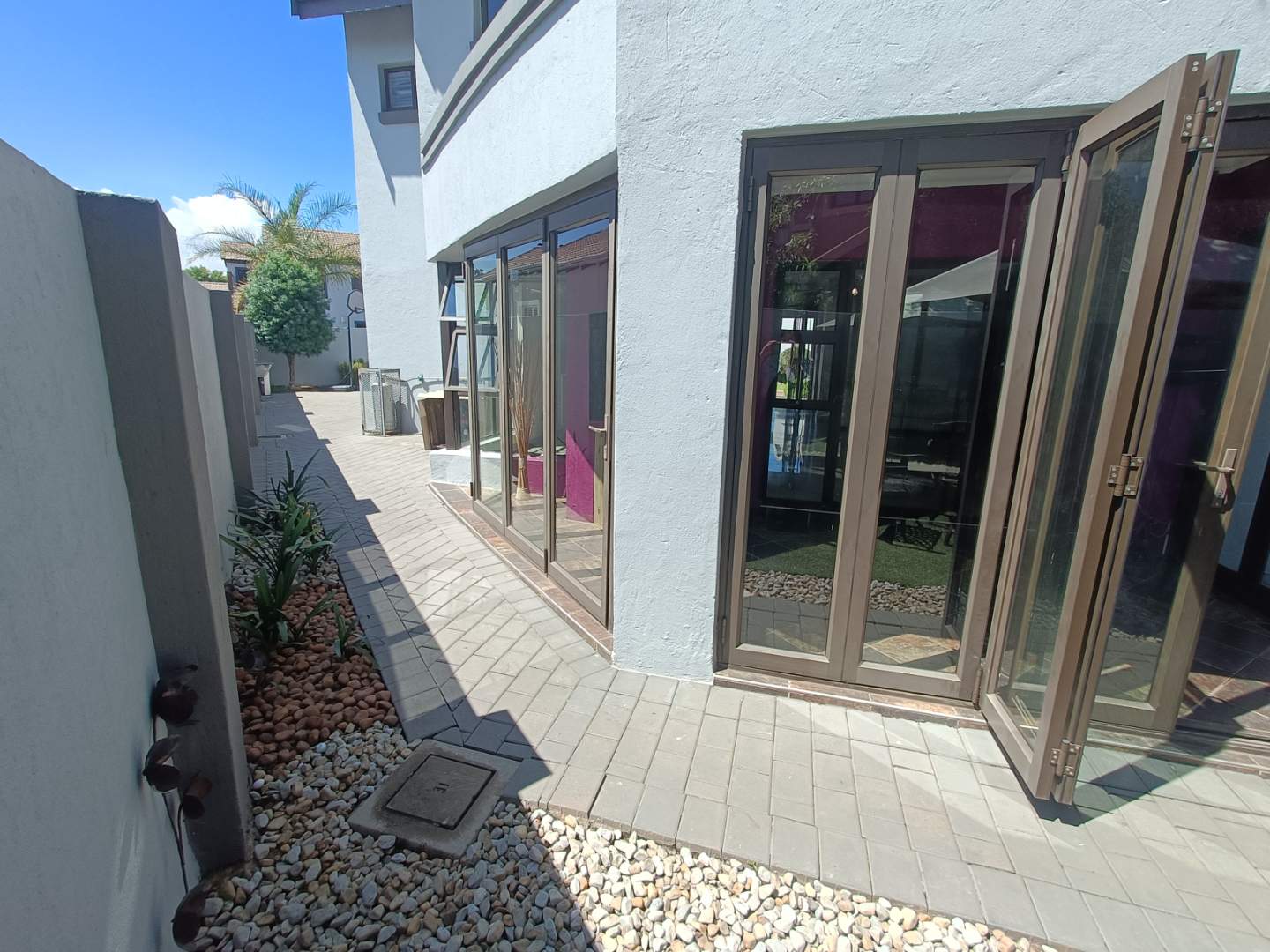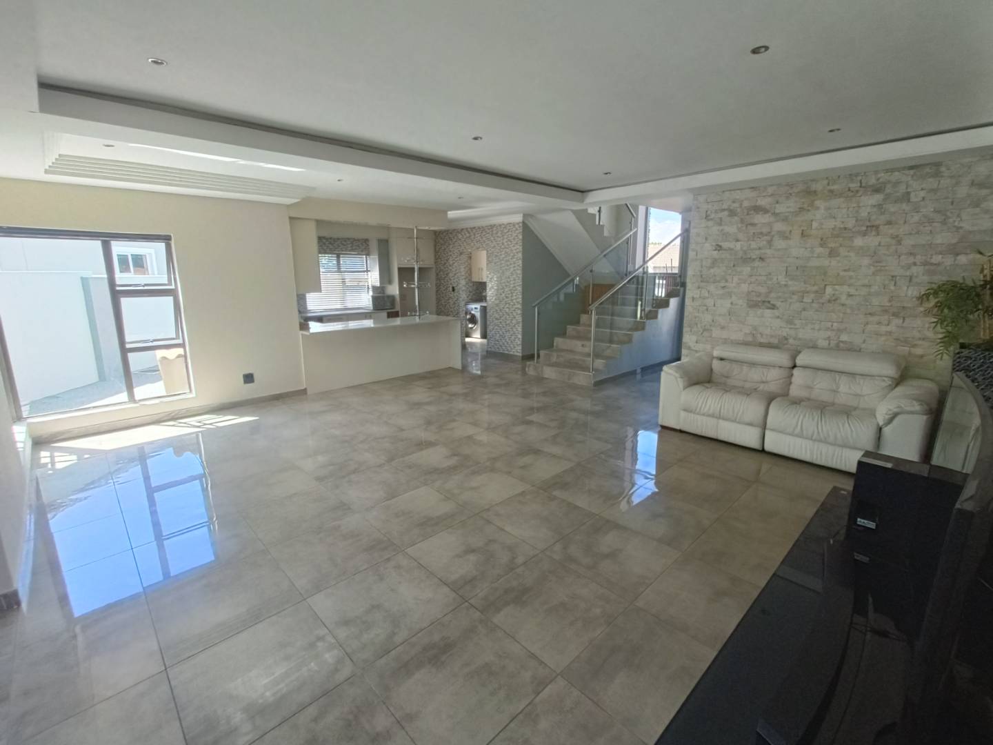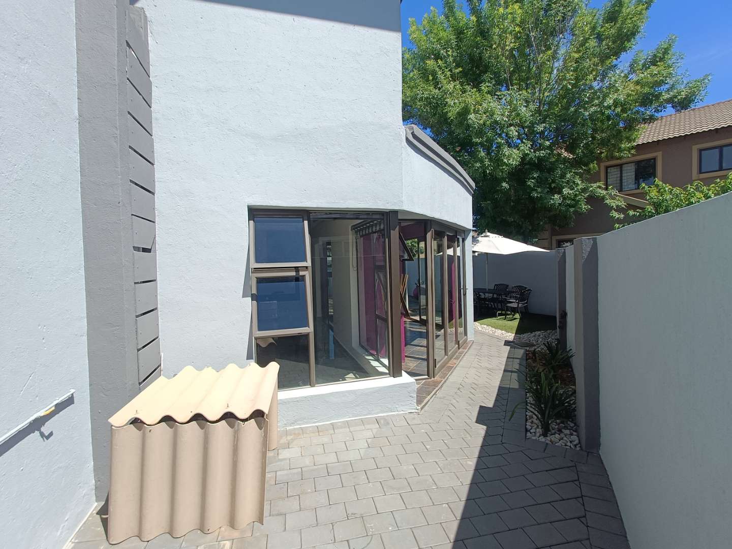 The entertainment area is equipped with a built-in braai and features sliding doors that open to the outdoors, where you’ll find a heated swimming pool ideal for year-round enjoyment. This home is thoughtfully designed to be solar-ready with an inverter system, promoting energy efficiency.