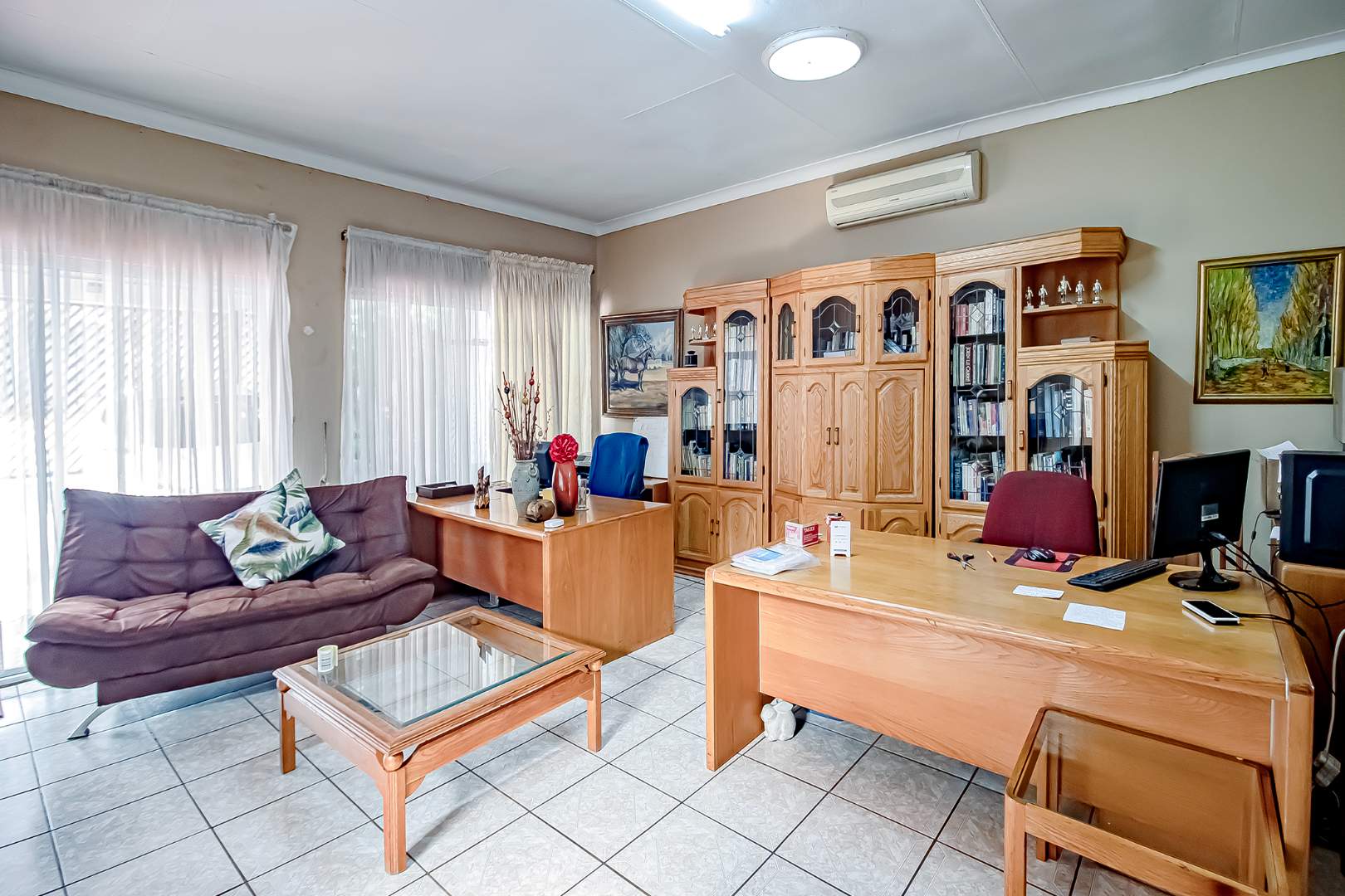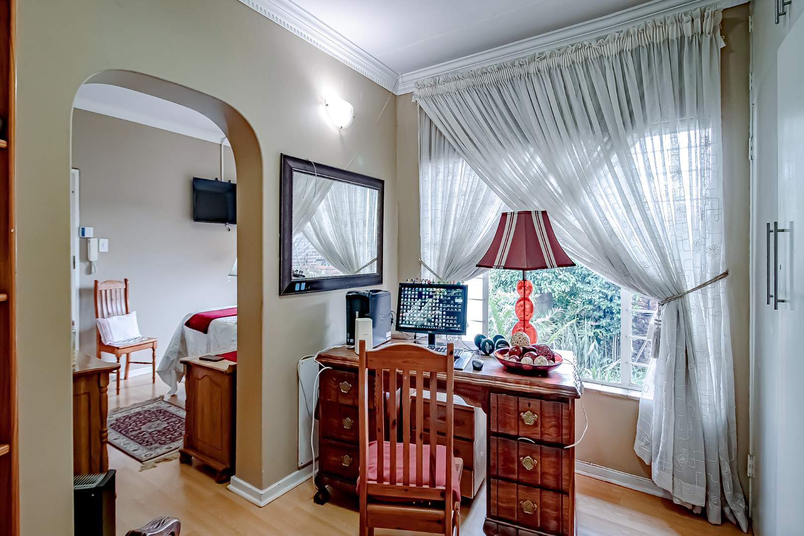 While there are no lock-up garages, the original garage has been converted into a functional office space with an additional toilet and provision for a future kitchenette, allowing for easy conversion into a flatlet if desired.