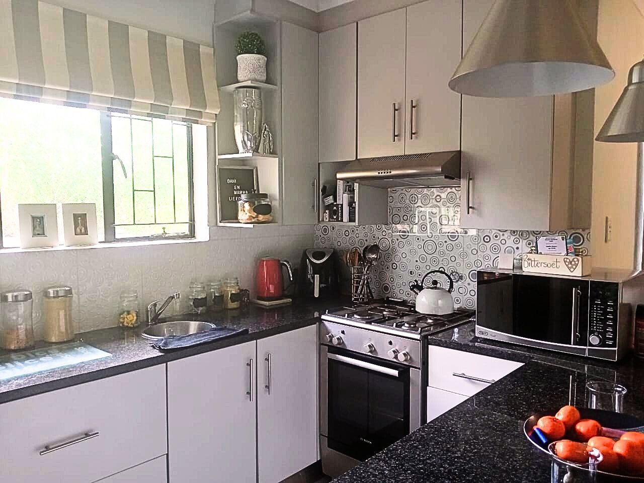 Is modern and includes 3 bedrooms, an enclosed patio with a built-in braai, and a private garden.