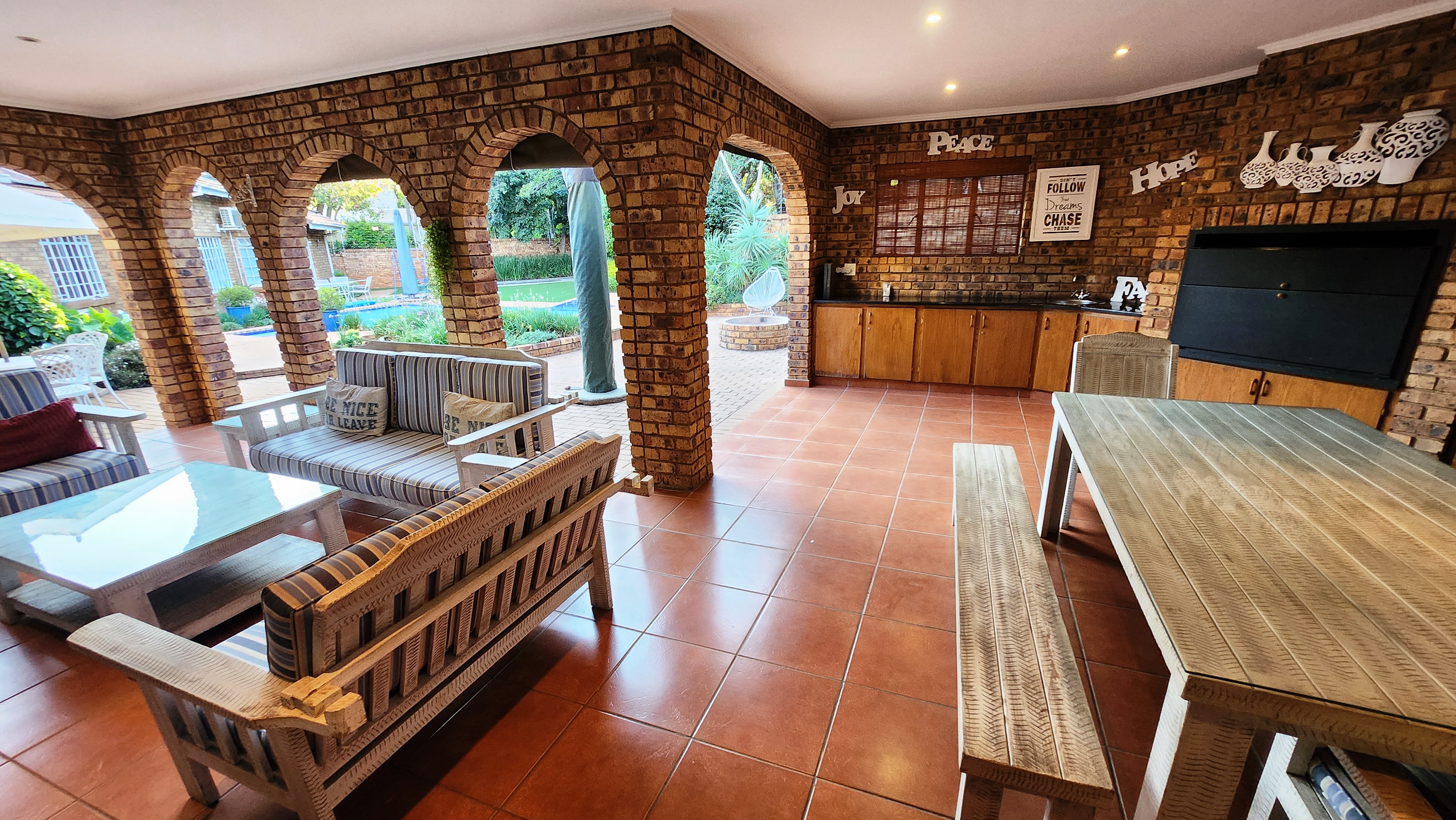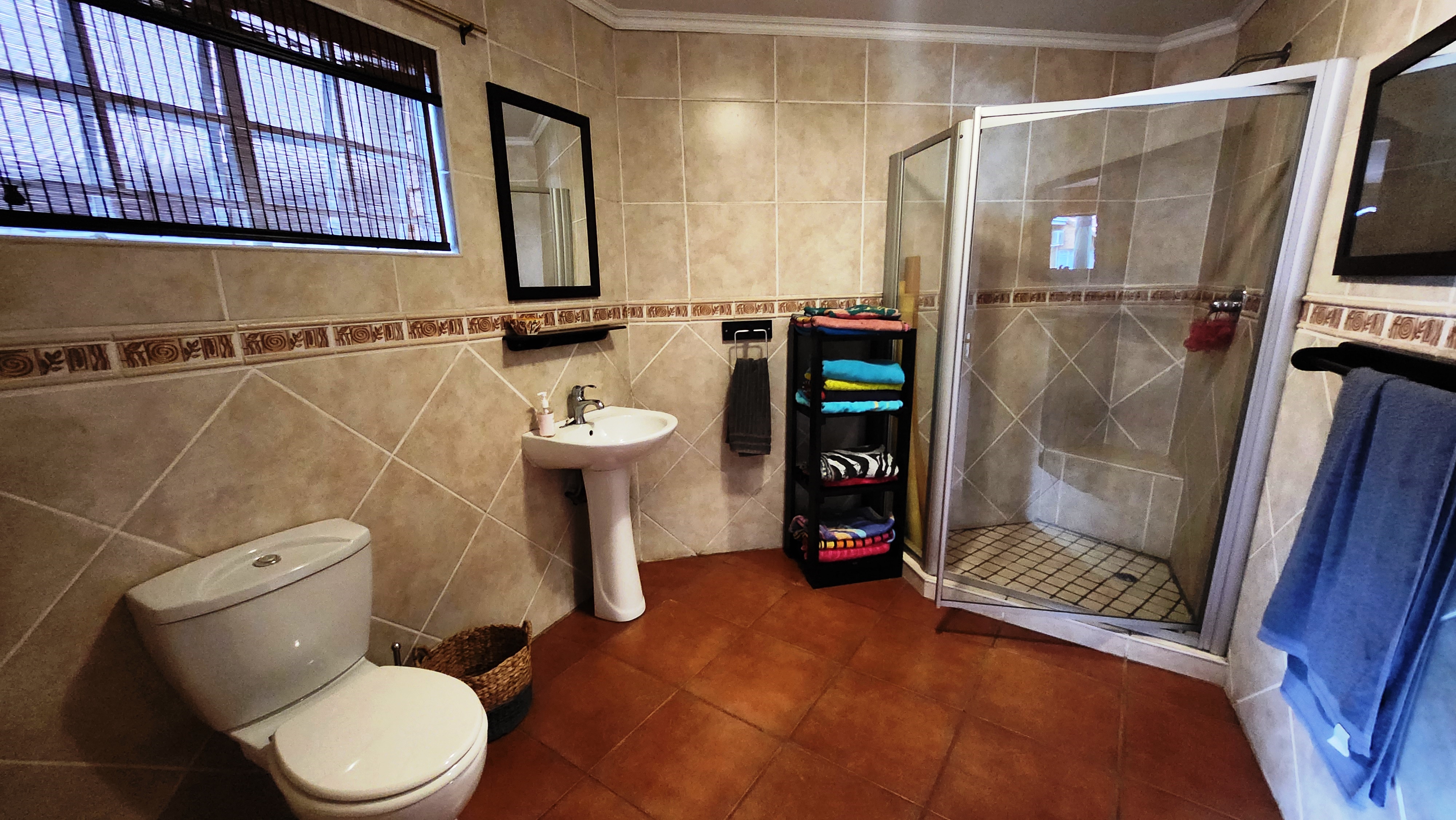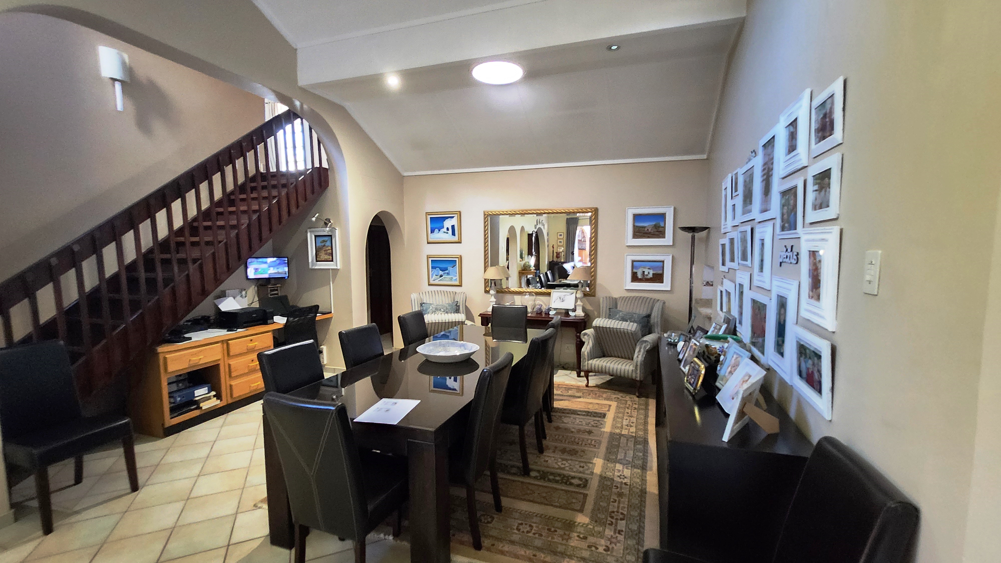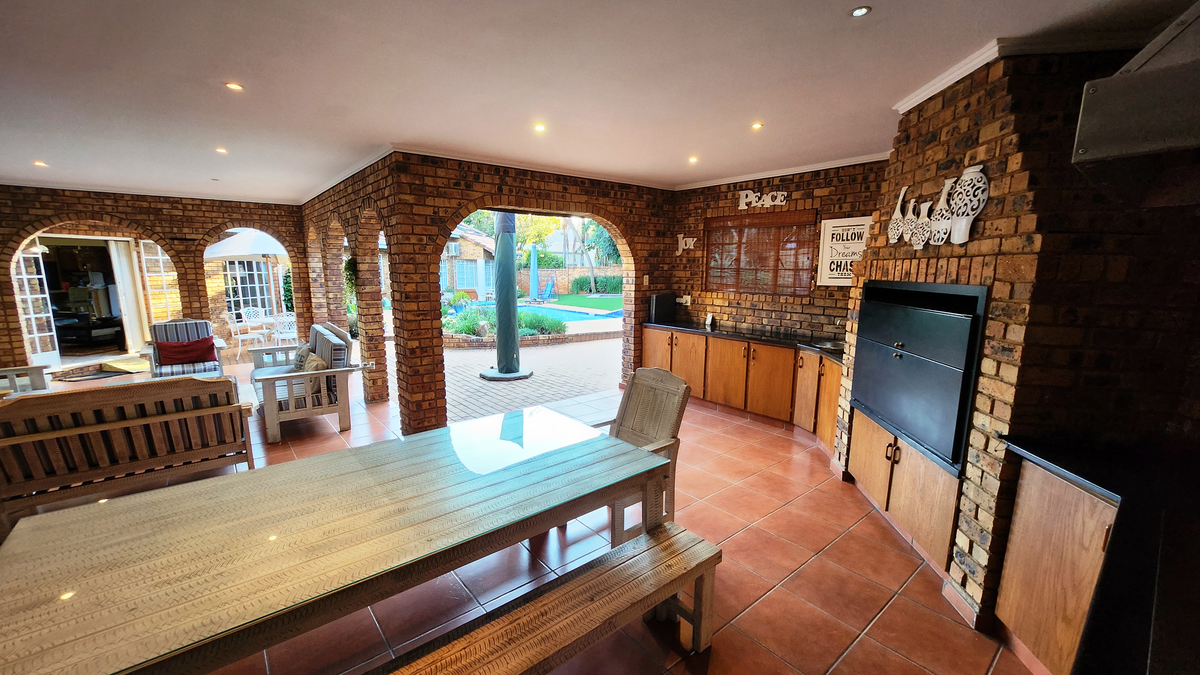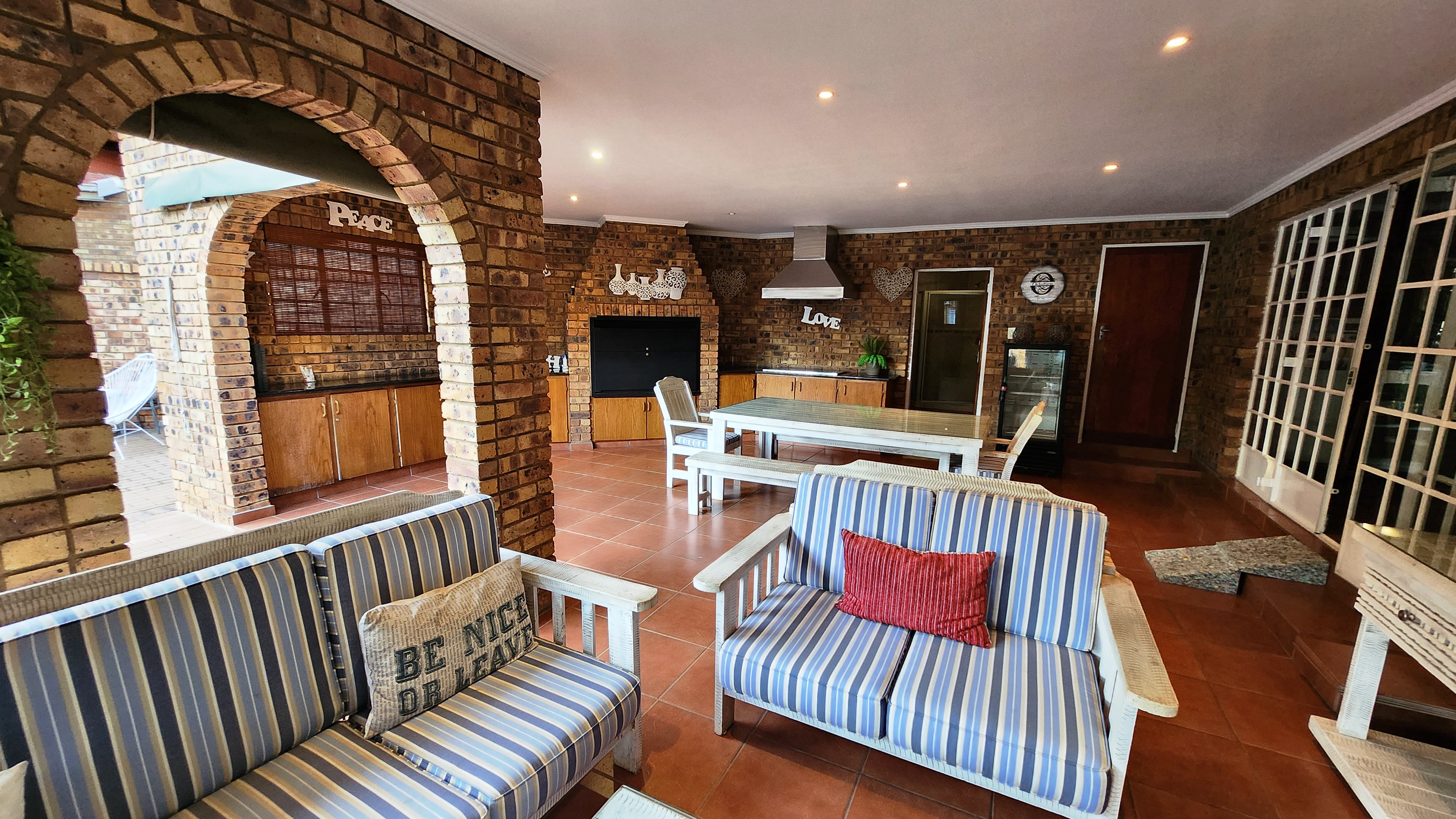 A standout feature of this property is its impressive power supply system, equipped with an 8 KVA and a 3 KVA inverter, along with 14 solar panels generating a total of 14 kW. Additional highlights include two gas geysers complementing the two electrical geysers, three air conditioners for optimal climate control, and underfloor heating in the bar area.