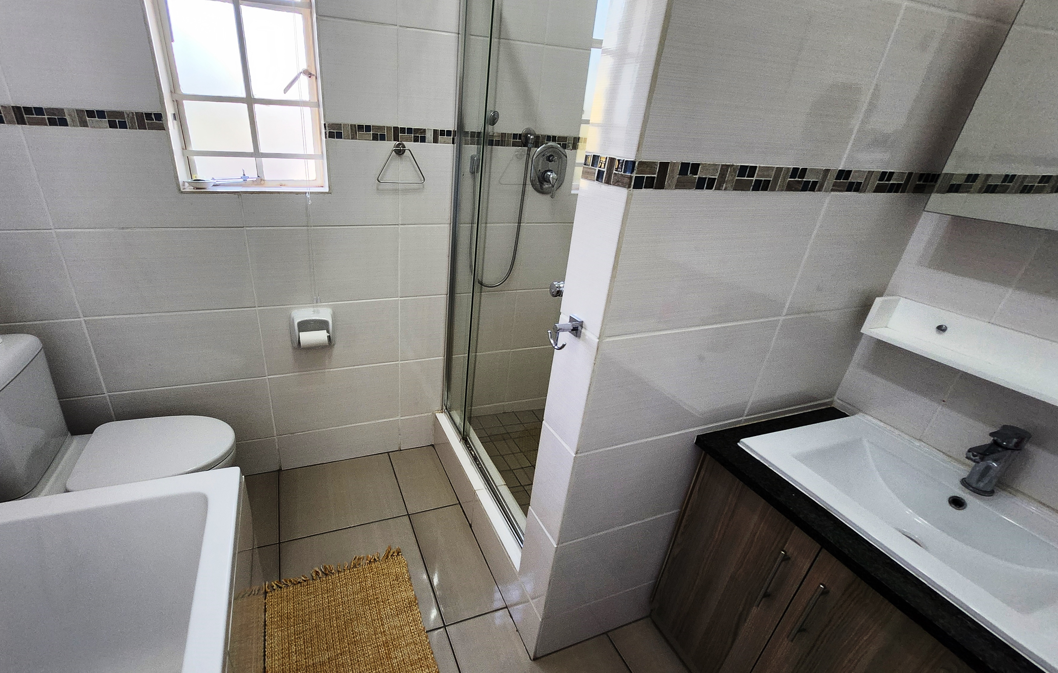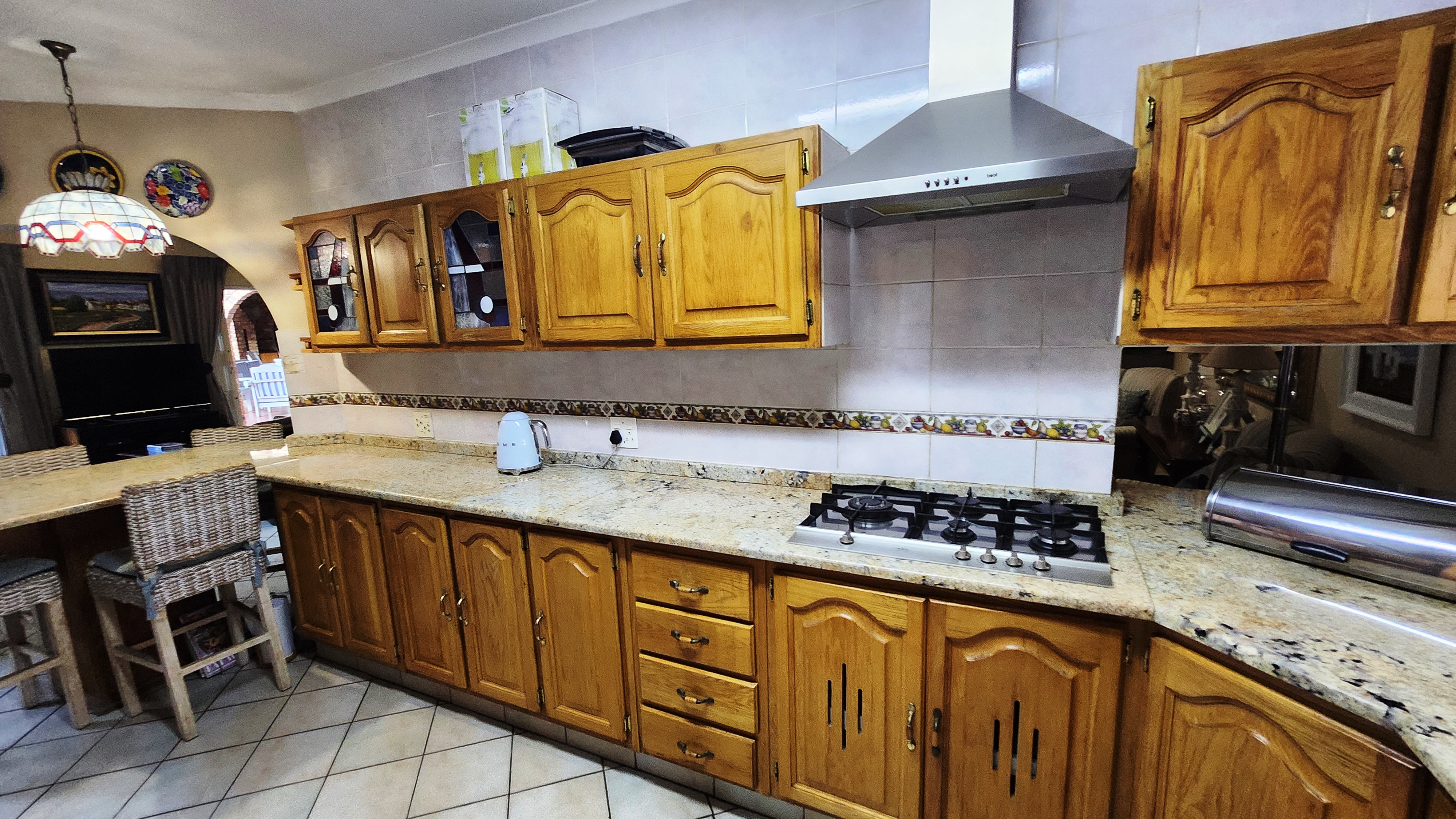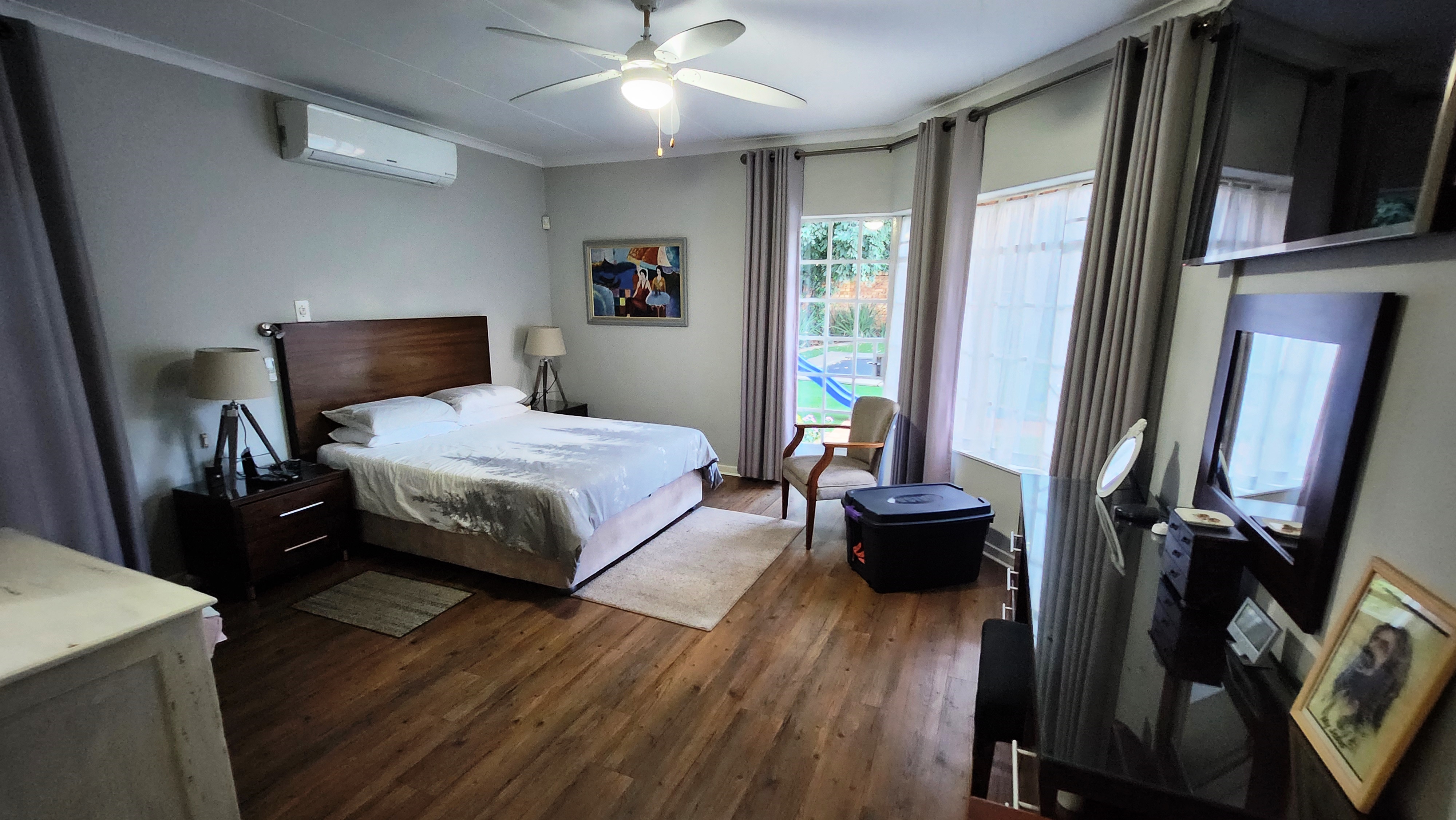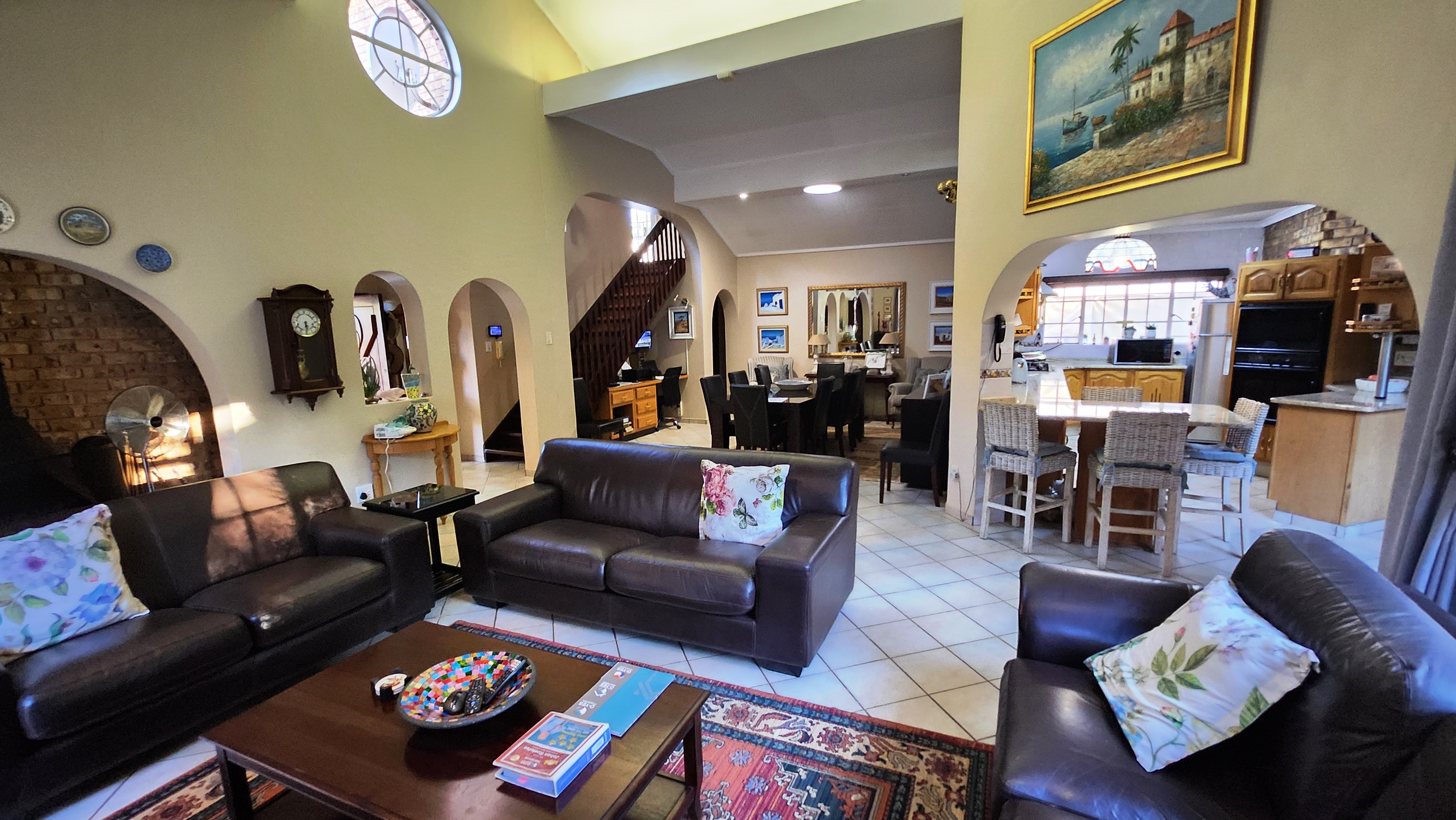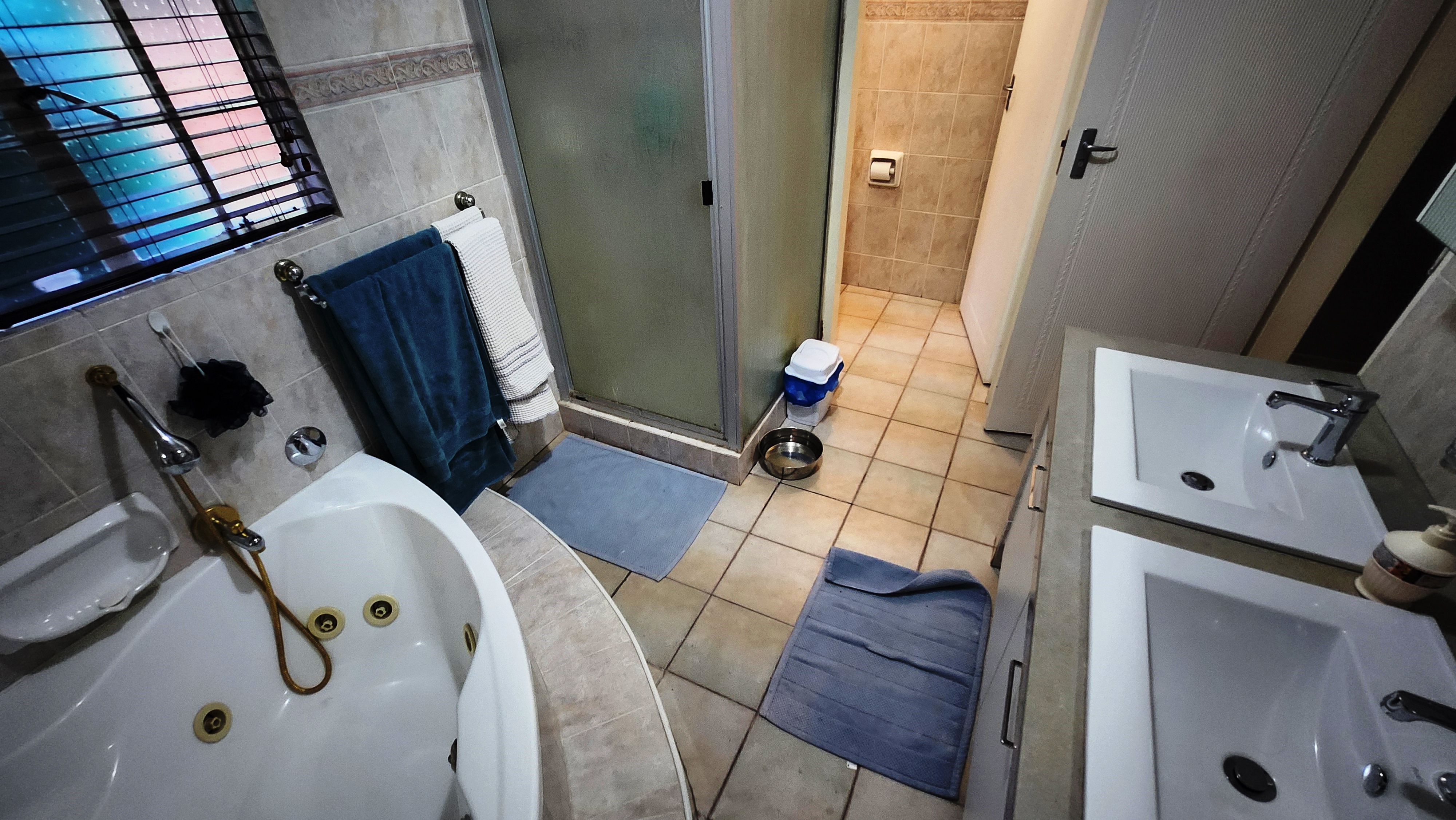 A standout feature of this property is its impressive power supply system, equipped with an 8 KVA and a 3 KVA inverter, along with 14 solar panels generating a total of 14 kW. Additional highlights include two gas geysers complementing the two electrical geysers, three air conditioners for optimal climate control, and underfloor heating in the bar area.