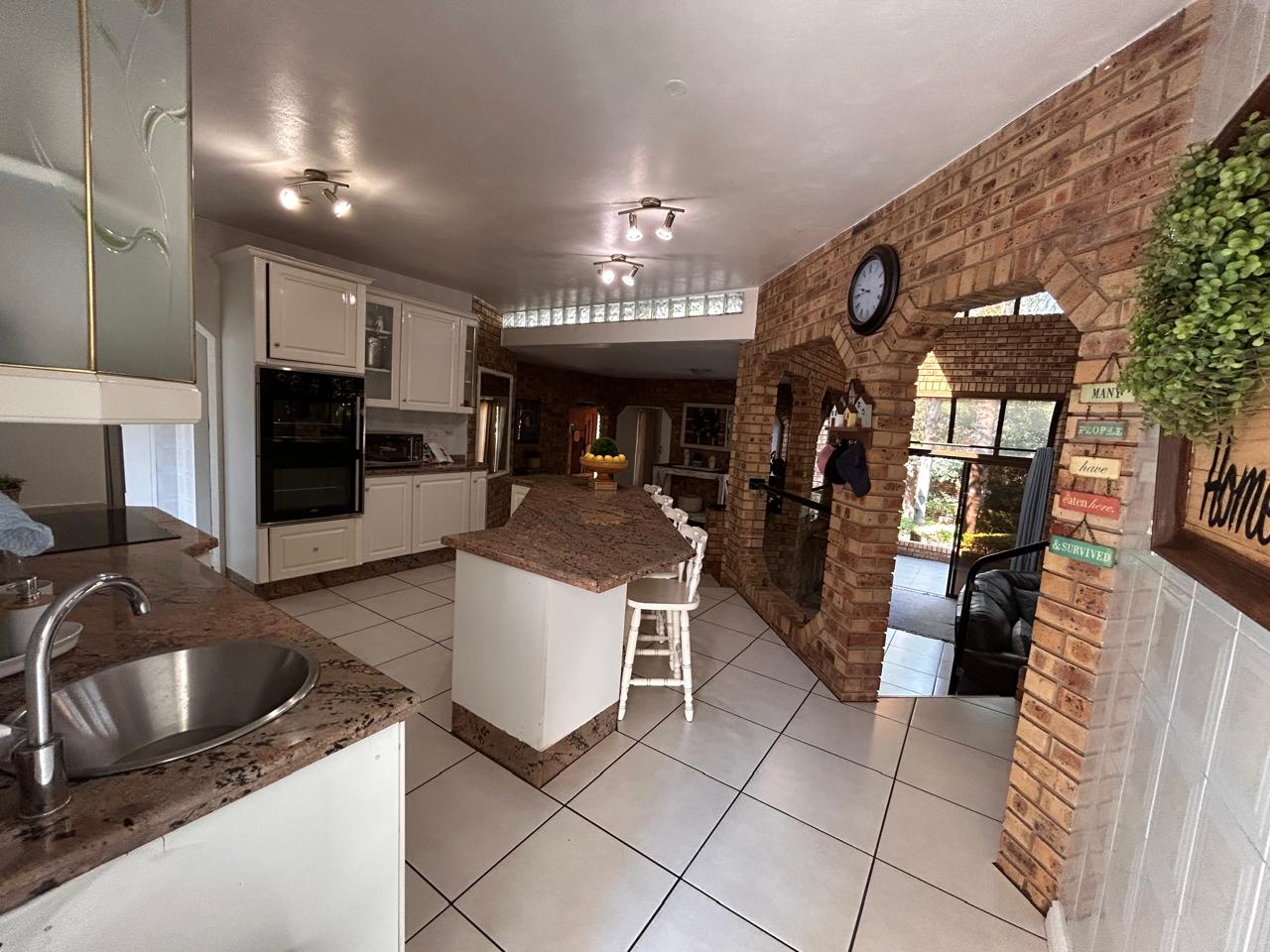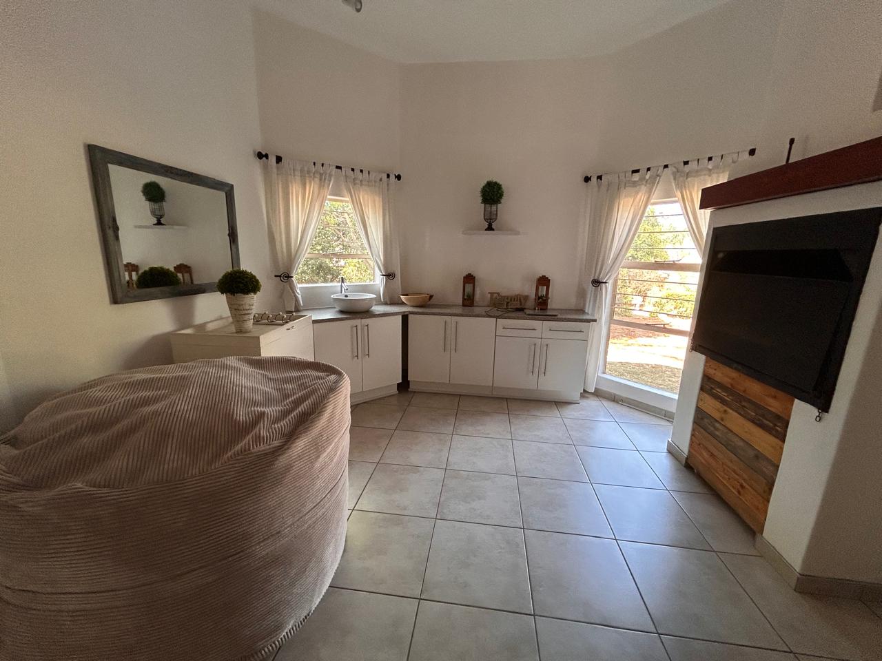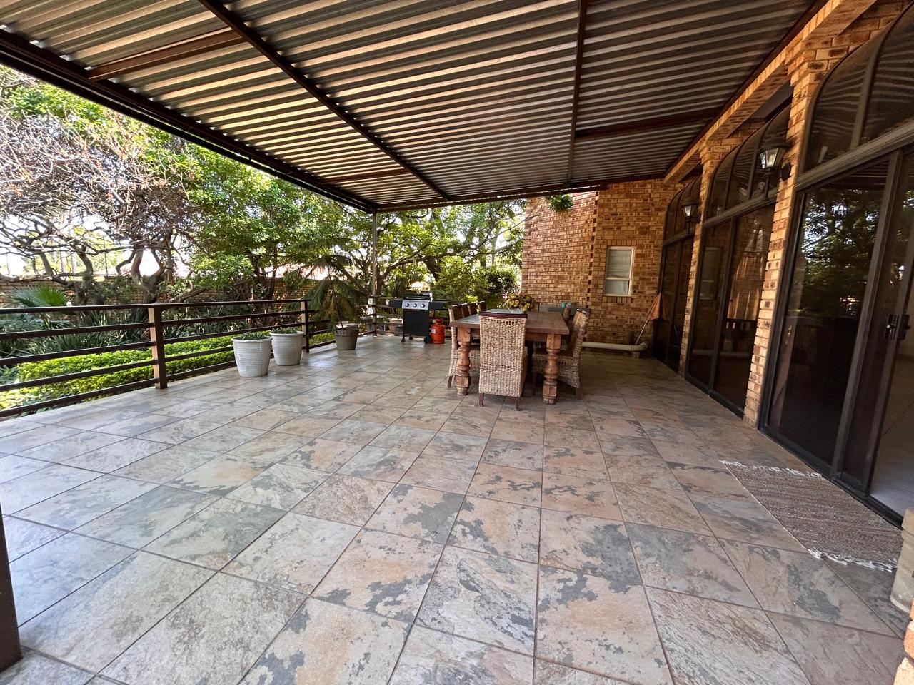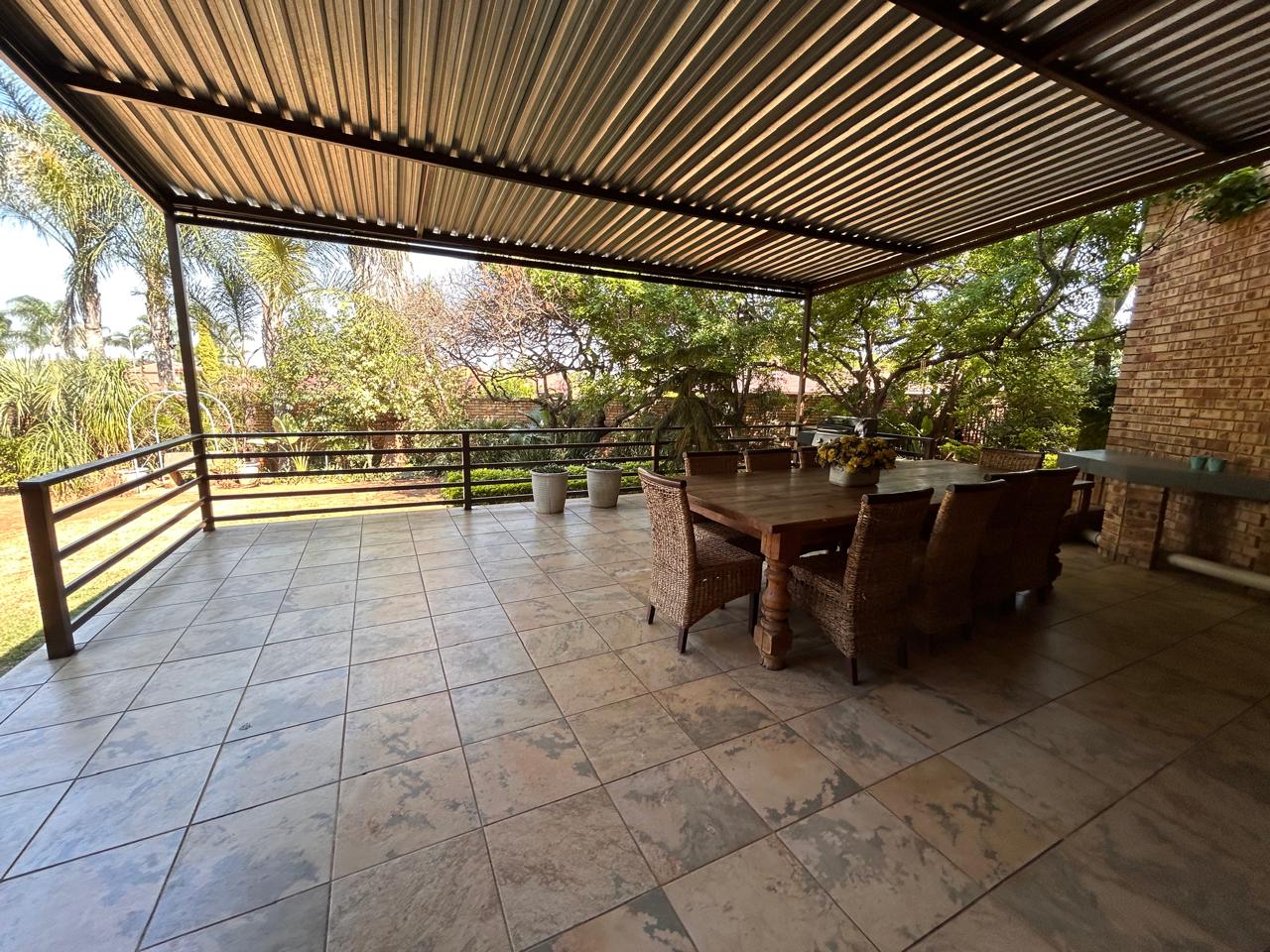 Ideal for entertaining, the entertainment area features a built-in braai and kitchenette, seamlessly flowing onto the patio. The large garden is perfect for children to play and explore.