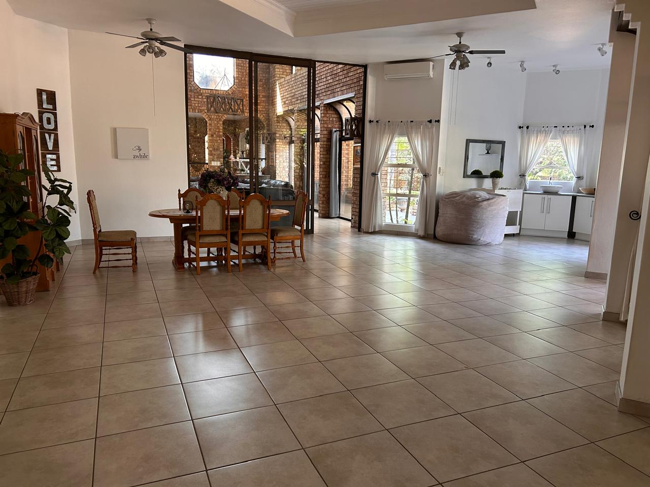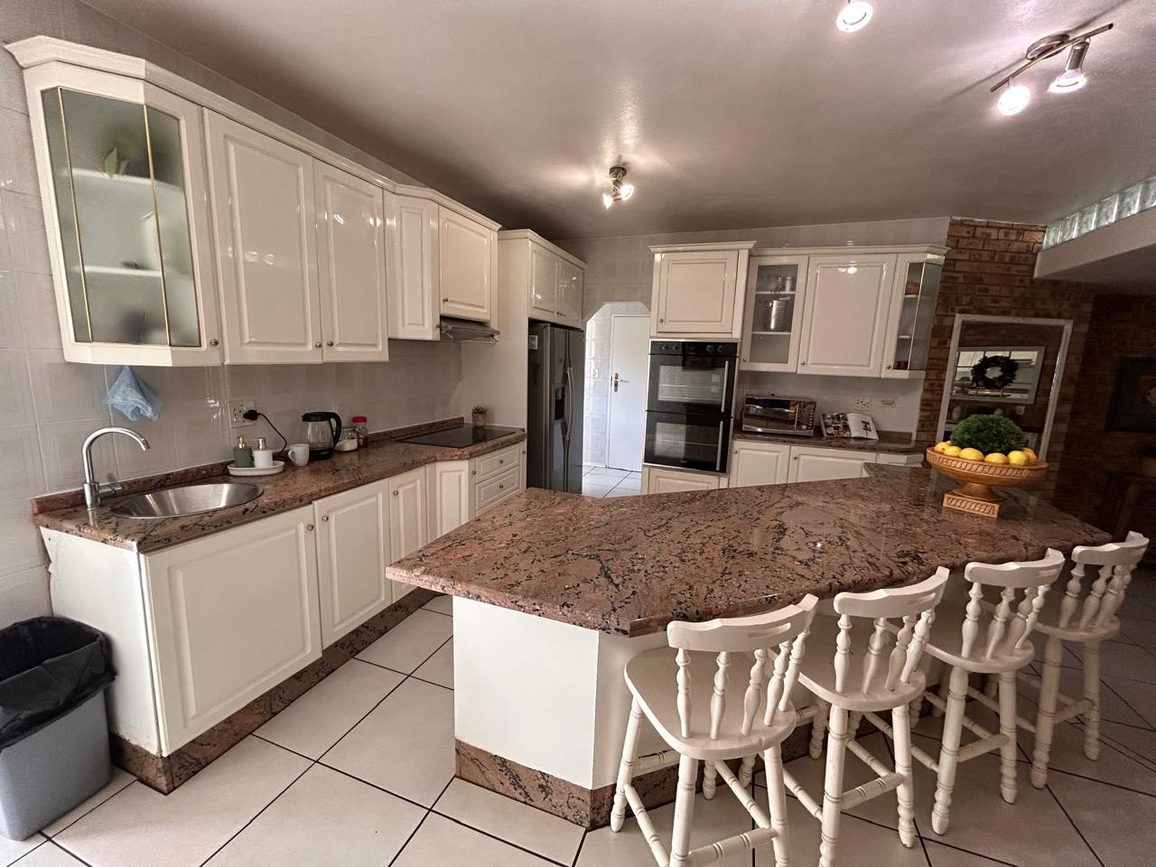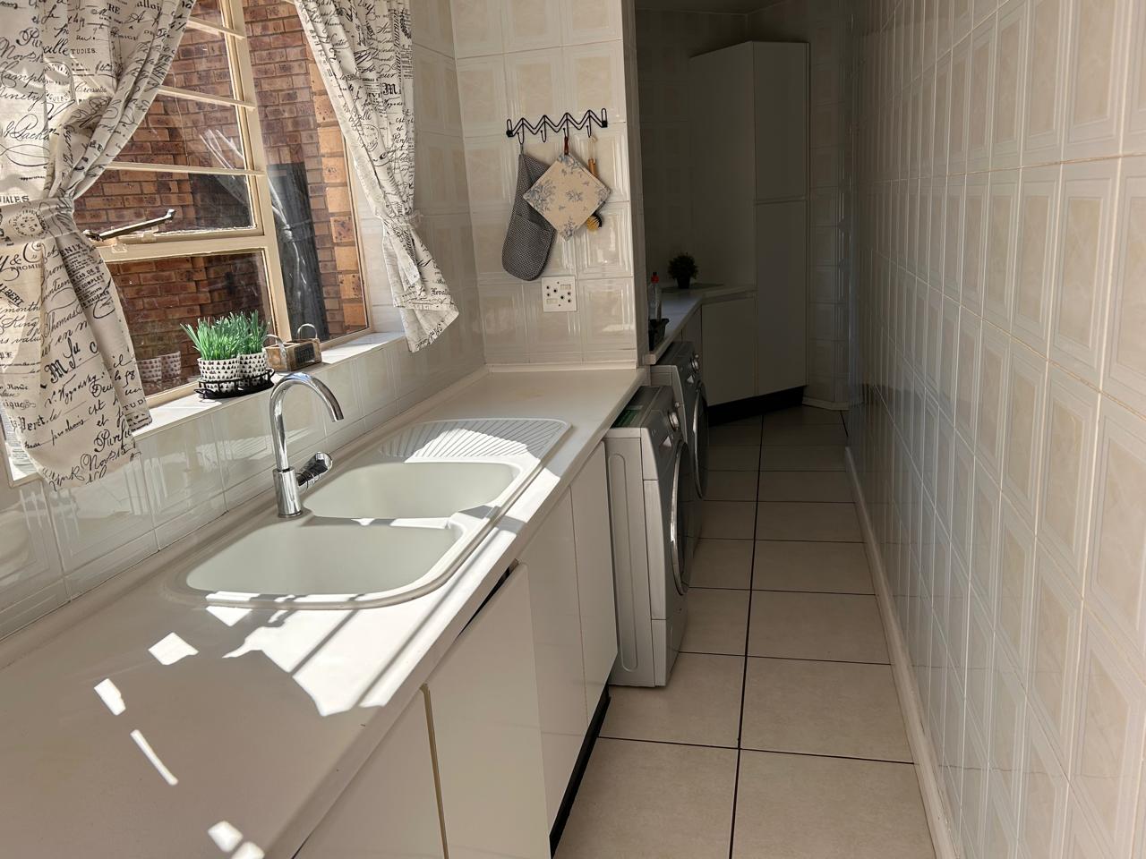 Ideal for entertaining, the entertainment area features a built-in braai and kitchenette, seamlessly flowing onto the patio. The large garden is perfect for children to play and explore.