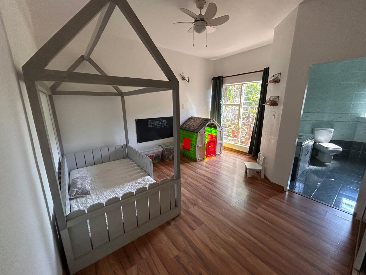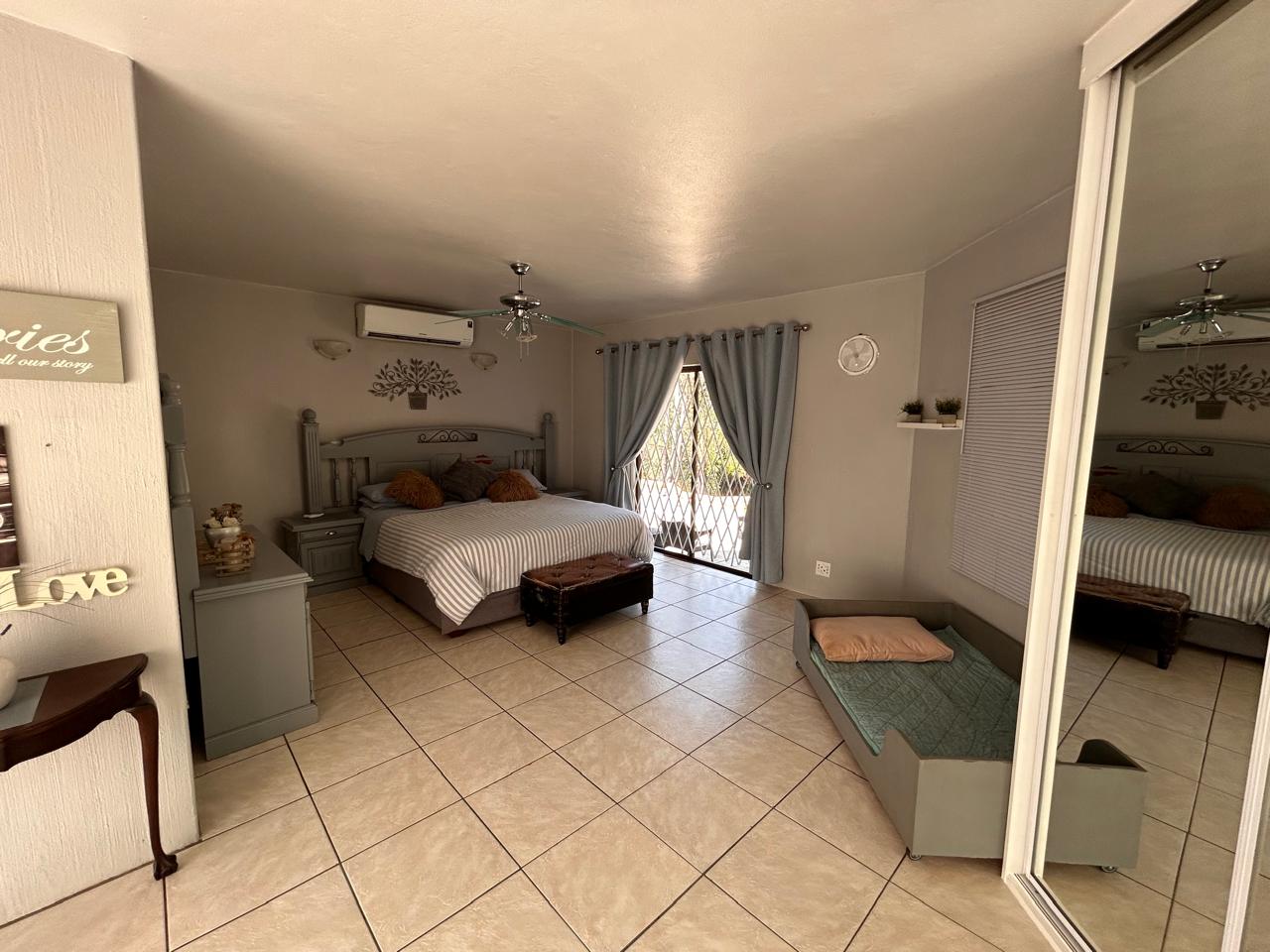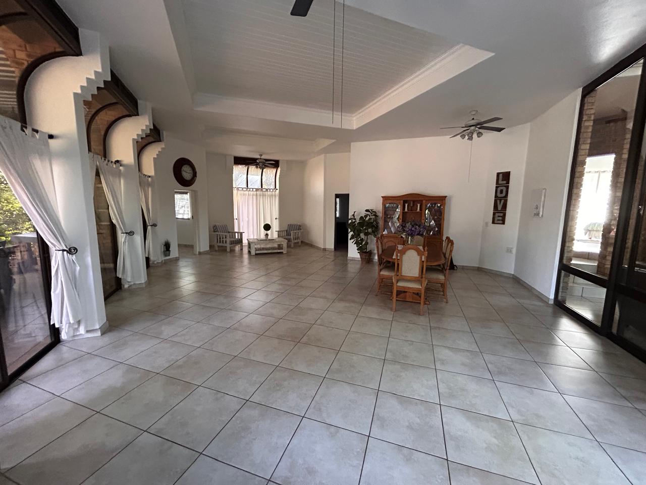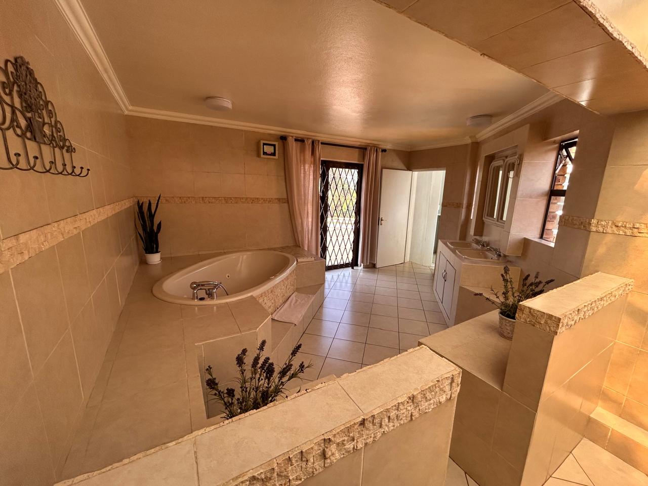Ideal for entertaining, the entertainment area features a built-in braai and kitchenette, seamlessly flowing onto the patio. The large garden is perfect for children to play and explore.