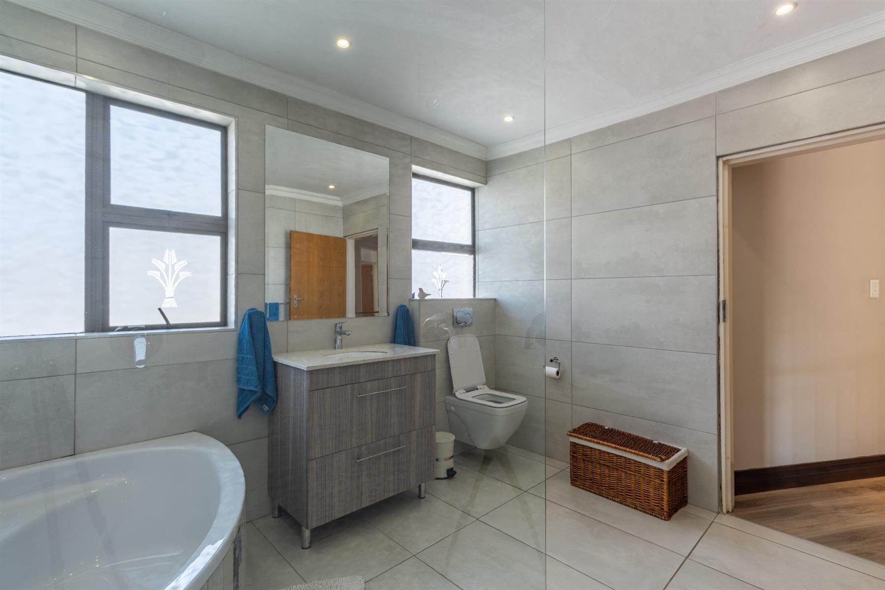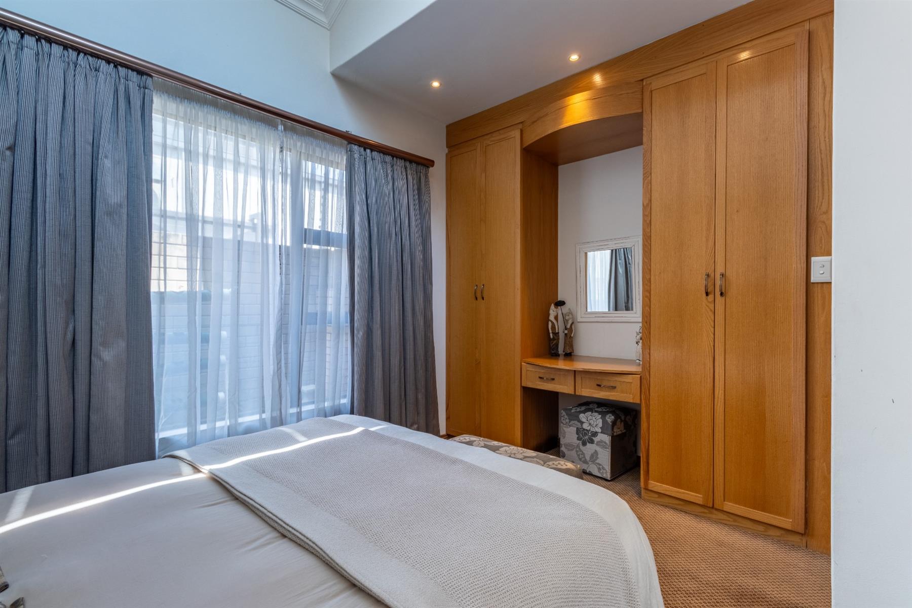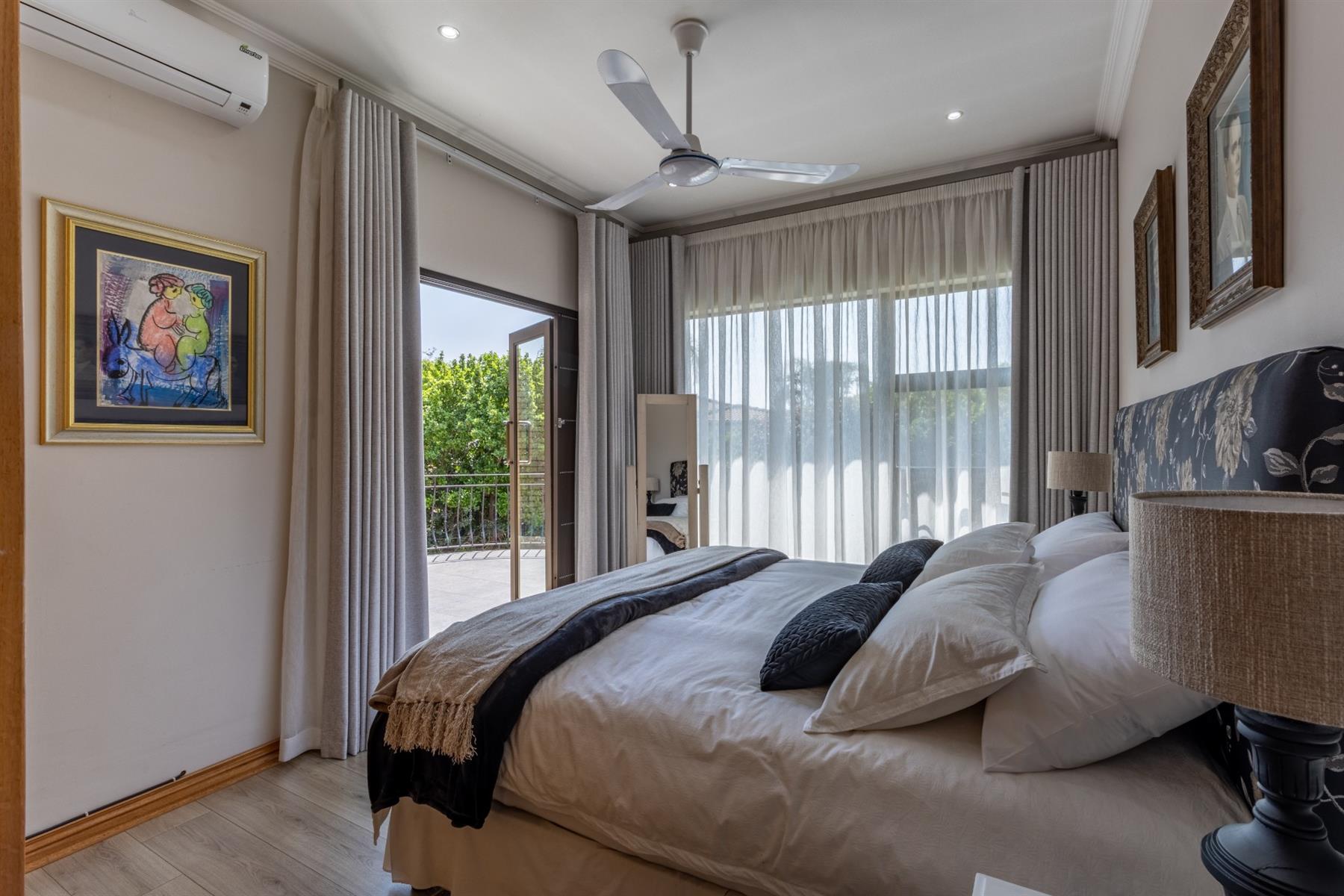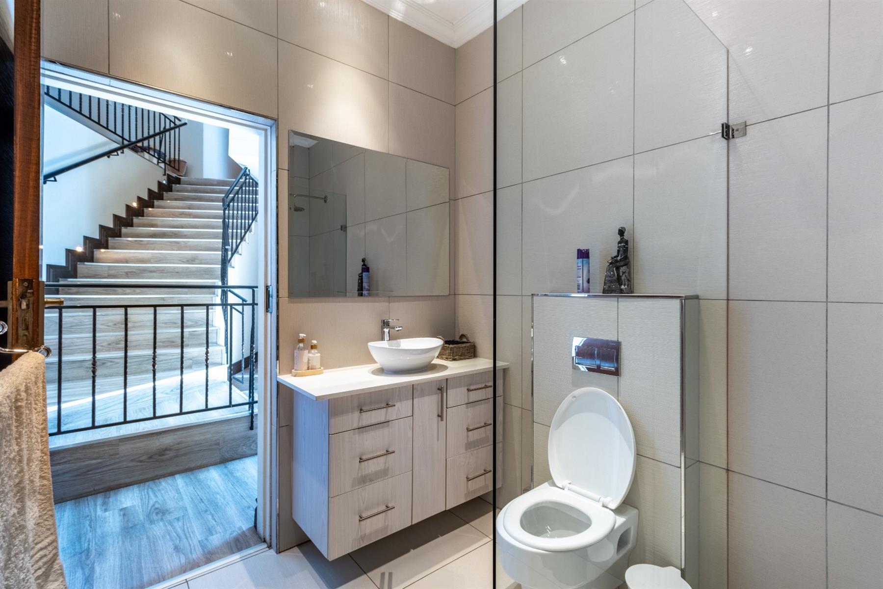 The main house boasts four well-appointed bedrooms, each with built-in cupboards and stylish finishes. The main bedroom includes gas fireplace, walk in closet and en-suite bathroom with a shower, bath, double basin, and toilet, while the additional bathrooms are tastefully tiled with porcelain tiles and quality fittings. The bedrooms are further enhanced with laminated flooring, air-conditioning, downlights, and Rhino ceilings, ensuring both style and practicality.