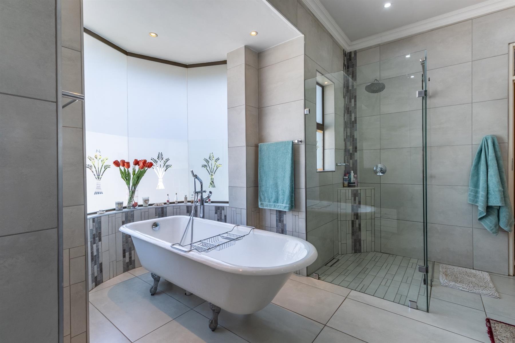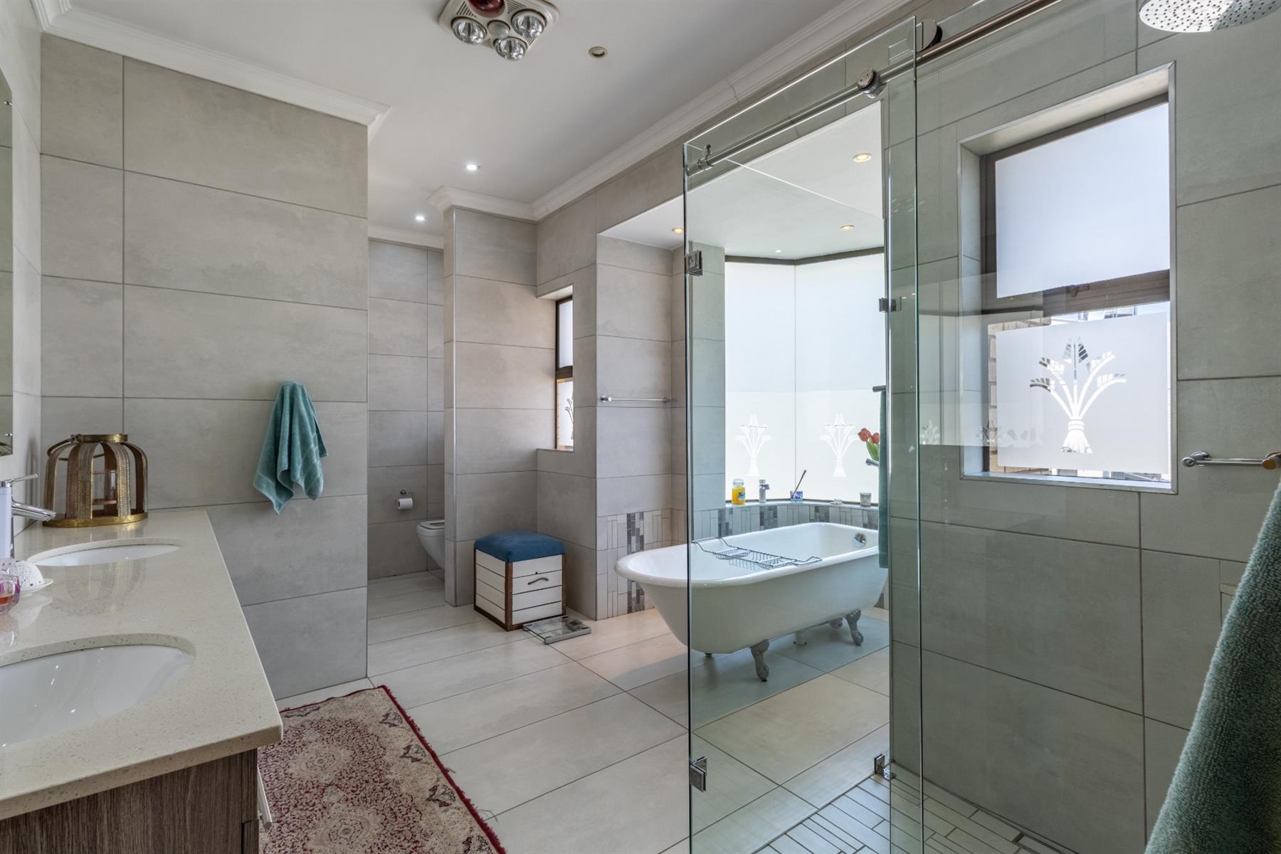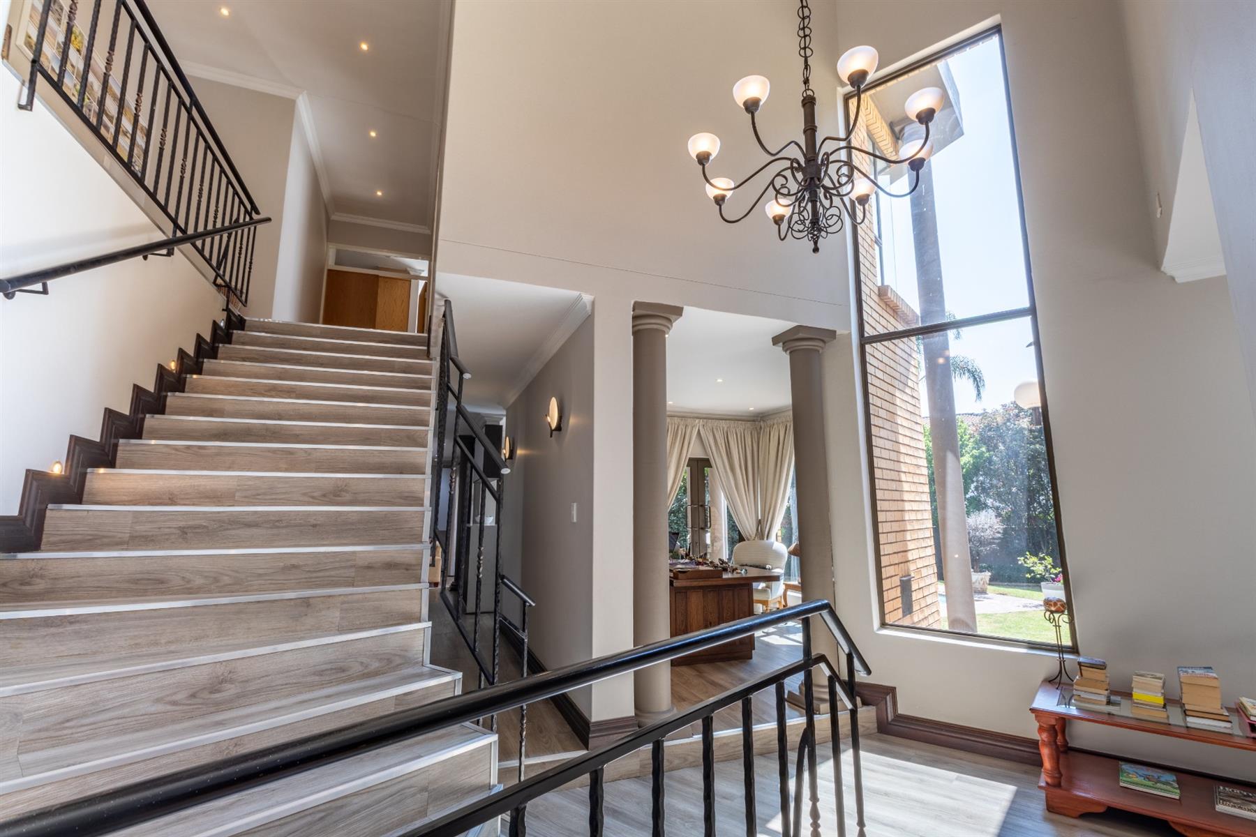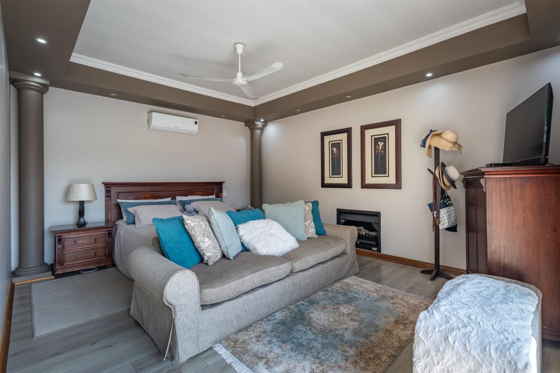 The home is further equipped with a full solar system, including a solar geyser, six solar panels, two 10kW inverters, and 10kW batteries, ensuring energy efficiency and cost savings. Two 10,000-liter water tanks, a linked generator, and double automated garages provide additional functionality and convenience.