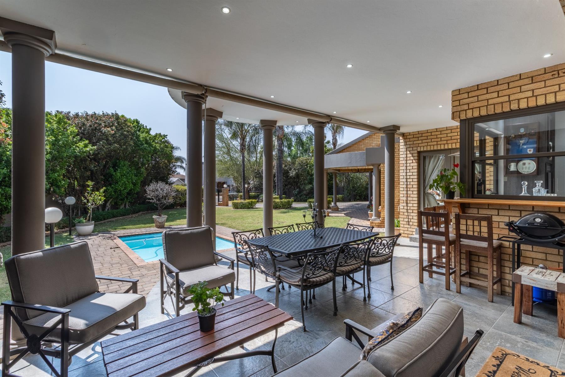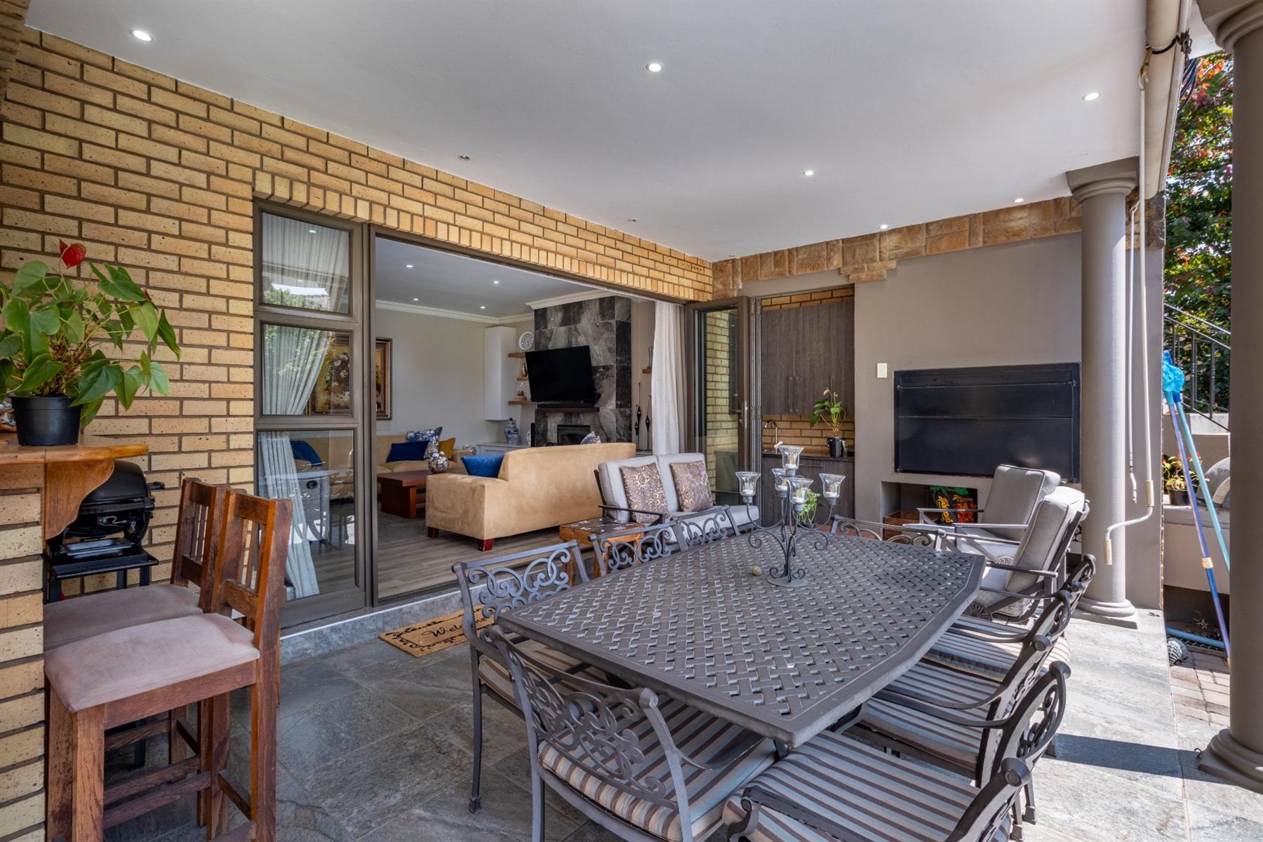 Outdoor living is a highlight of this home. A spacious patio with a built-in braai and pizza oven overlooks the sparkling swimming pool, making it perfect for family gatherings or hosting guests.