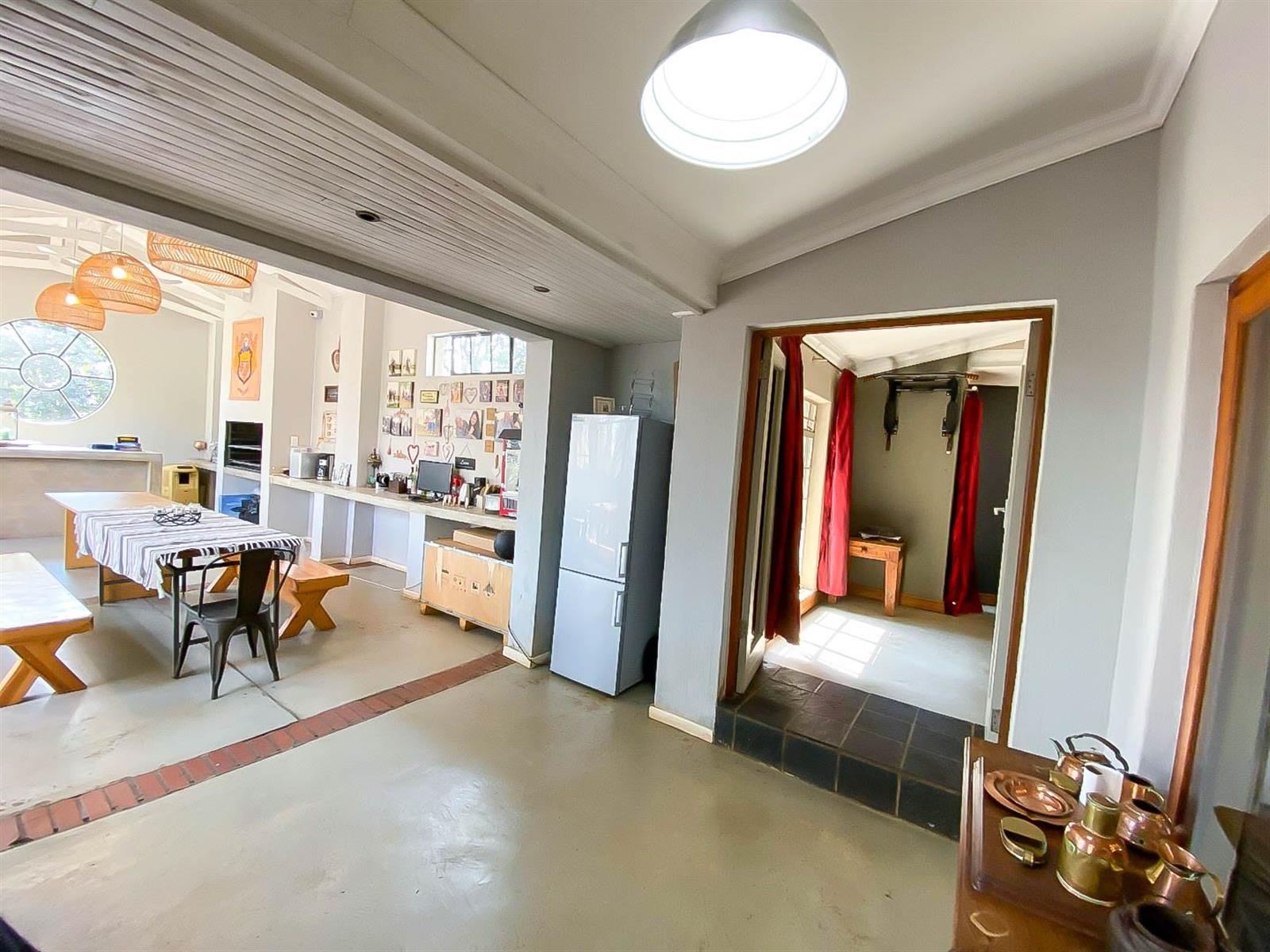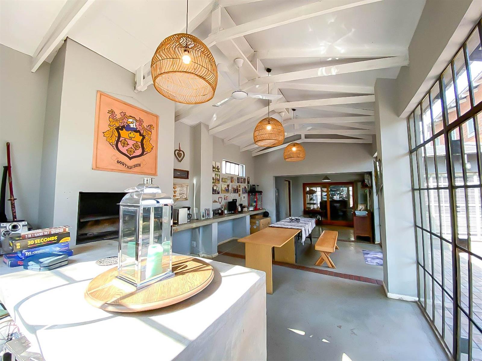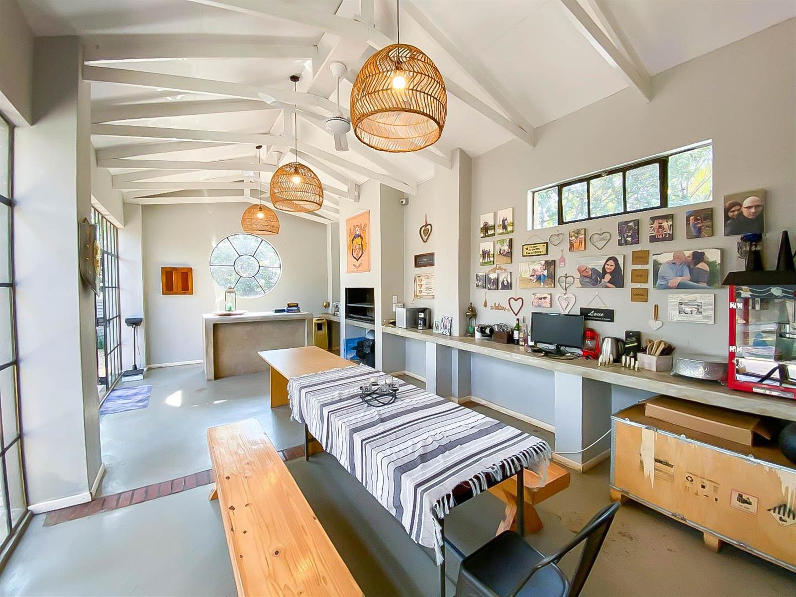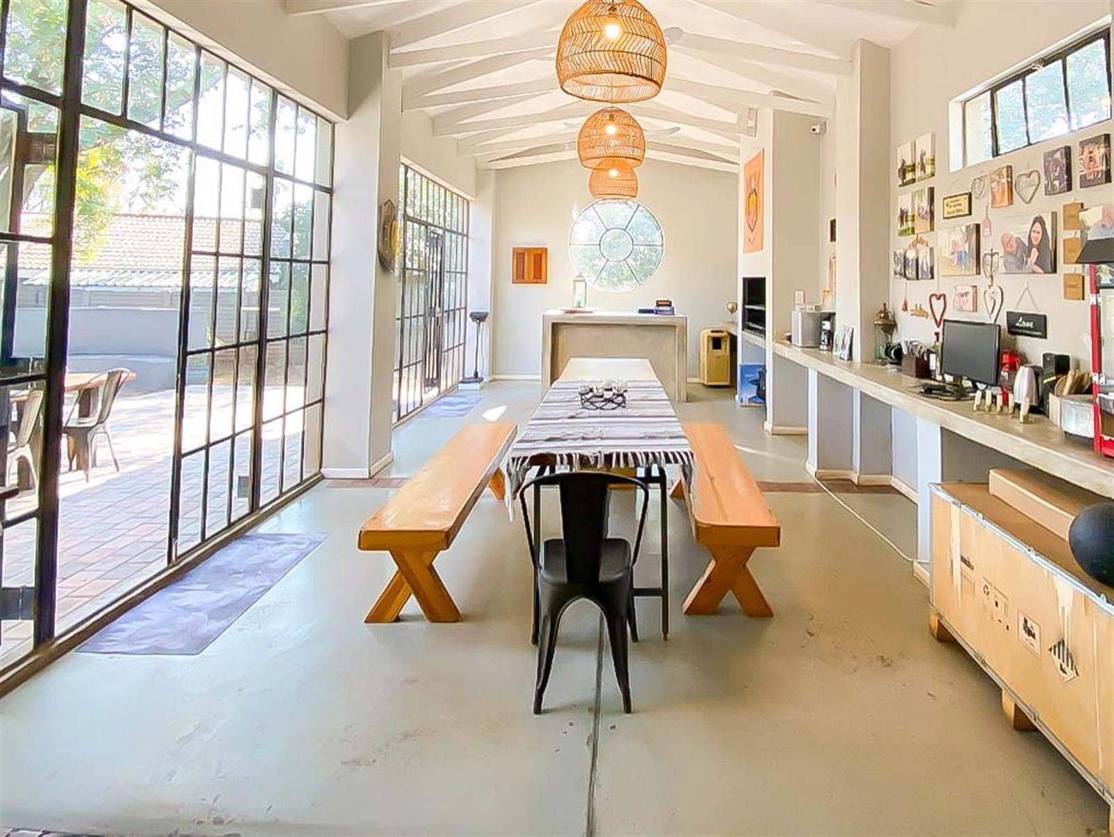 The enclosed entertainment area opens to the spacious garden, swimming pool, and boma,