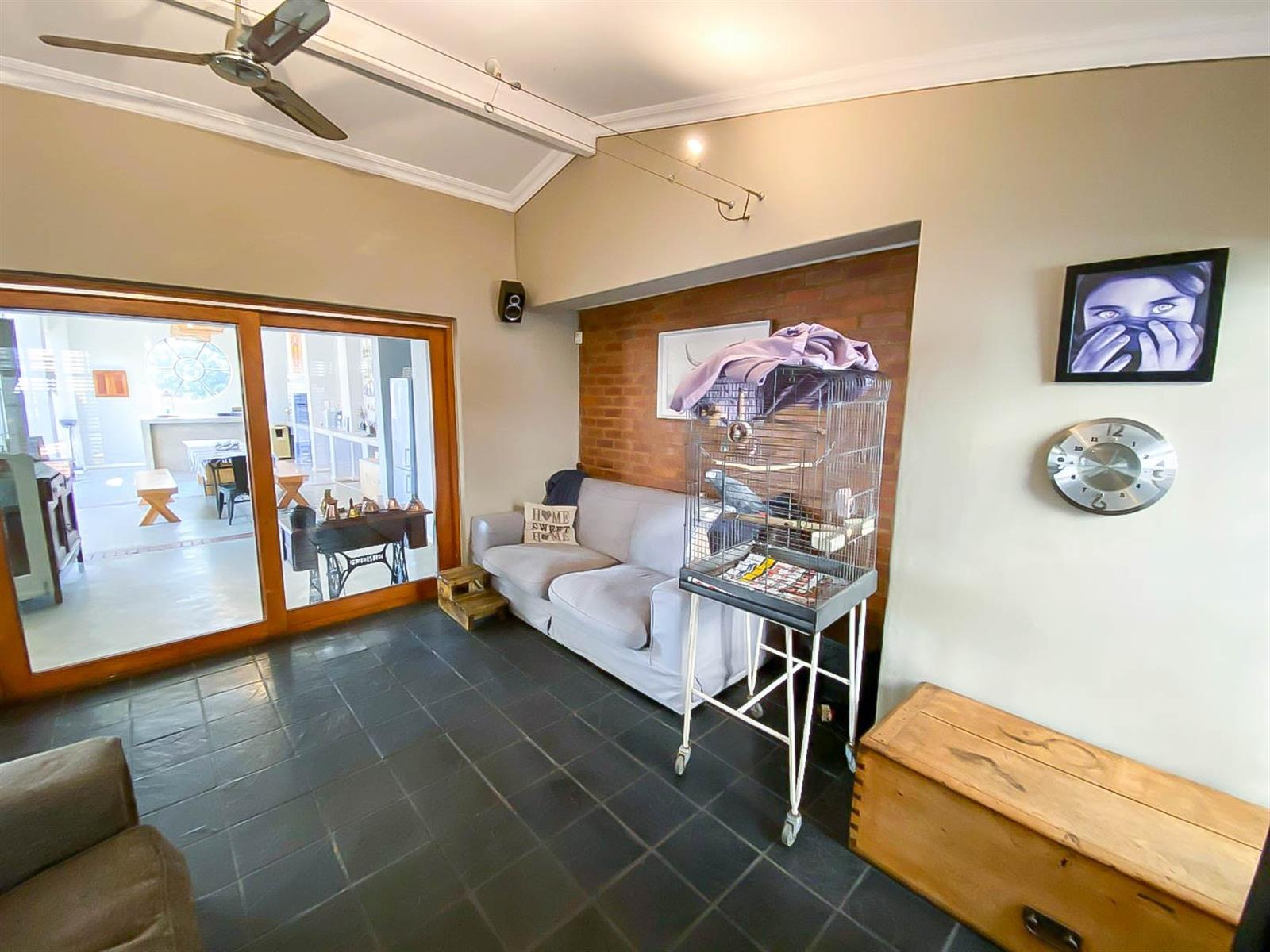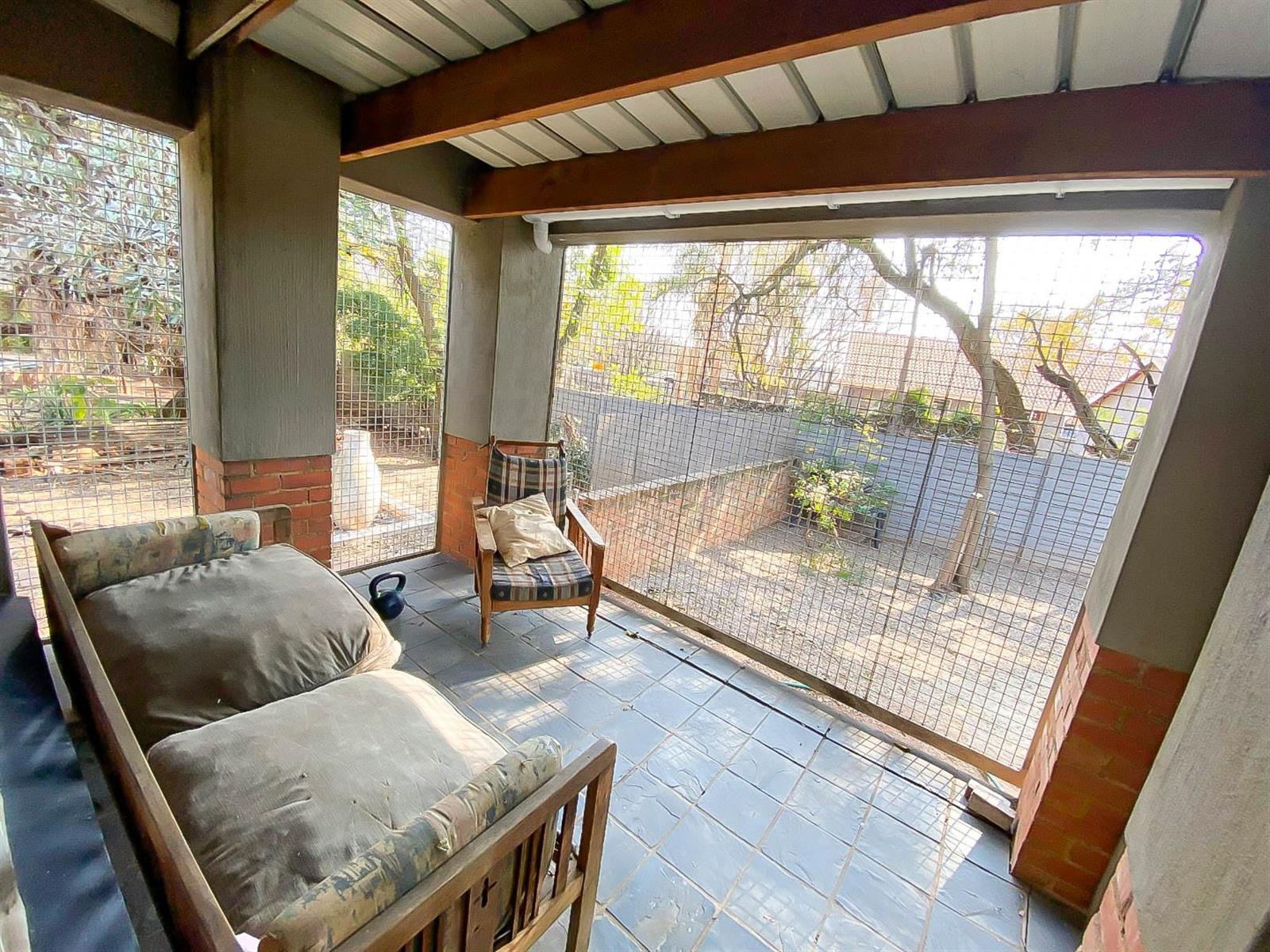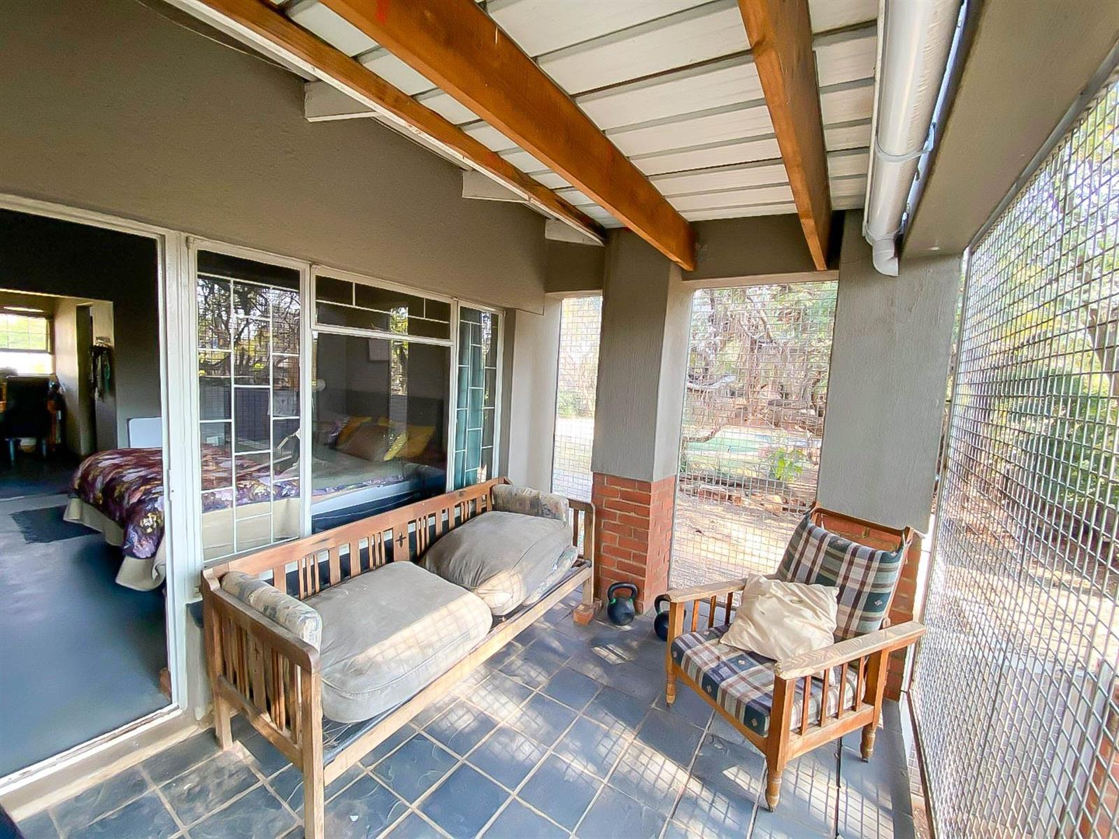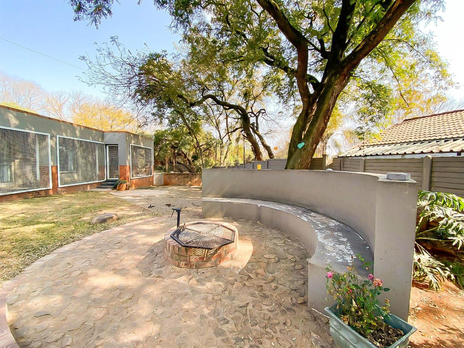 The enclosed entertainment area opens to the spacious garden, swimming pool, and boma,