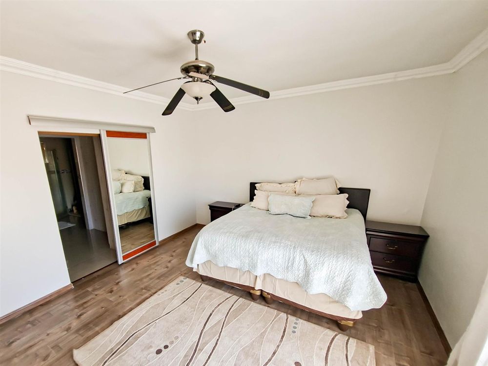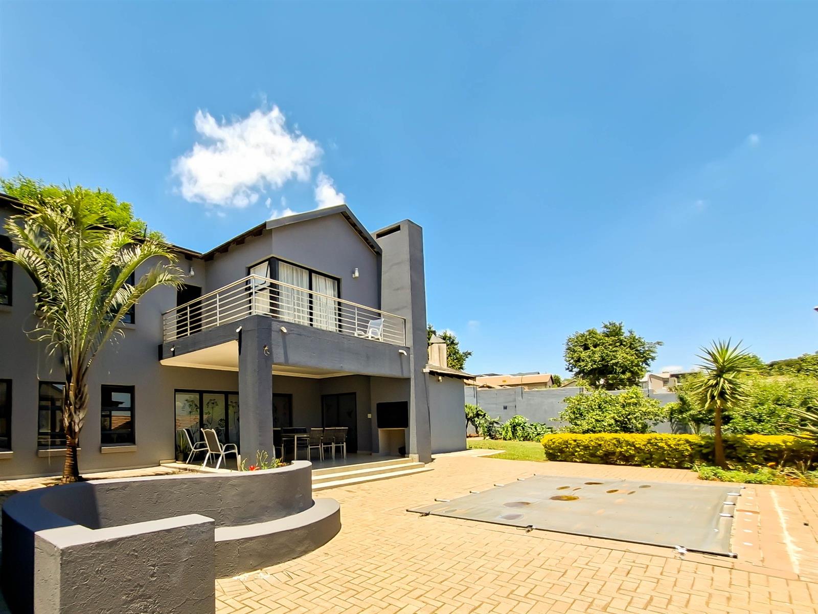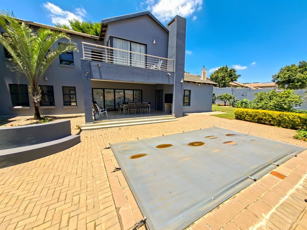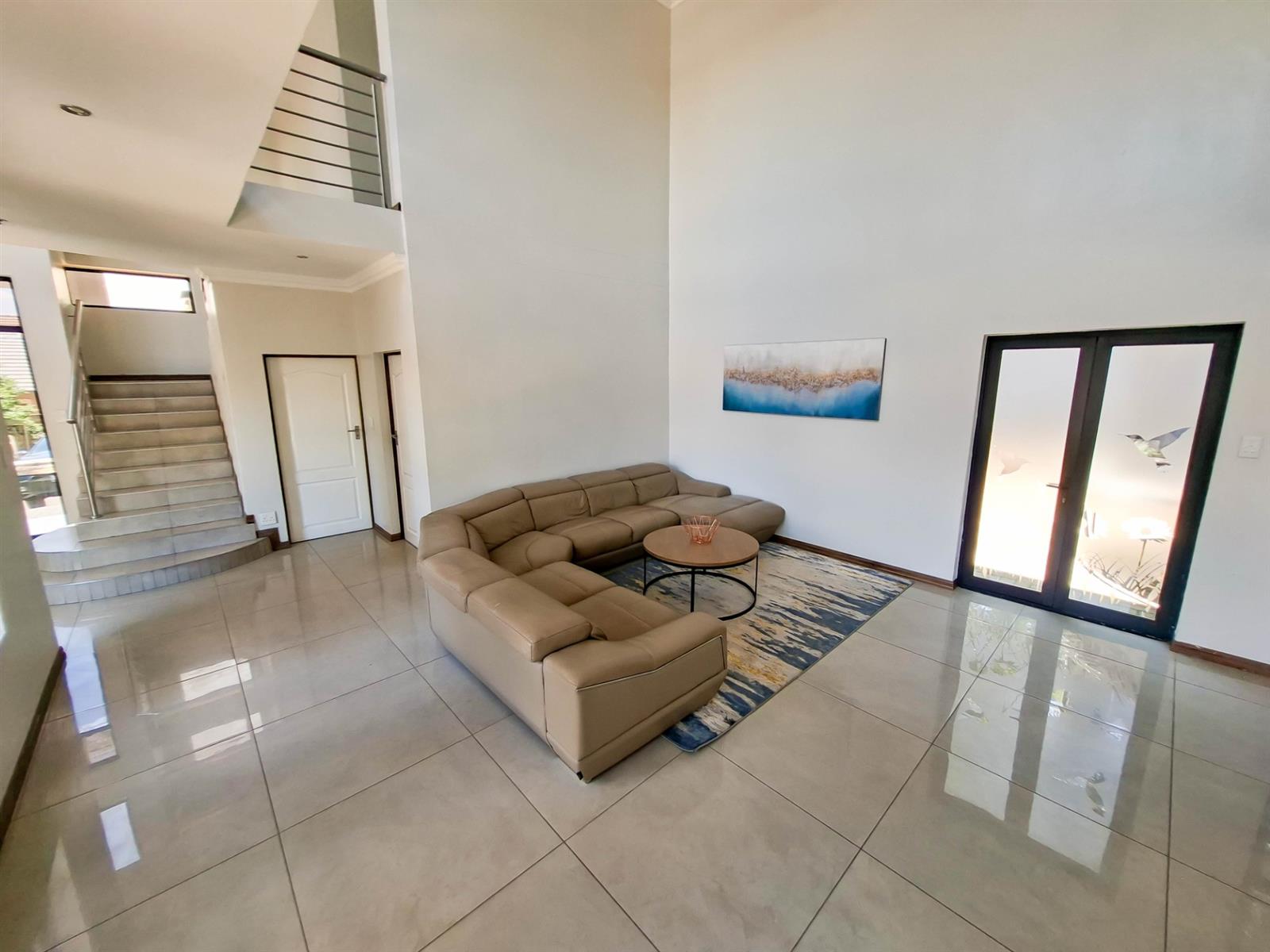 Both living areas open to the covered patio and braai area overlooking a large pool.