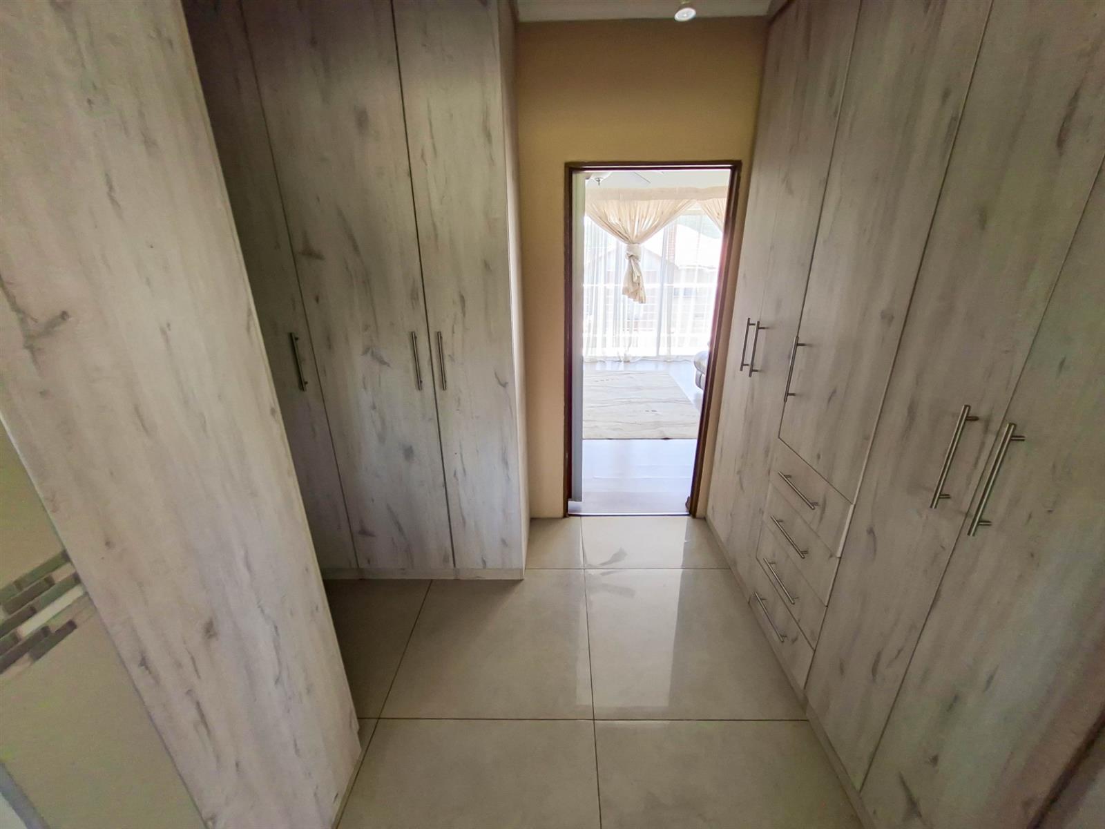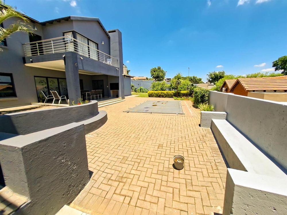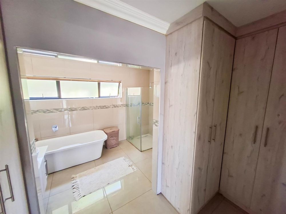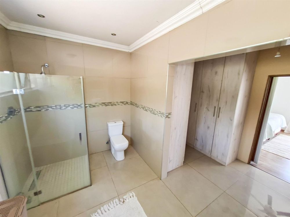 Both living areas open to the covered patio and braai area overlooking a large pool.