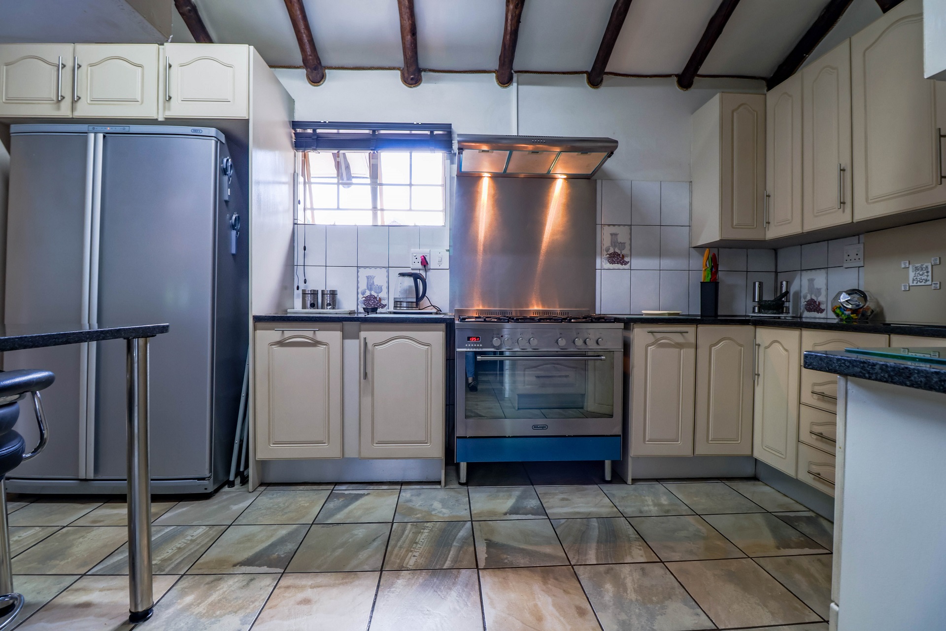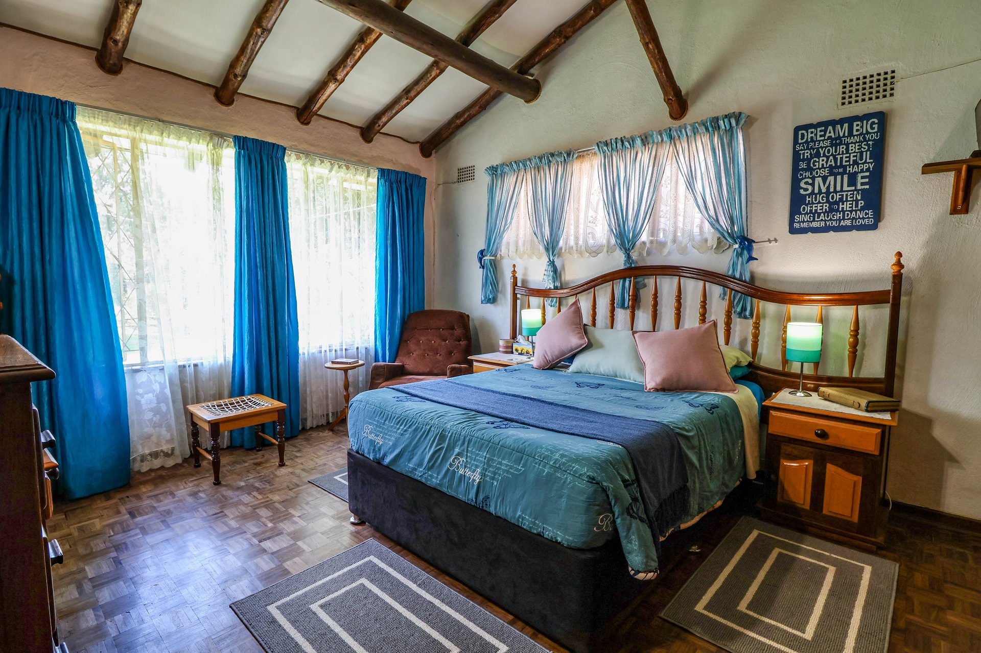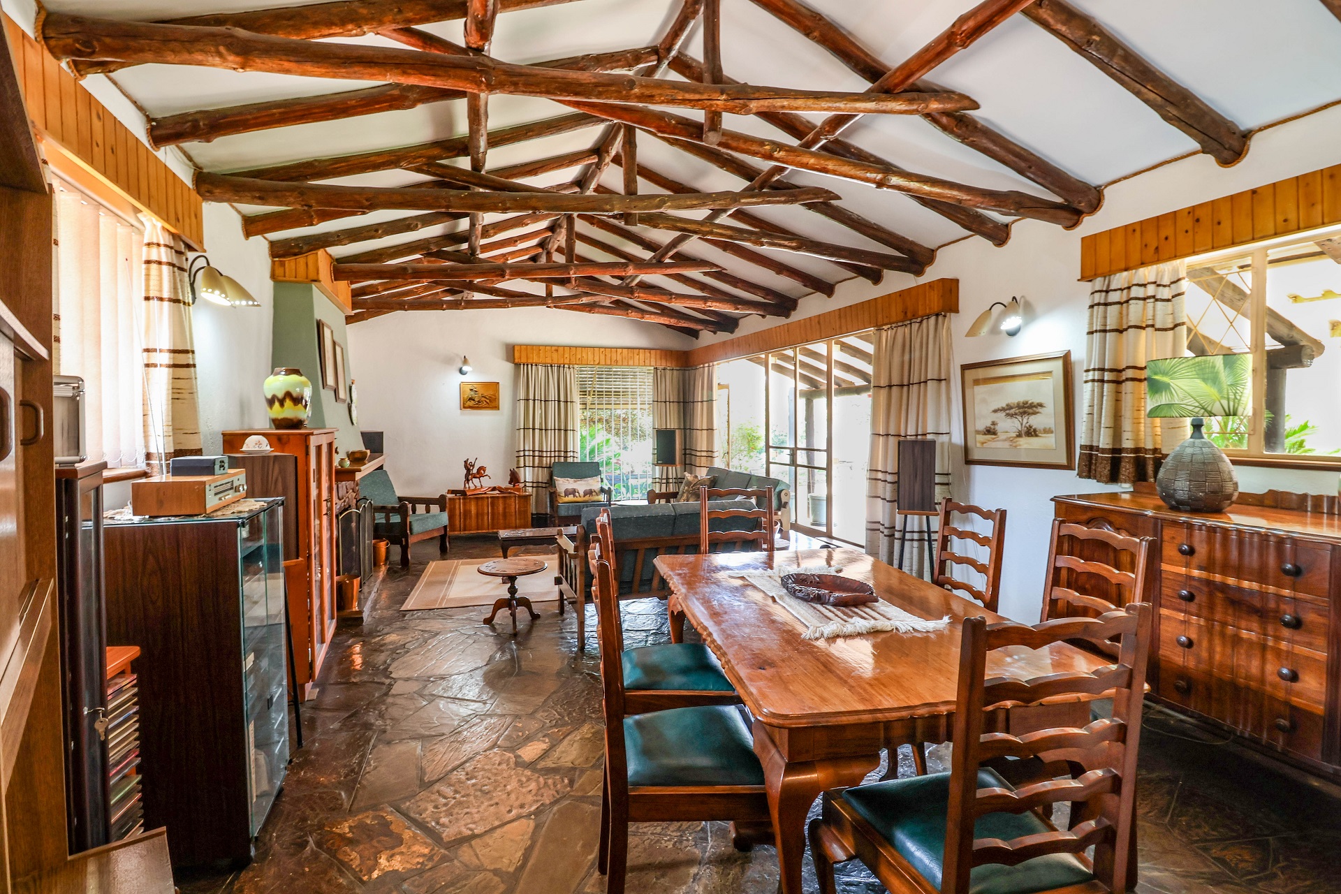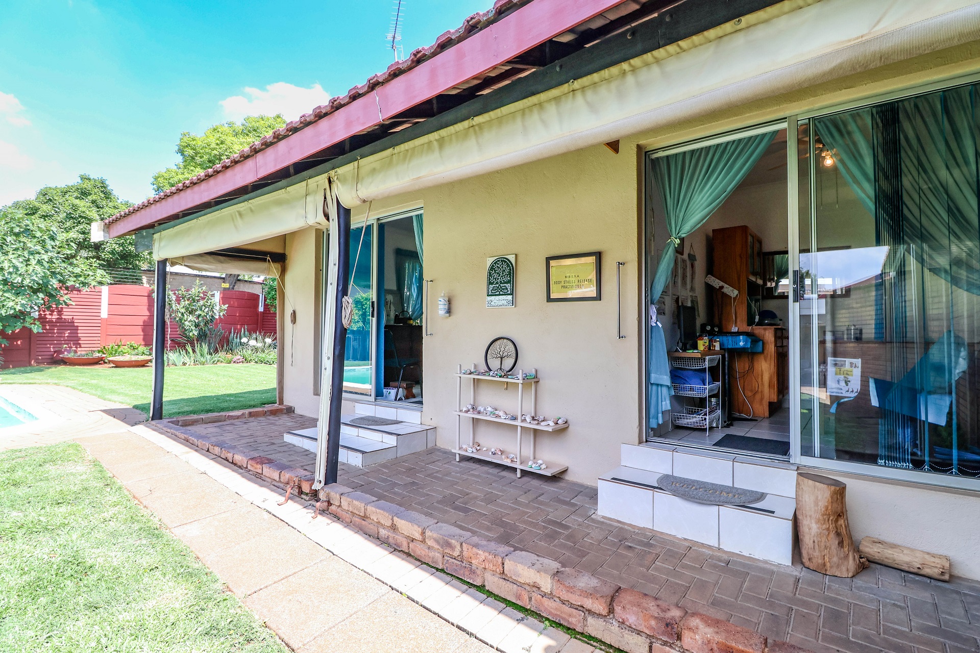 The large undercover patio offers tranquil views over the pool and open boma / braai area. The covered patio has it's own kitchenette making entertaining a pleasure. The canvas screens can enclose the patio if needed.