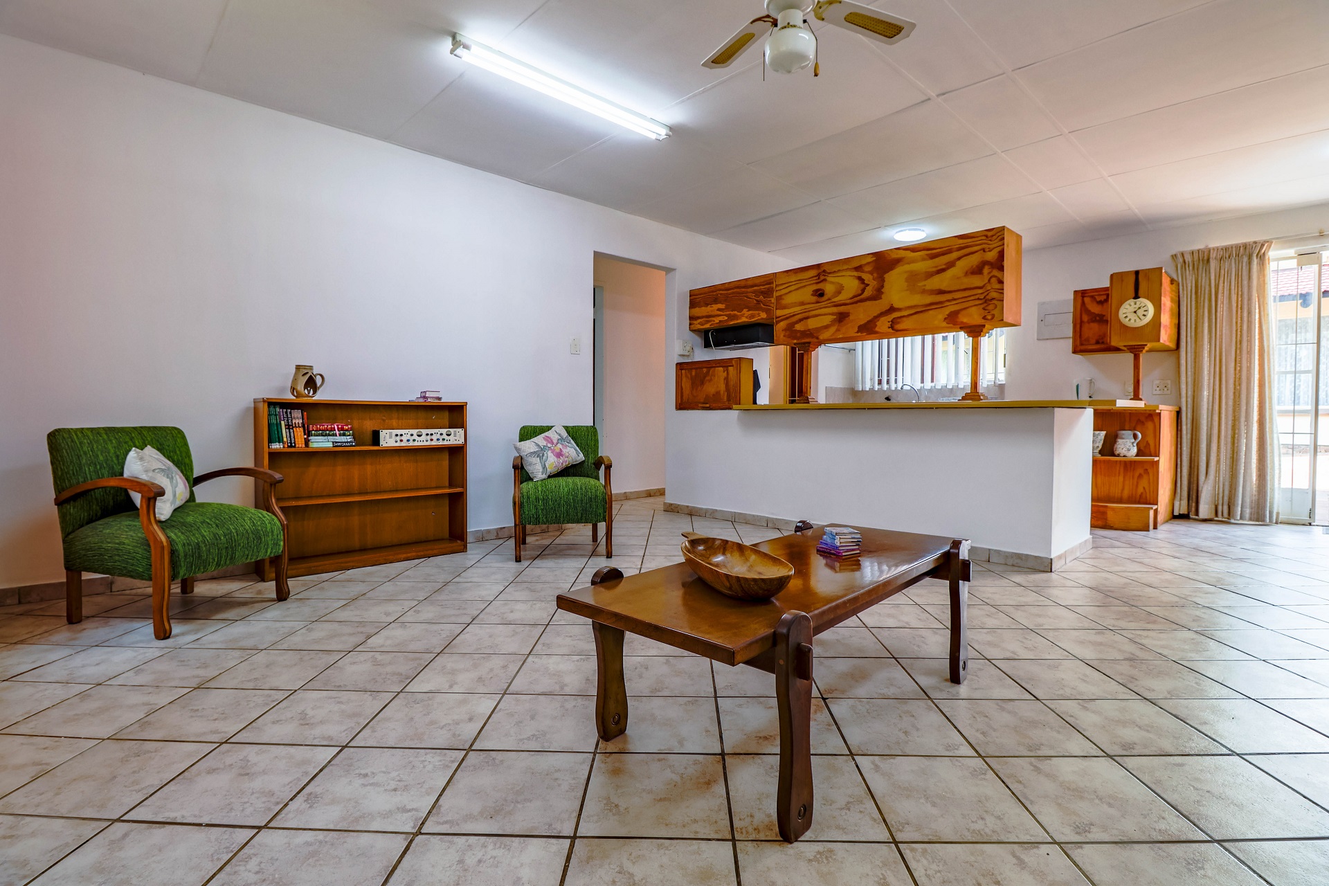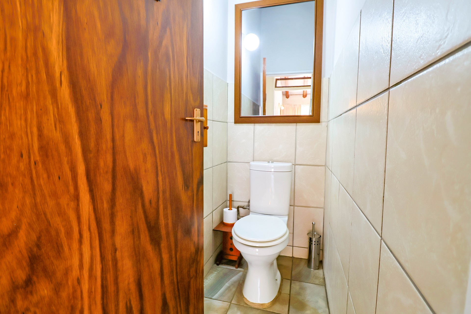 The spacious 2-bedroom granny flat is free-standing from the main house and can easily be converted into two spacious 1-bedroom flats. The lounge and kitchen is very spacious for a granny flat a big lounge, big kitchen with seperate scullery and two spacious bedrooms. The large North-facing bedroom has lots of built-in cupboards and an en-suite bathroom with large shower, a toilet and basin. The second bedroom has an en-suite toilet with basin.