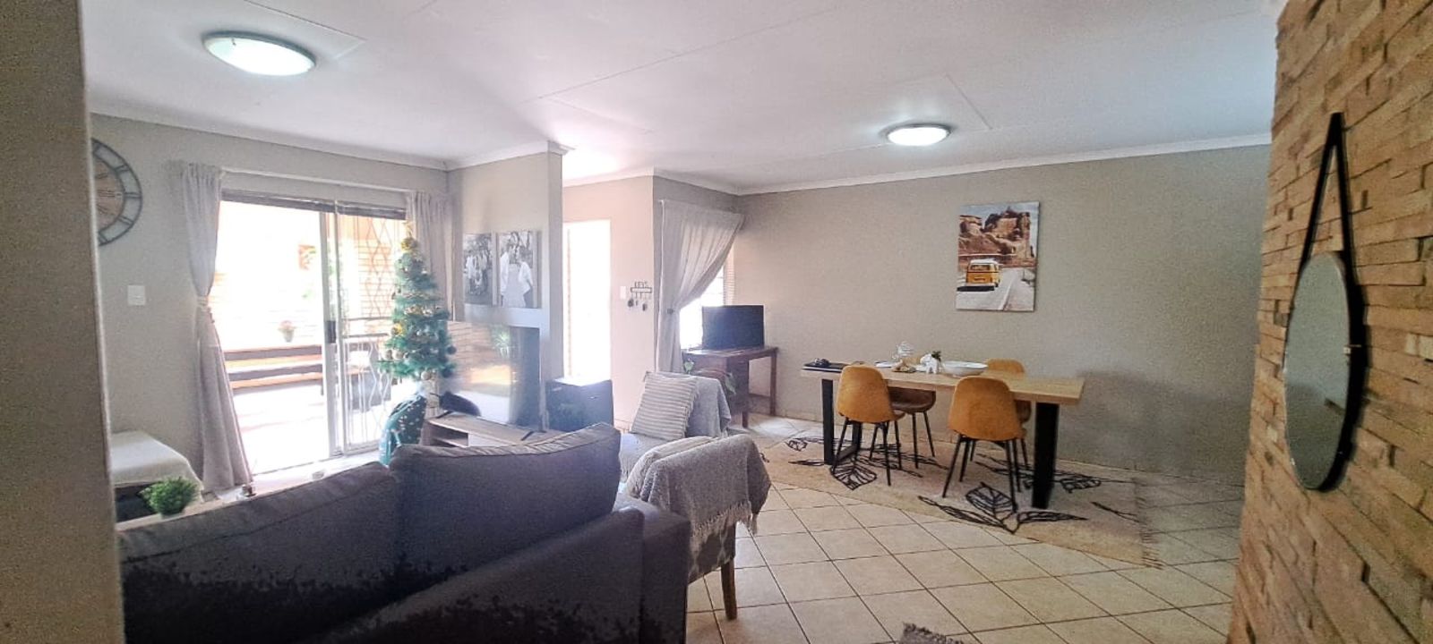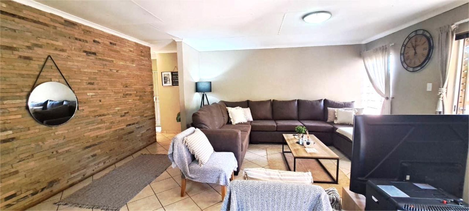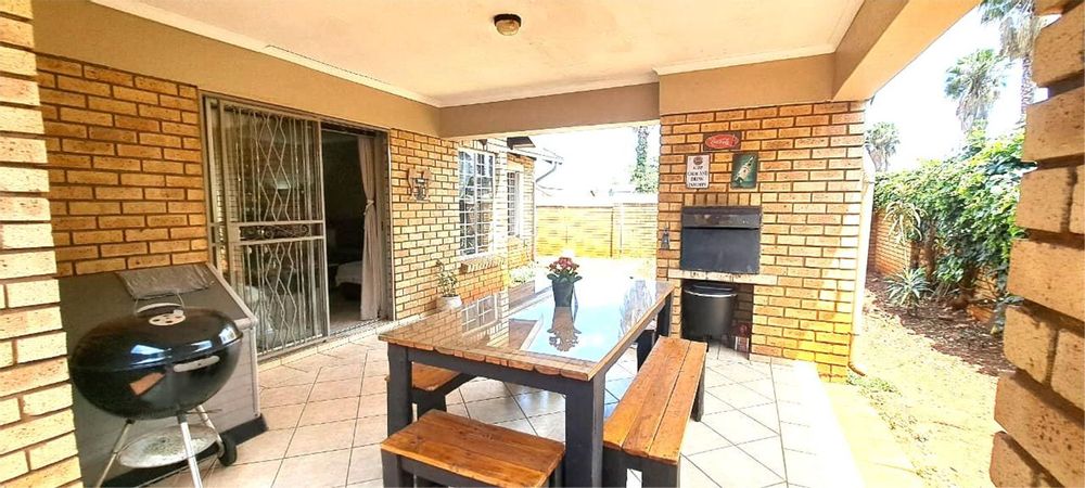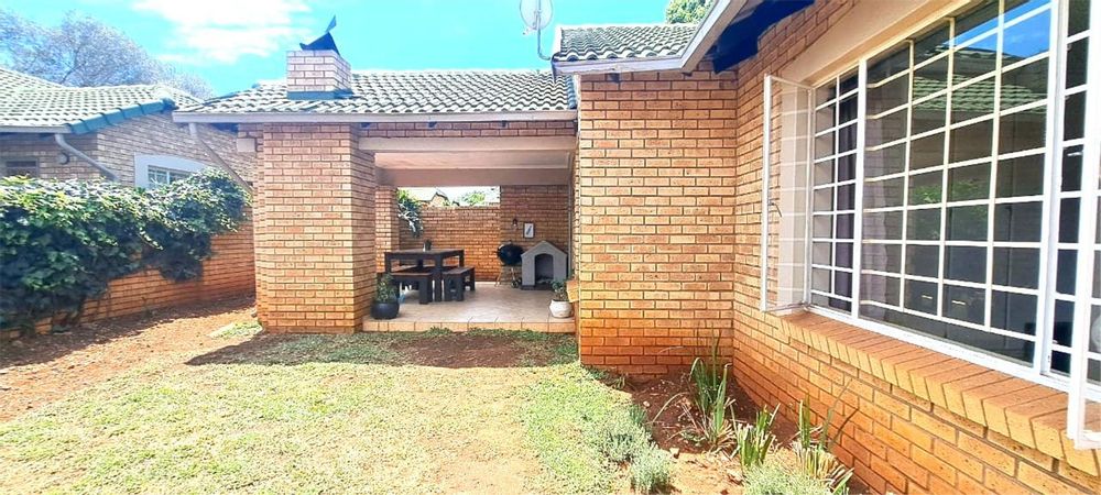 The home features a spacious open-plan layout with a light-filled lounge, dining area, and modern kitchen – perfect for relaxed living and easy entertaining. The living area flows effortlessly onto a lovely covered patio with a built-in braai, ideal for weekend gatherings or quiet evenings outdoors.