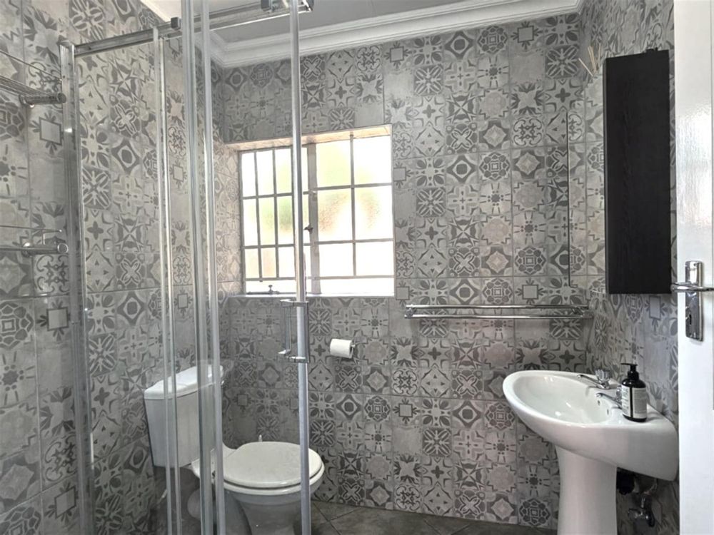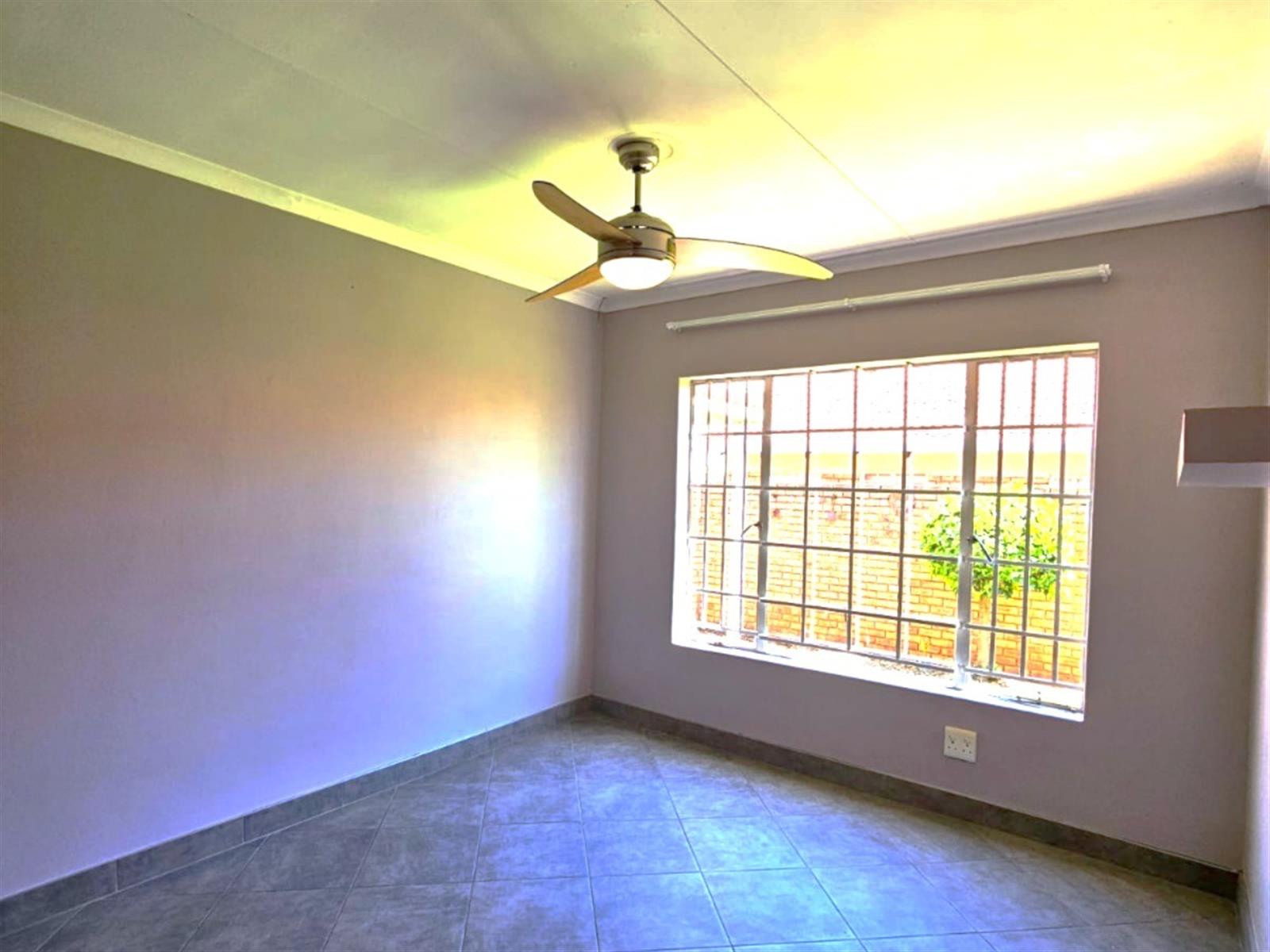 The front courtyard provides privacy and convenience, featuring a lockable washing line. Inside, the home combines timeless brick architecture with a serene garden outlook, complemented by a patio and built-in braai—ideal for entertaining.