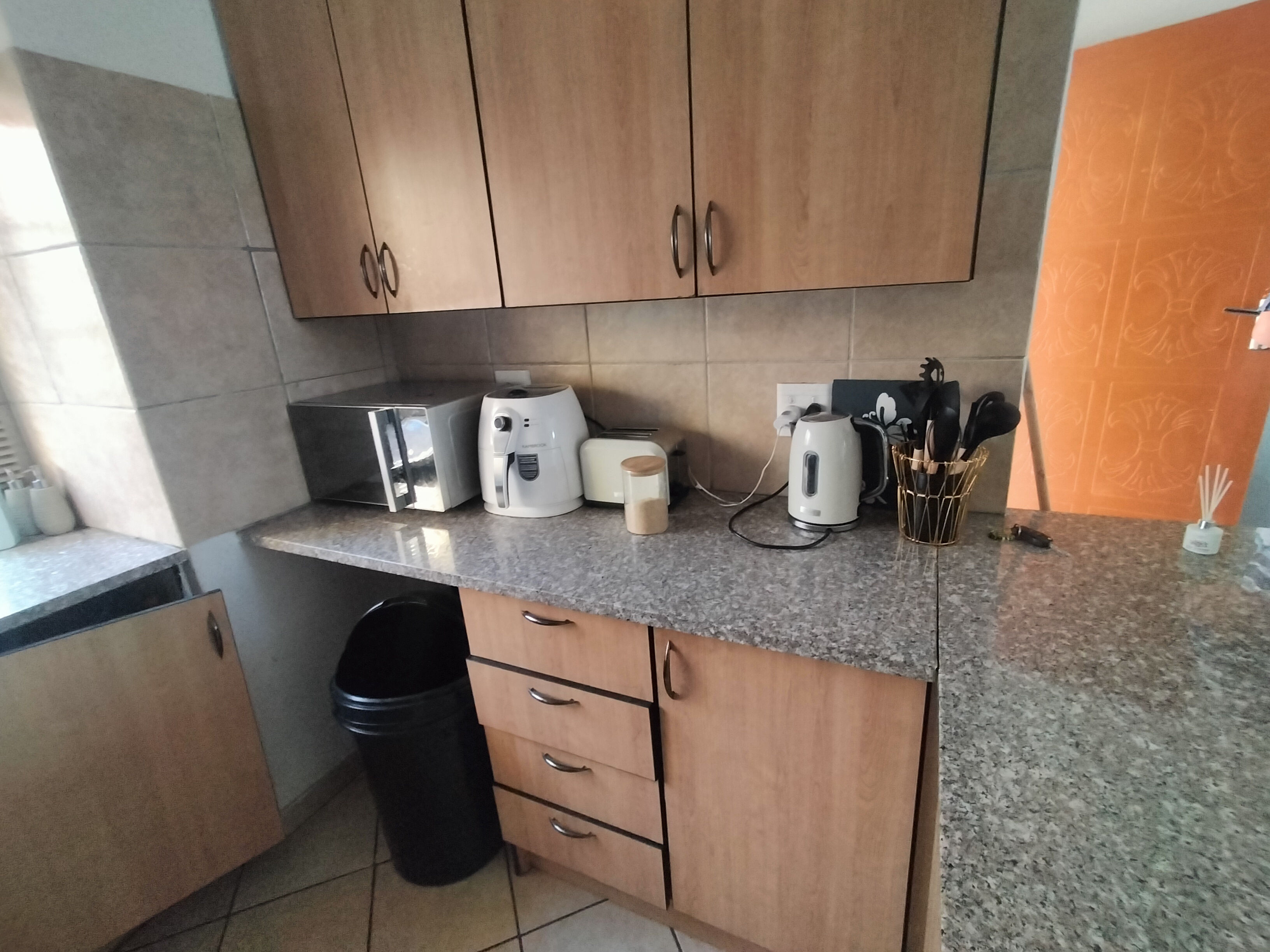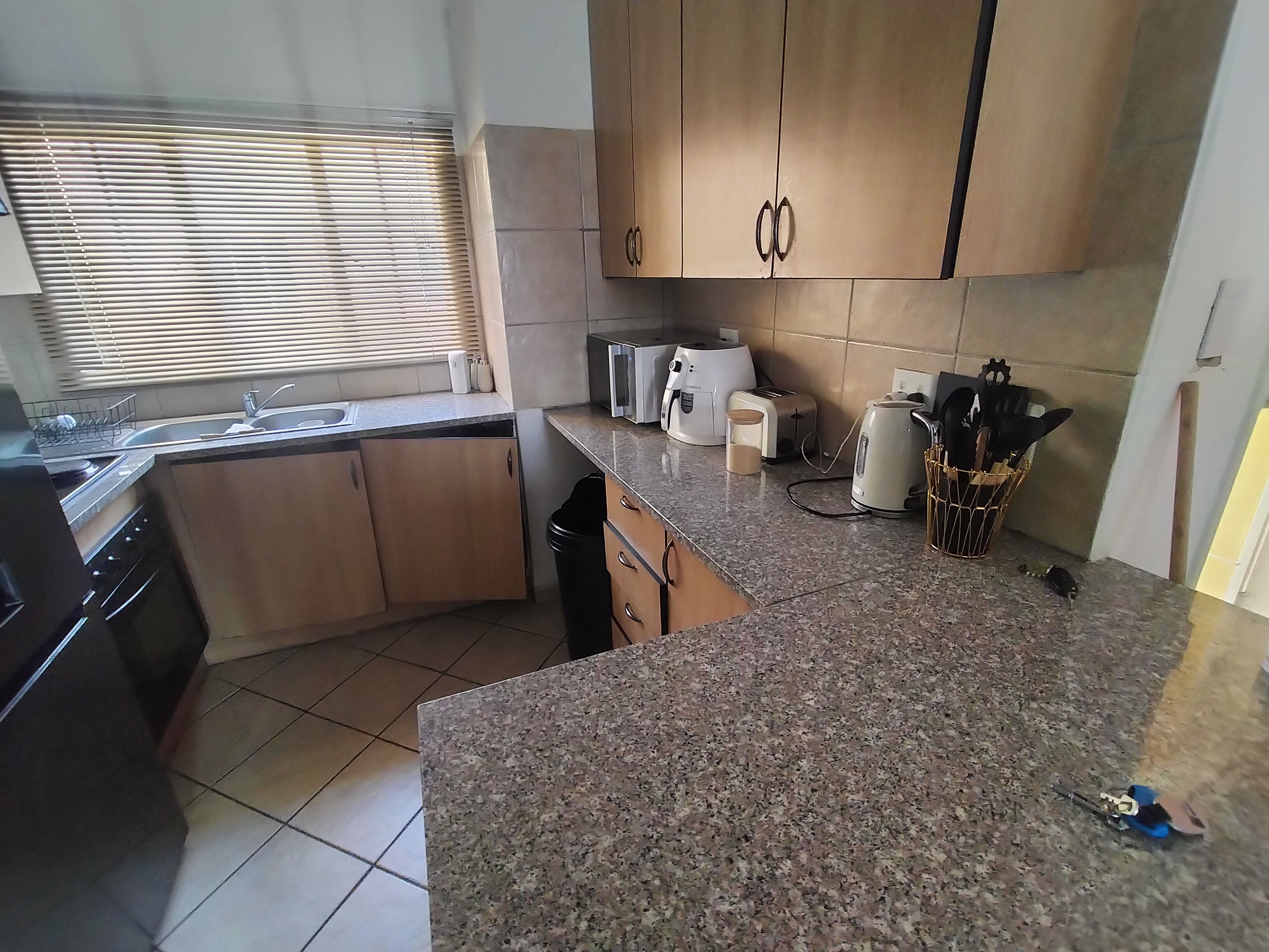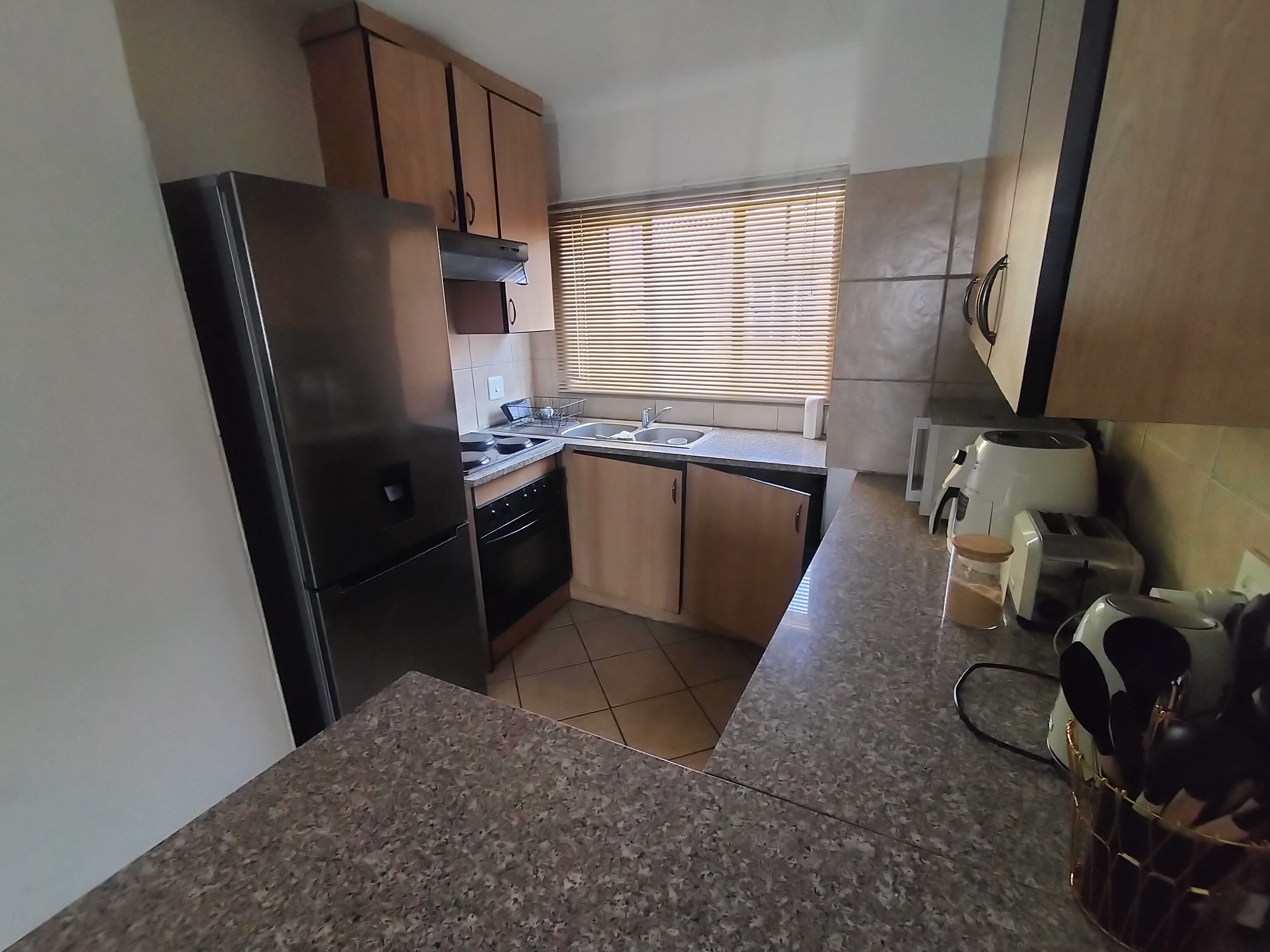 This cozy 2-bedroom, 1-bathroom apartment in Eldorette offers modern comfort and convenience in a secure complex. The neat kitchen features granite countertops and a breakfast counter, flowing into an inviting lounge that opens onto a private balcony – perfect for relaxing. Situated on the first floor, the unit provides both privacy and ease of access.