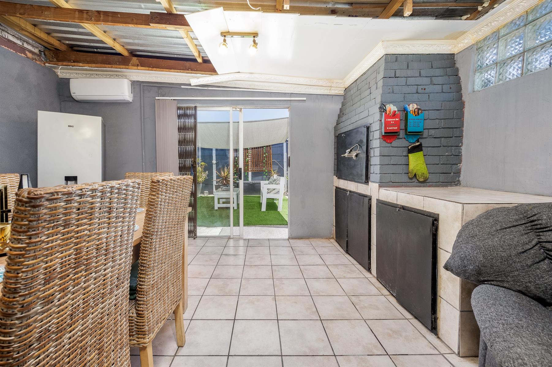 The lounge, leads to a large braairoom/entertainment area and has a sliding door which opens to the backyard with covered shadecloth for very hot summer days and a splash pool (cordoned off for children`s safety).