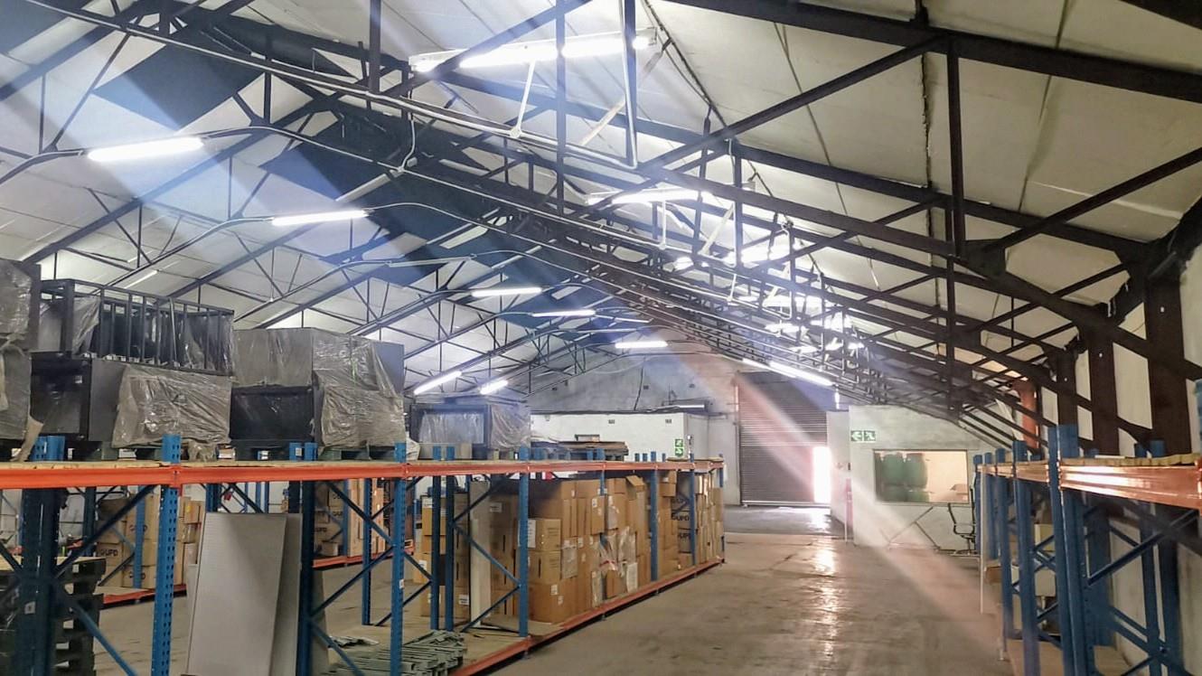 THE WAREHOUSE SECTION, WITH ITS OWN ACCESS FROM THE STREET. MEASURING AROUND 1500 SQUARE METERS IN TOTAL UNDER ROOF, AND SPLIT IN TO TWO SECTIONS